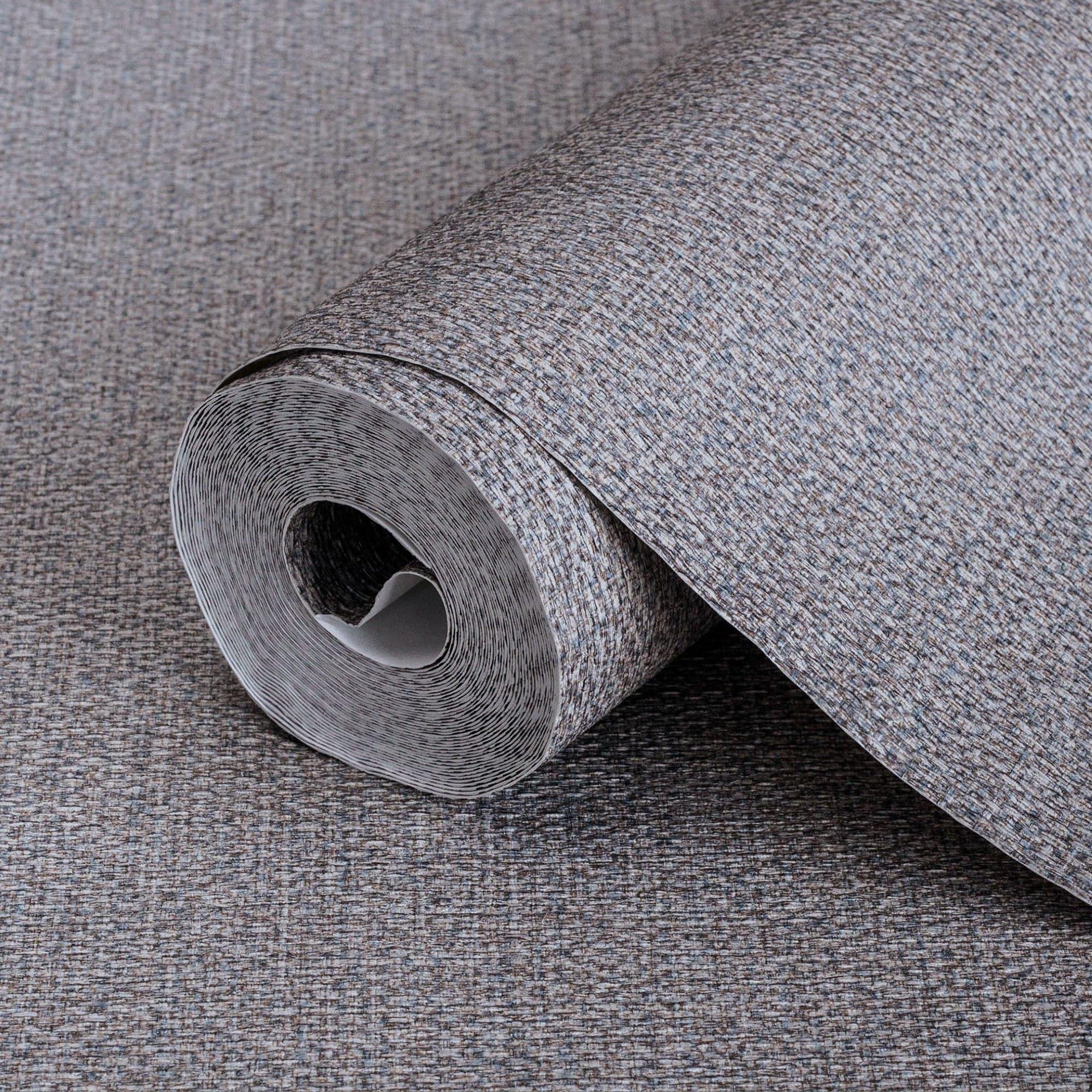 Brown, Blue Woven Textured Jute Wallpaper, Burlap Pattern Fiber Weave Pattern Non-Pasted