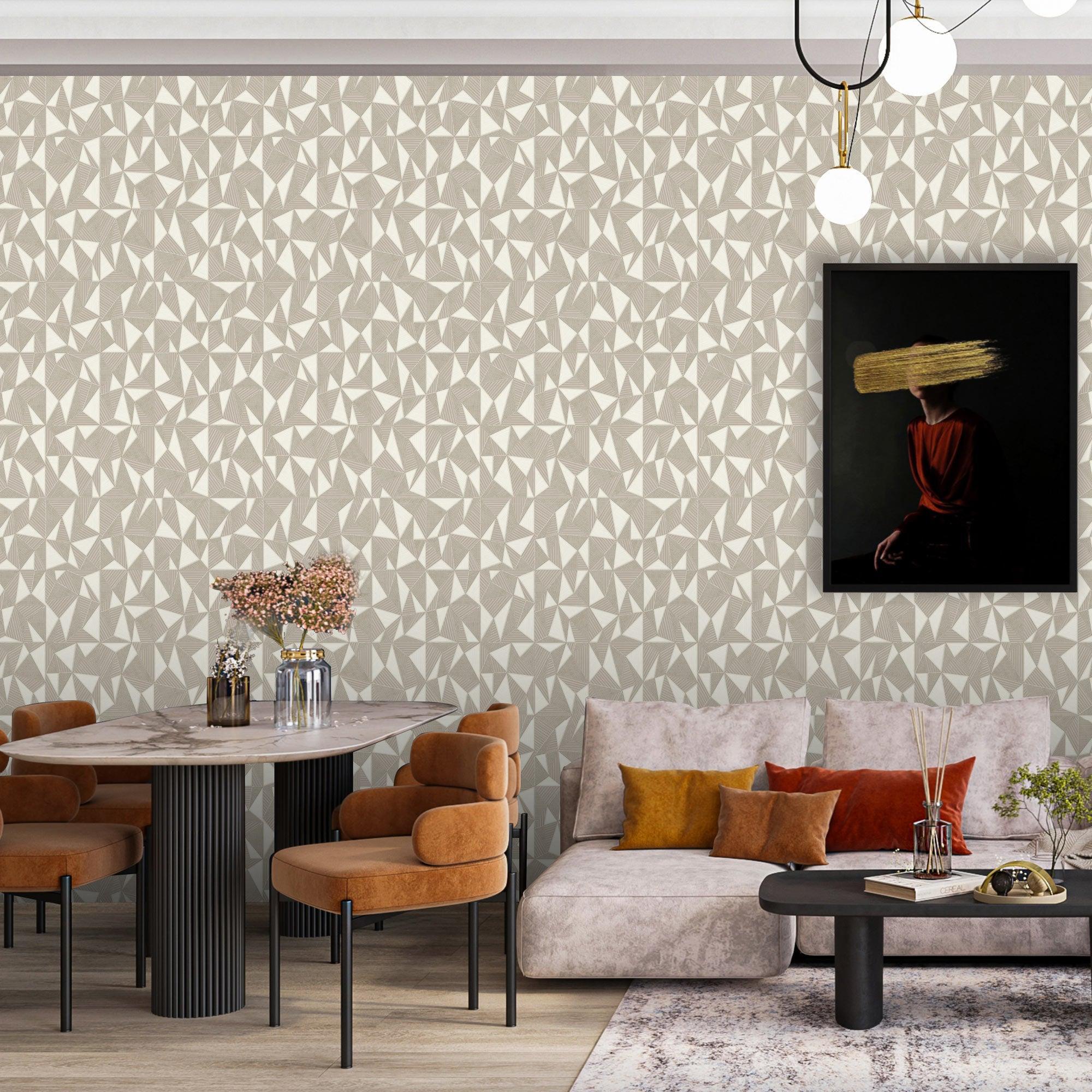 Elevate your space with the intricate allure of embossed, non-pasted triangle wallpaper. This modern marvel features captivating geometric triangle patterns that seamlessly blend into any contemporary setting. Embrace the artistic flair of abstract wallpaper as it adorns your walls with its mesmerizing charm. Dive into a realm of geometric wonders with contemporary abstract patterns, offering a blend of style and sophistication. Experience the visual delight of modern abstract designs, where each triangle tells a unique story of modernity and elegance. With options ranging from triangle grid wallpaper to triangle mosaic wallpaper, you can customize your space to reflect your distinctive taste. Choose from a palette of soothing hues including white, ivory, light beige, light gray, tan, brown, dark gray, silver, and copper, to create a harmonious ambiance that captivates the senses.