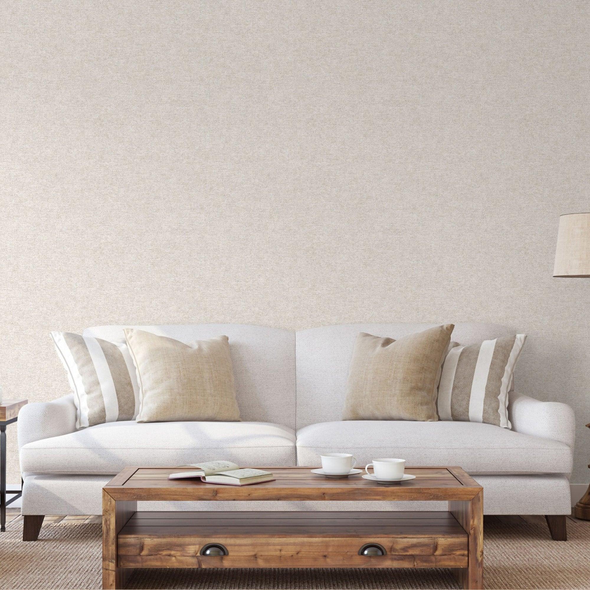 Stylish linen-inspired non-pasted wallpaper collection, featuring a sparkling texture that adds a touch of elegance to your space. The textured linen wallpaper captures the essence of natural fabric, with a woven textile design and a subtle linen cloth motif. This contemporary linen wallpaper offers a minimalist texture, making it a perfect fit for both classical farmhouse and modern contemporary homes. The neutral tone linen wallpaper comes in a variety of solid and mixed colors, including off white, light gray, gray, cream, light beige, light beige/gray, beige, light brown, blue, and brown. The embossed finish enhances the fabric texture, making it an ideal choice for businesses and stores, creating a timeless and sophisticated atmosphere.