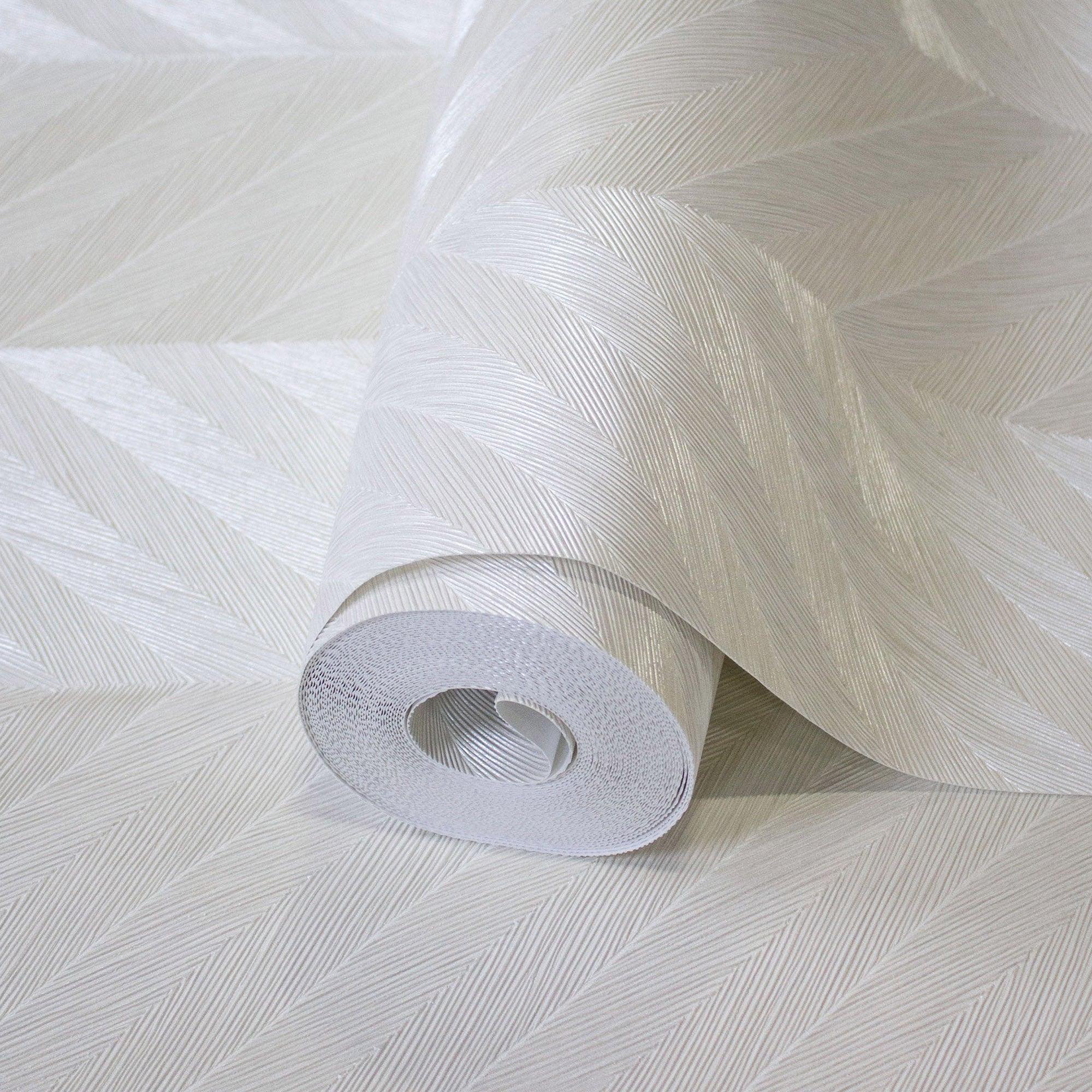 White Shiny Chevron Wallpaper, Deep Embossed Luxury Shimmering Geometric Pattern Wall Paper, Large Non-Pasted 114 sq ft Roll