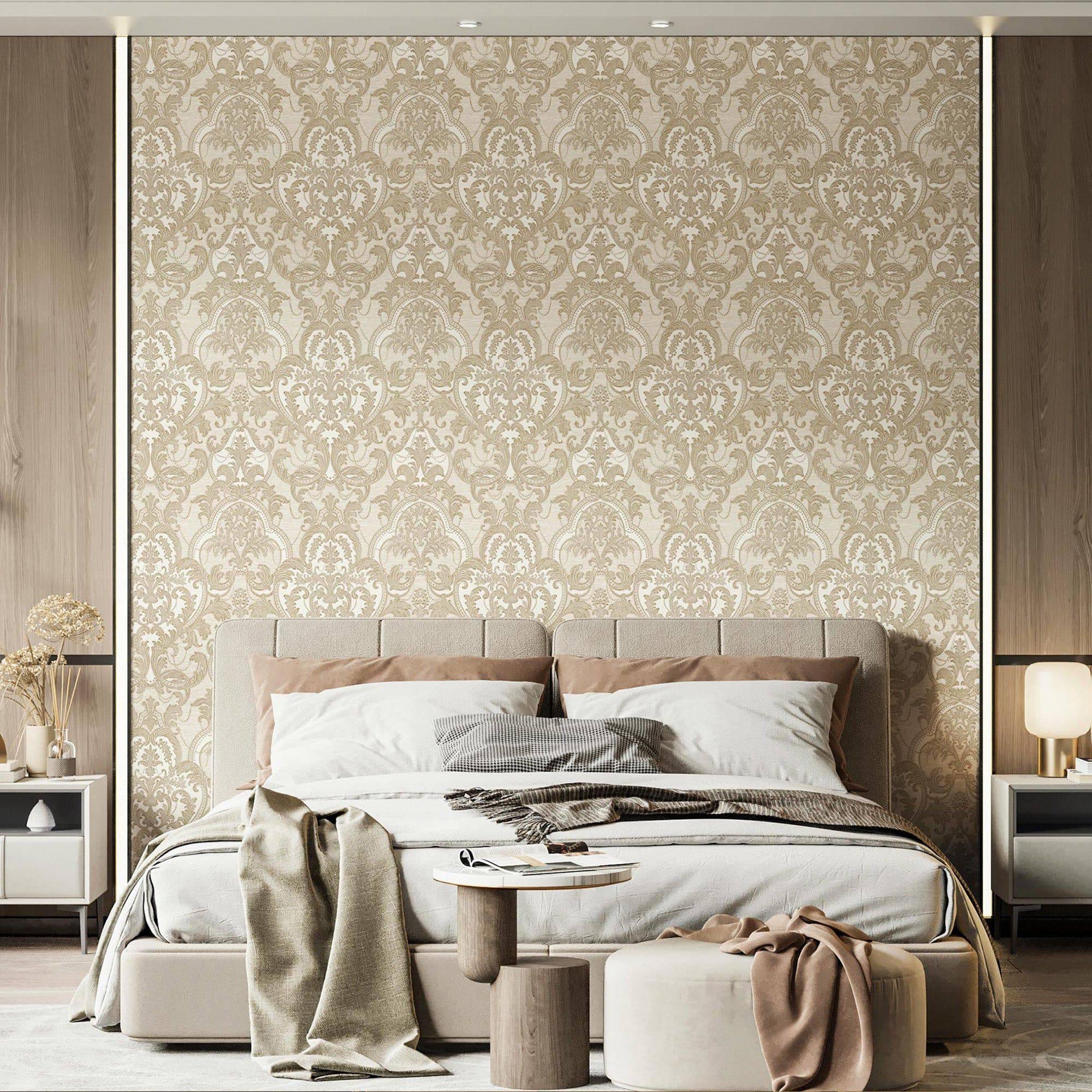 Exquisite luxury damask embossed non-pasted wallpaper collection to elevate your home. Our 3D embossed damask ornate pattern wallpaper features embossed patterns, a velvet-like feeling, and flocked design that add a touch of opulence and sophistication to your living space. The shiny, sparkling damask patterns create a luxurious ambiance suitable for high-end interior design. Whether you're aiming for oriental interior design, luxury home decor, or upscale and elegant interiors, our damask wallpapers serve as prestigious designer home accessories. They provide lavish wall decor with exclusive and sophisticated touches, making your home a statement of opulent style. Choose from a range of color options, including blue, light gold, beige, gold, silver, light beige, light gold, light tan, silver, and cream, to match your luxury interior styling. Experience the timeless elegance of classic damask designs and vintage motifs alongside modern and textured damask patterns. Victorian-inspired and contemporary damask designs give your home a prestigious and luxurious appeal. The high-quality and embossed damask pattern ensures that your interior is adorned with the finest decor, bringing enduring charm to your living spaces. Our damask wallpapers feature embossed patterns and ornate designs that add a touch of opulence and sophistication to your living space. The shiny, sparkling damask patterns create a luxurious ambiance suitable for high-end interior design. Whether you're aiming for oriental interior design, luxury home decor, or upscale and elegant interiors, our damask wallpapers serve as prestigious designer home accessories. They provide lavish wall decor with exclusive and sophisticated touches, making your home a statement of opulent style. Choose from a range of color options, including blue, light gold, beige, gold, silver, light beige, light gold, light tan, silver, and cream, to match your luxury interior styling. Experience the timeless elegance of classic damask designs and vintage motifs alongside modern and textured damask patterns. Victorian-inspired and contemporary damask designs give your home a prestigious and luxurious appeal. The high-quality and embossed damask pattern ensures that your interior is adorned with the finest decor, bringing enduring charm to your living spaces.