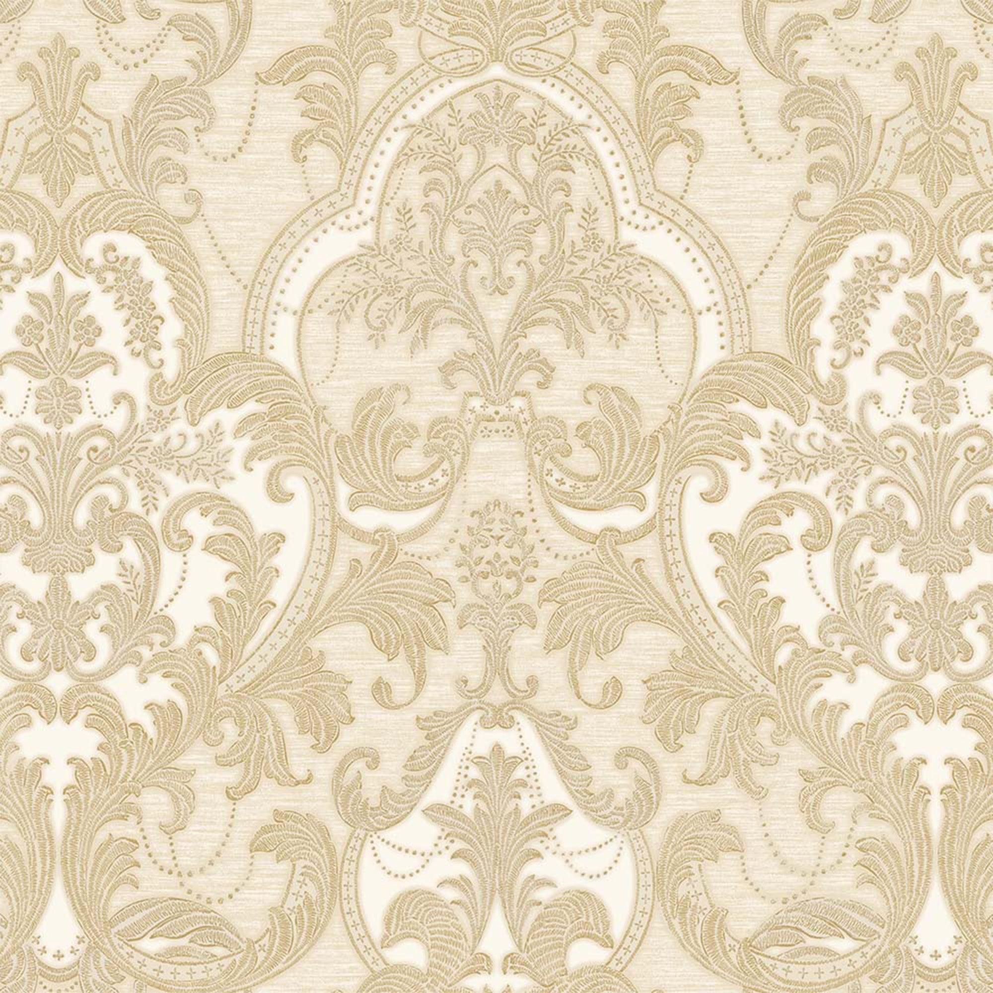 Light Beige, Gold Luxury 3D Damask Wallpaper, Premium Sparkling Velvet Feeling Flocked Wallcovering