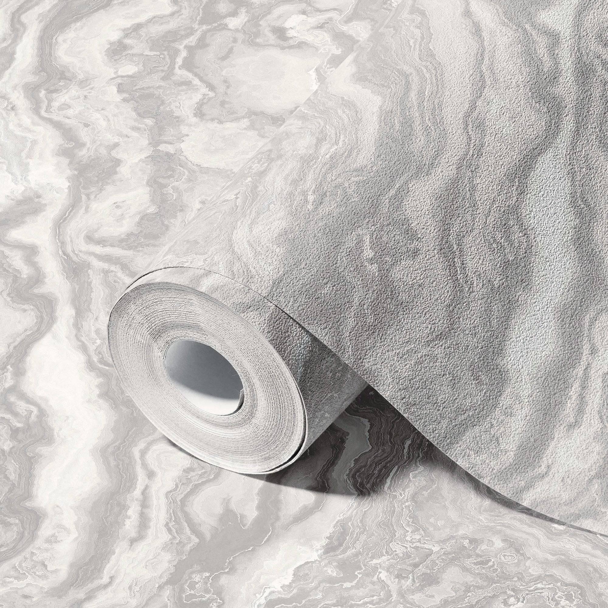 Marble Light Gray Layered Wallpaper, Home Wall Decor, Marbled Luxury Wallpaper, Textured Wallcovering Non-Adhesive, 177 sq ft Large Roll