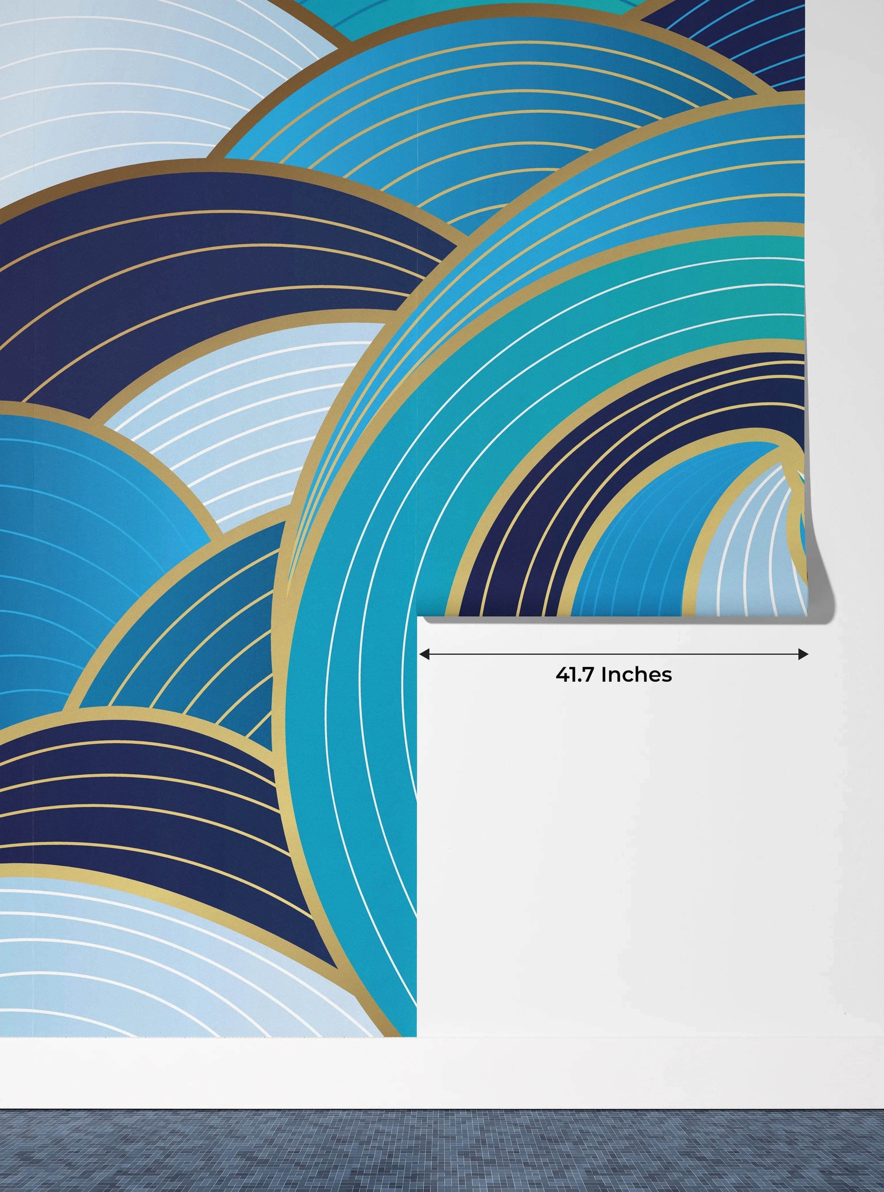 Navy Blue, Gold Abstract Wallpaper, Wavy Mural, Oversized Custom Size Wall Art, Non-Woven, Non-Adhesive, Modern Wall Paper, Removable