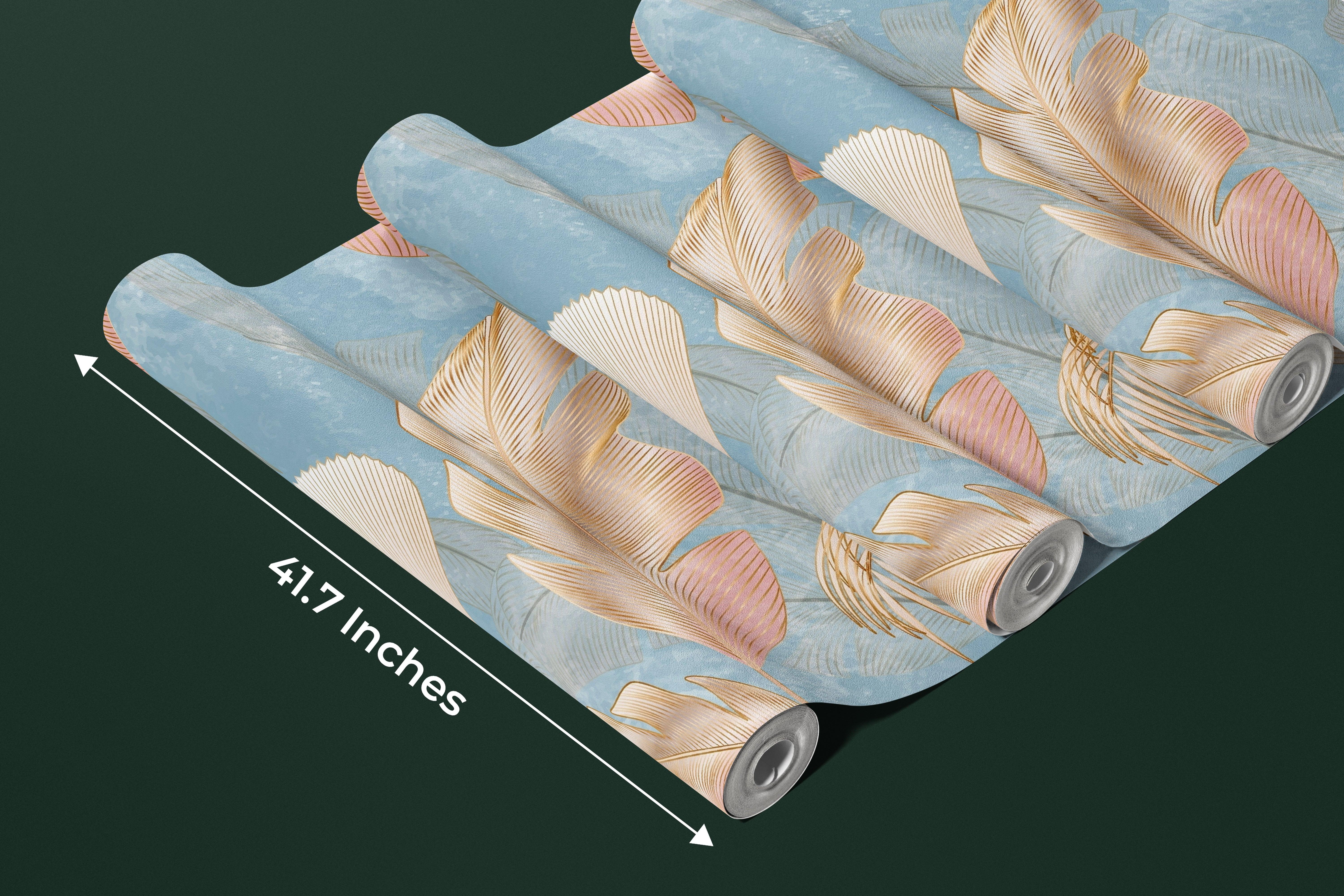 Golden Palms Wallpaper, Blue Background Mural, Oversized Custom Size Wall Art, Non-Woven, Non-Adhesive, Modern Wall Paper, Removable
