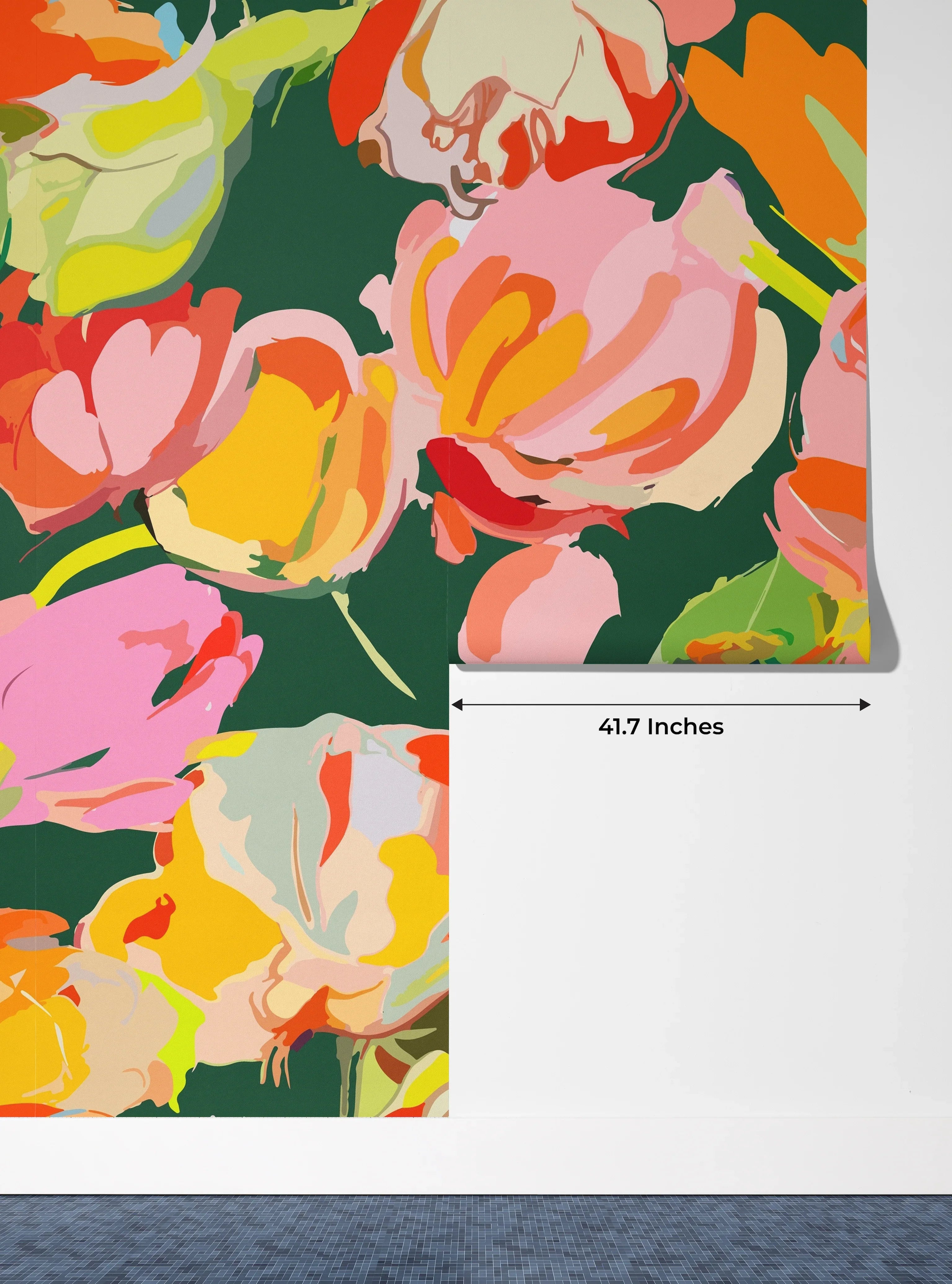 Colorful Bright Floral Wallpaper, Seamless Pattern Mural, Oversized Custom Size Wall Art, Non-Woven, Non-Adhesive, Modern Wall Paper, Removable