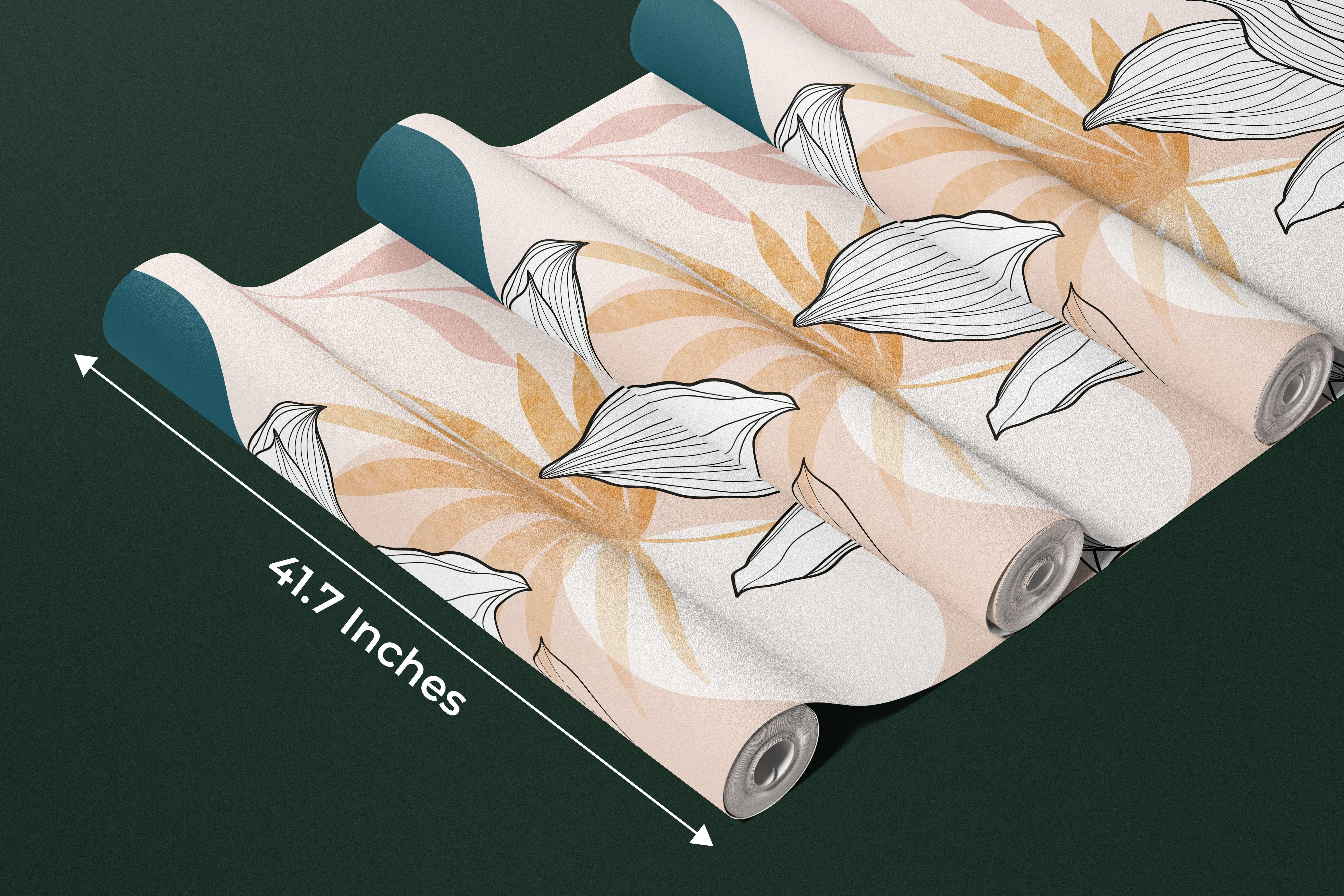 Floral and Botanical Wallpaper, Line Art Mural, Oversized Custom Size Wall Art, Non-Woven, Non-Adhesive, Modern Wall Paper, Removable
