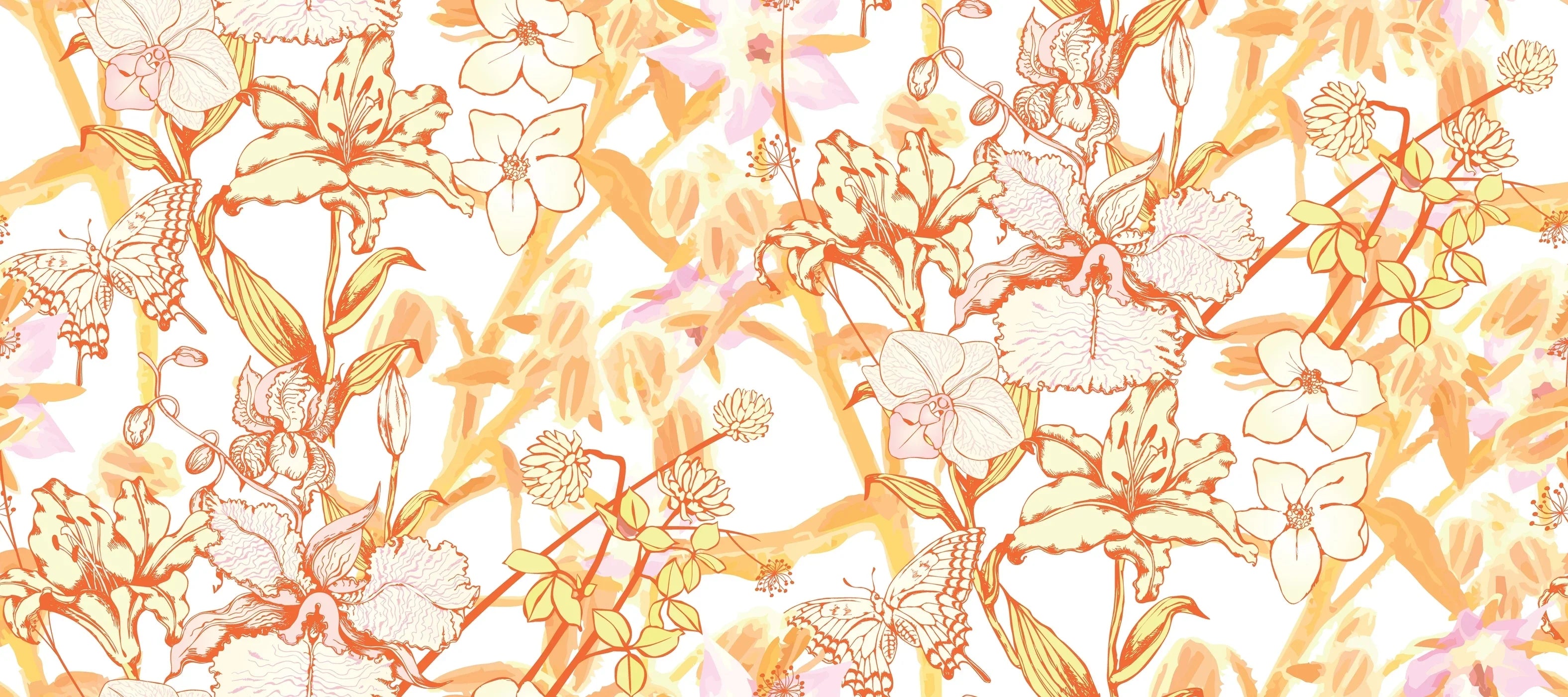 Fantastic Flowers and Butterflies Wallpaper, Seamless Pattern Mural, Oversized Custom Size Wall Art, Non-Woven, Non-Adhesive, Modern Wall Paper, Removable