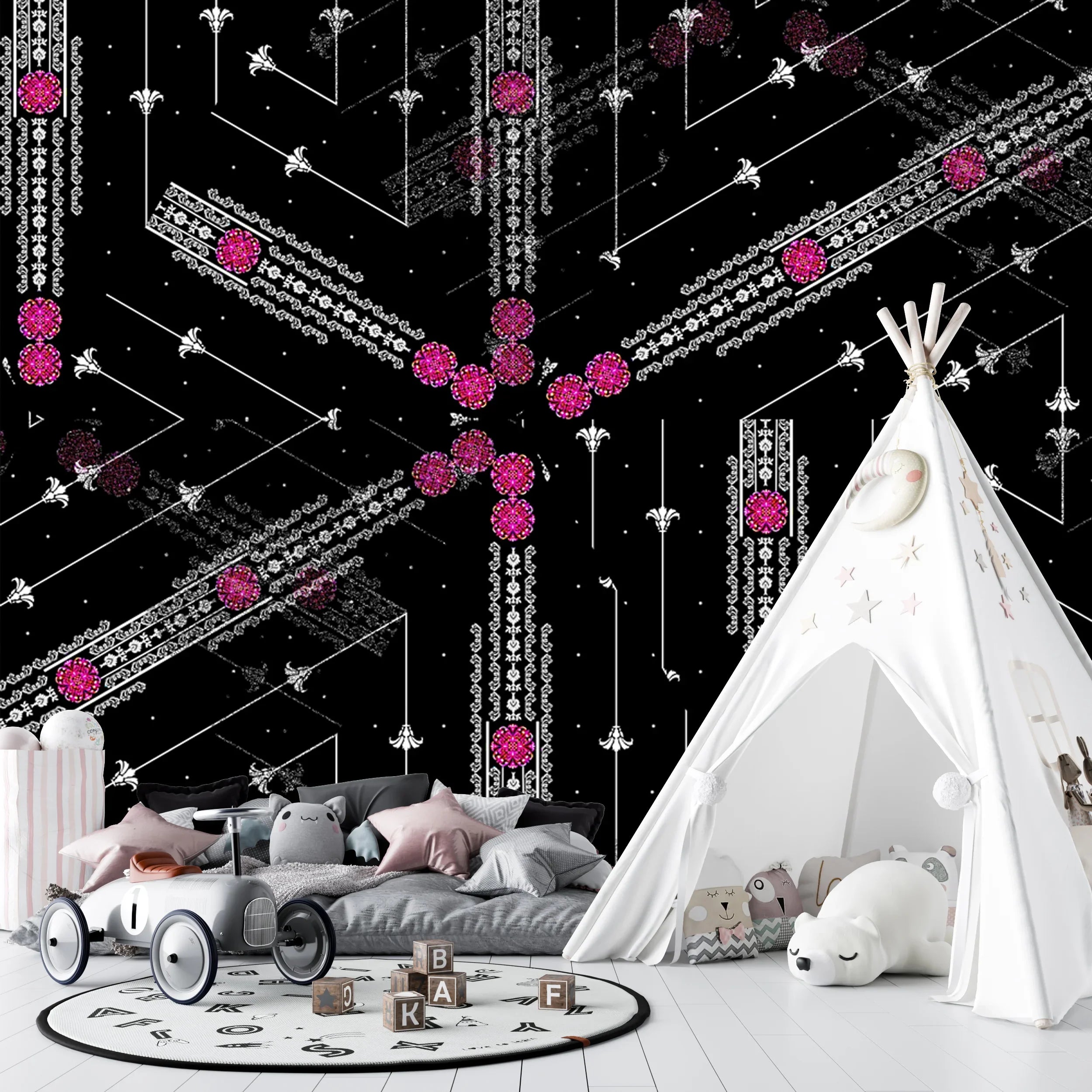 Digitally Design Wallpaper, Abstract Geometric Mural, Oversized Custom Size Wall Art, Non-Woven, Non-Adhesive, Modern Wall Paper, Removable