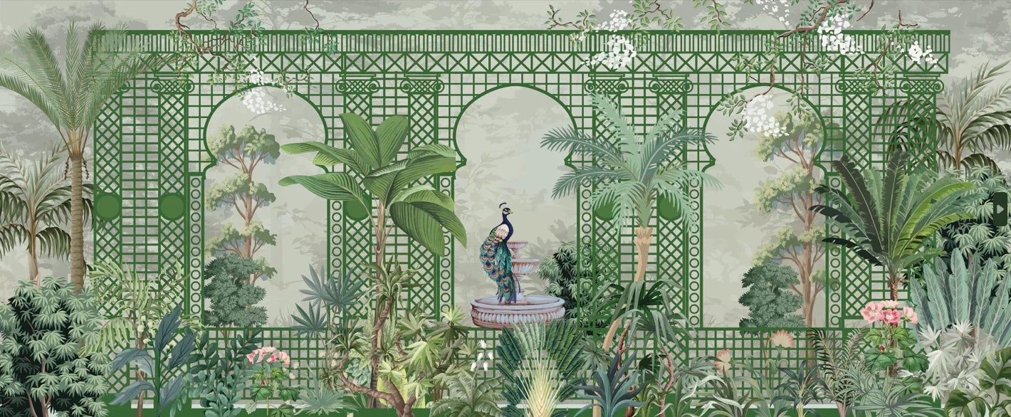 Garden and Peacock Wallpaper,Botanic and Lattice Wall Mural, Oversized Custom Size Wall Art, Non-Woven, Non-Adhesive, Modern Wall Paper, Removable