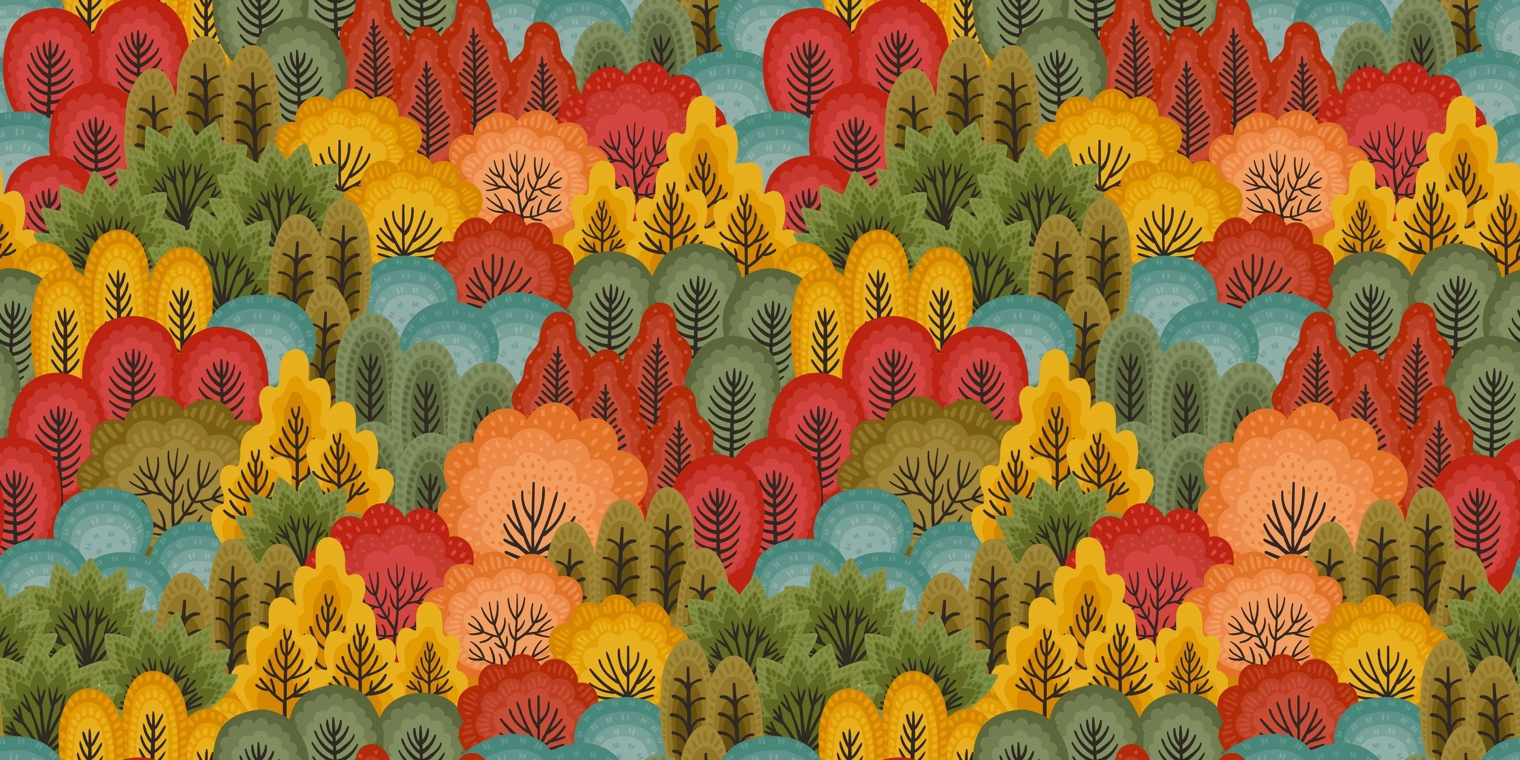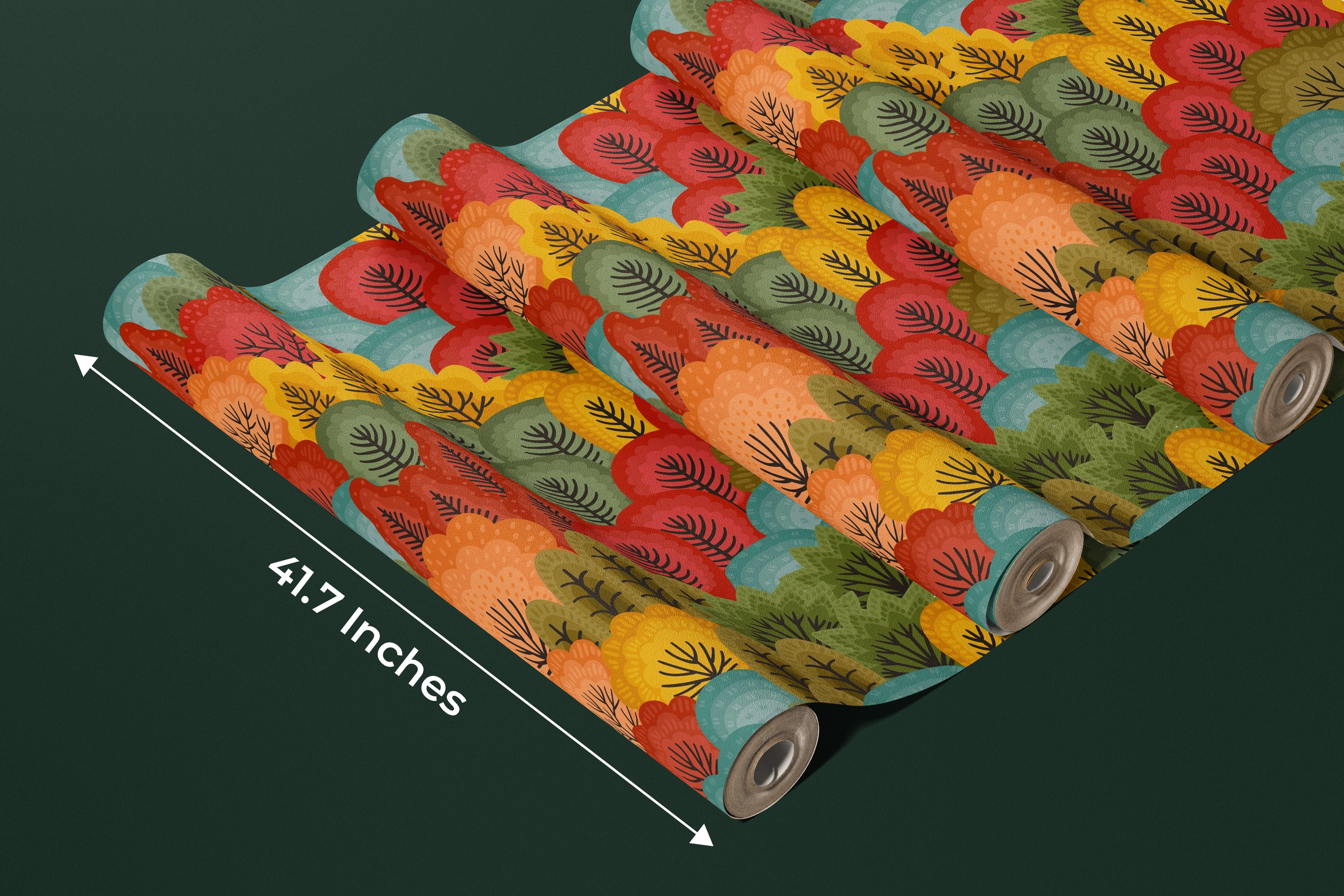Autumn Forest, Trees Wallpaper, Seamless Pattern Mural, Oversized Custom Size Wall Art, Non-Woven, Non-Adhesive, Modern Wall Paper, Removable