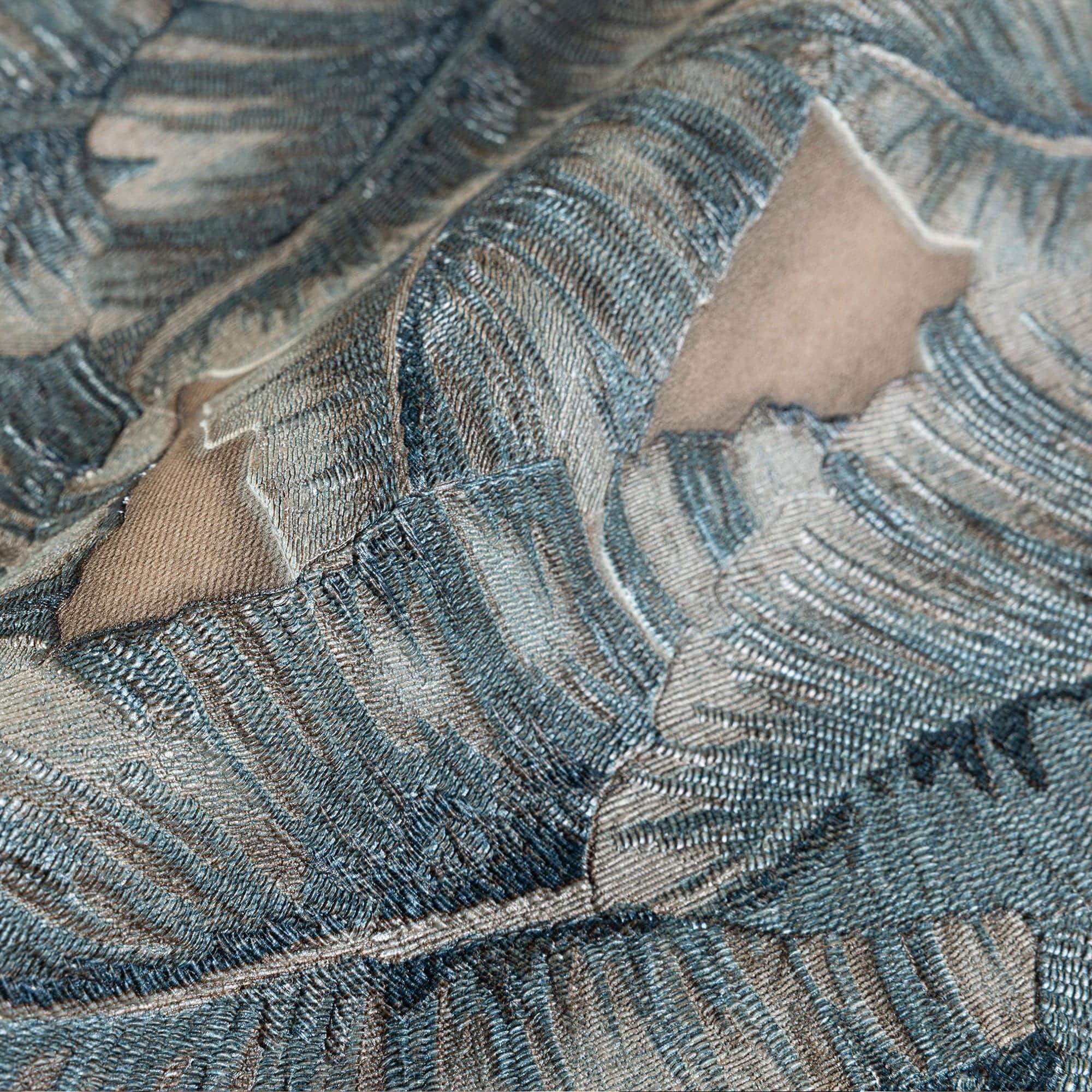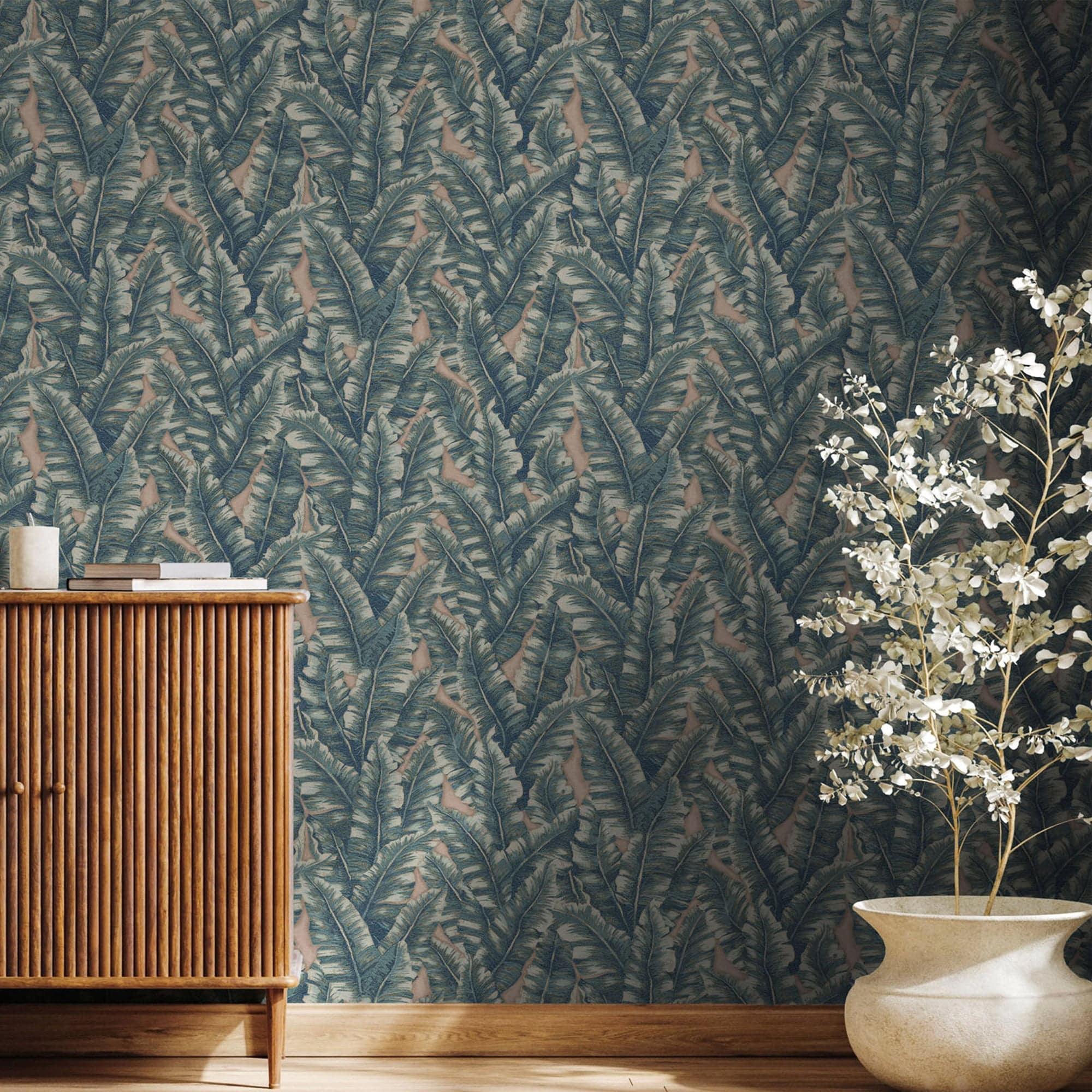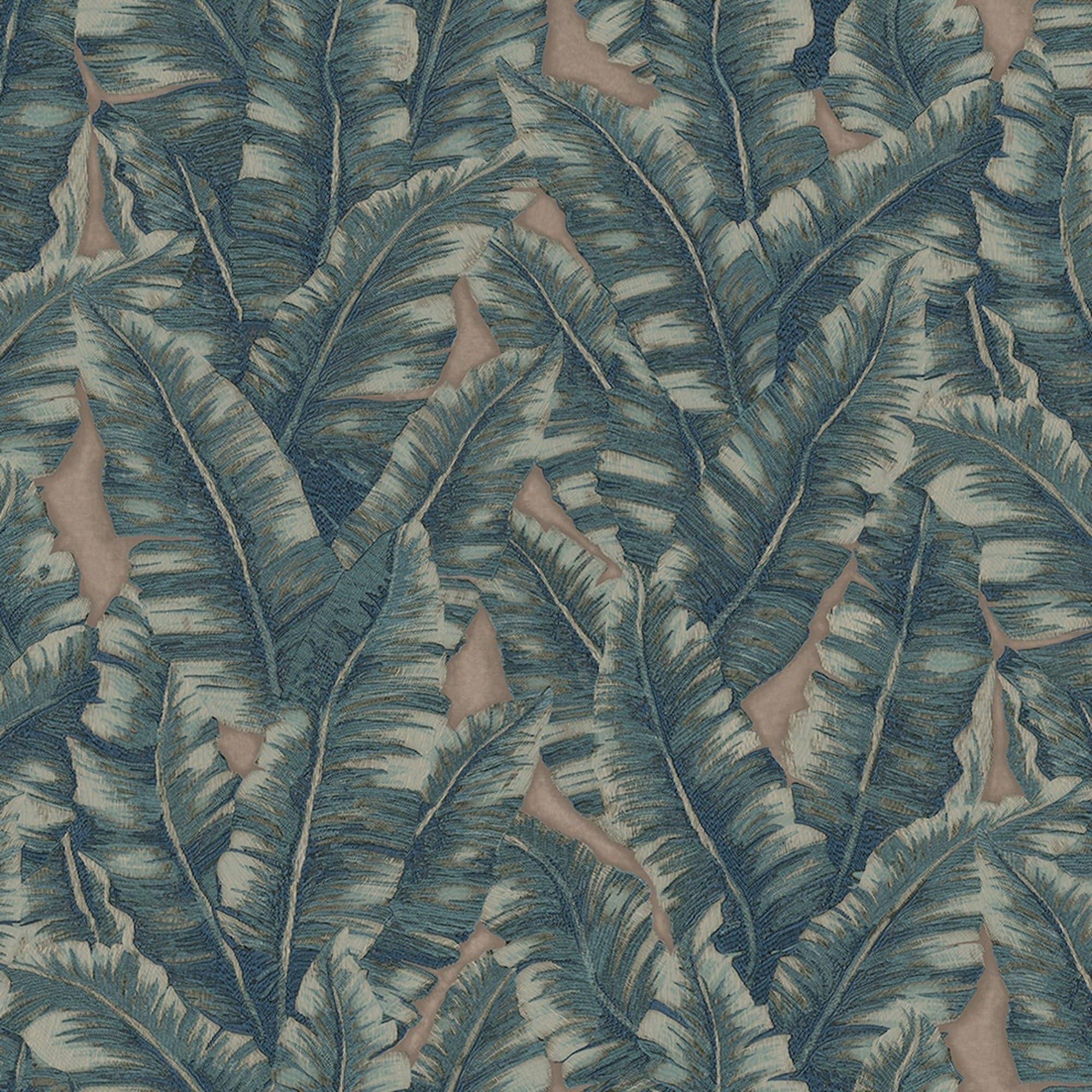 Luxury Leaf Pattern Wallpaper, Blue Embossed Botanical Tropical Exotic Wallcovering, Plants Tropical Design