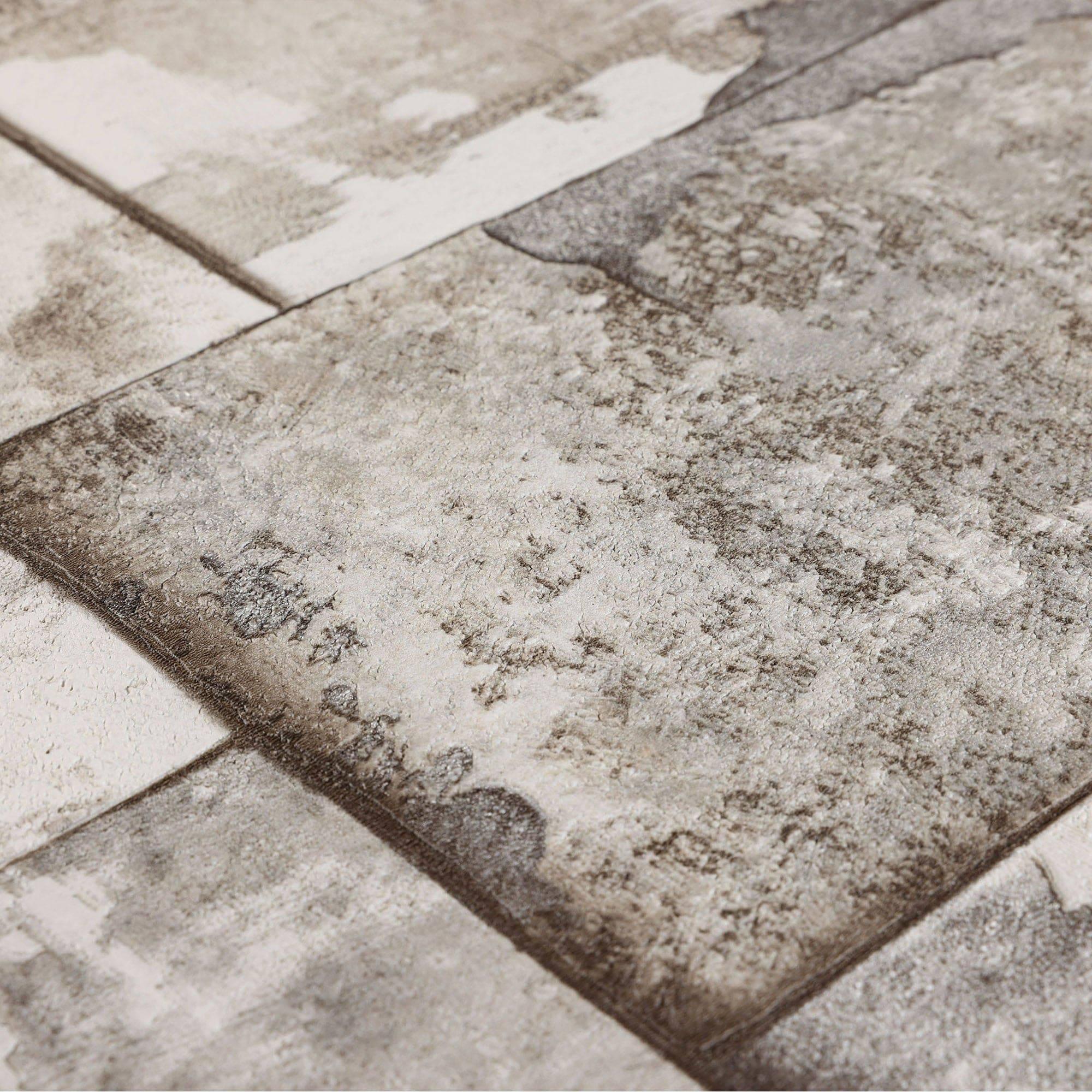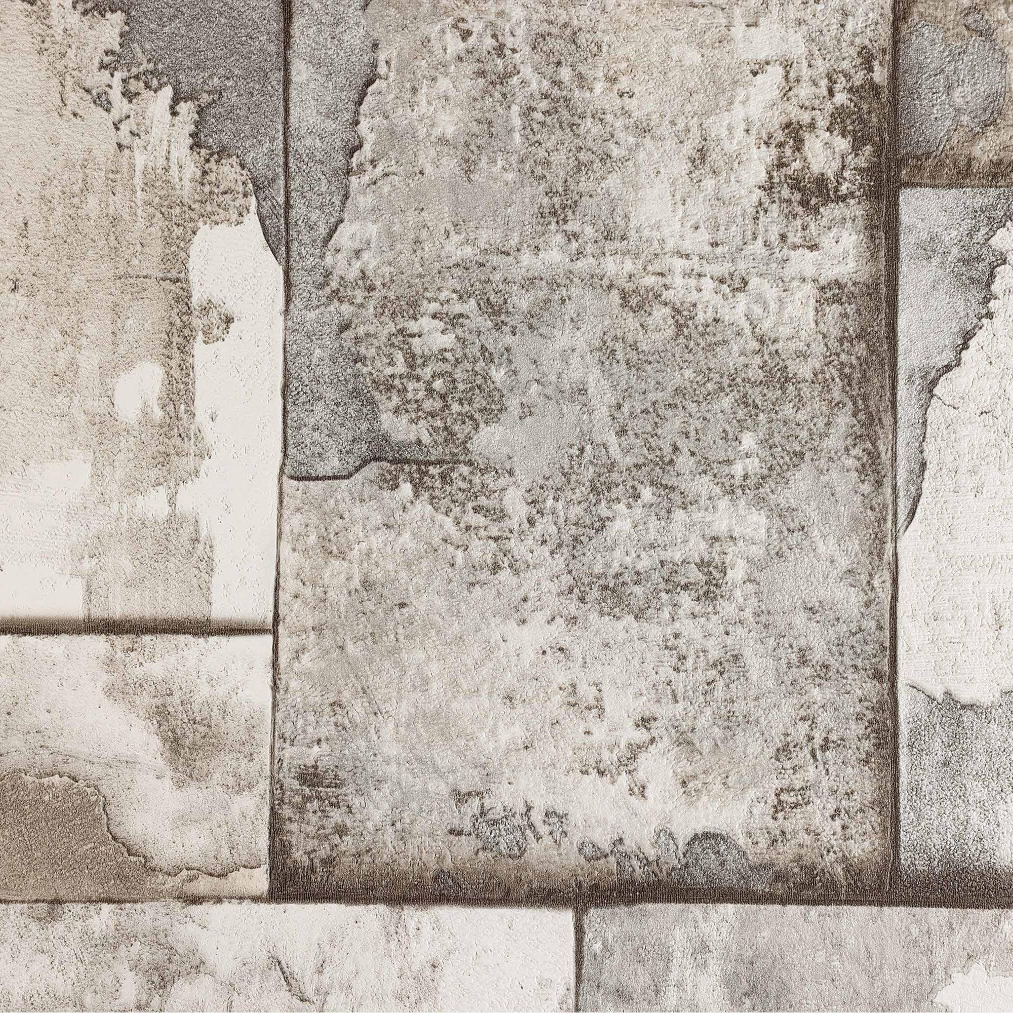 Decorative Rusted Beige, Gray Stone Metallic Wallpaper, Realistic 3D Embossed Wall Decor, Industrial Aesthetic Wallcovering