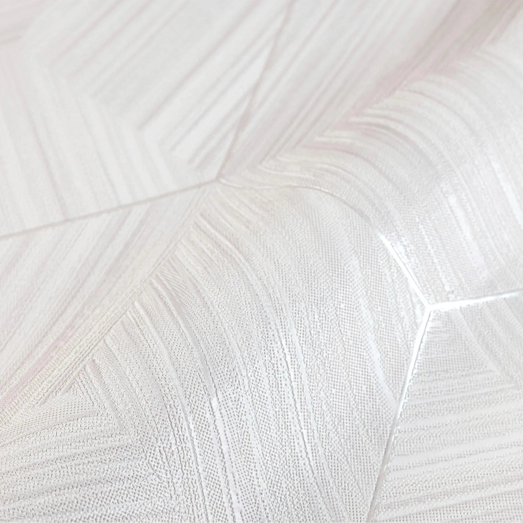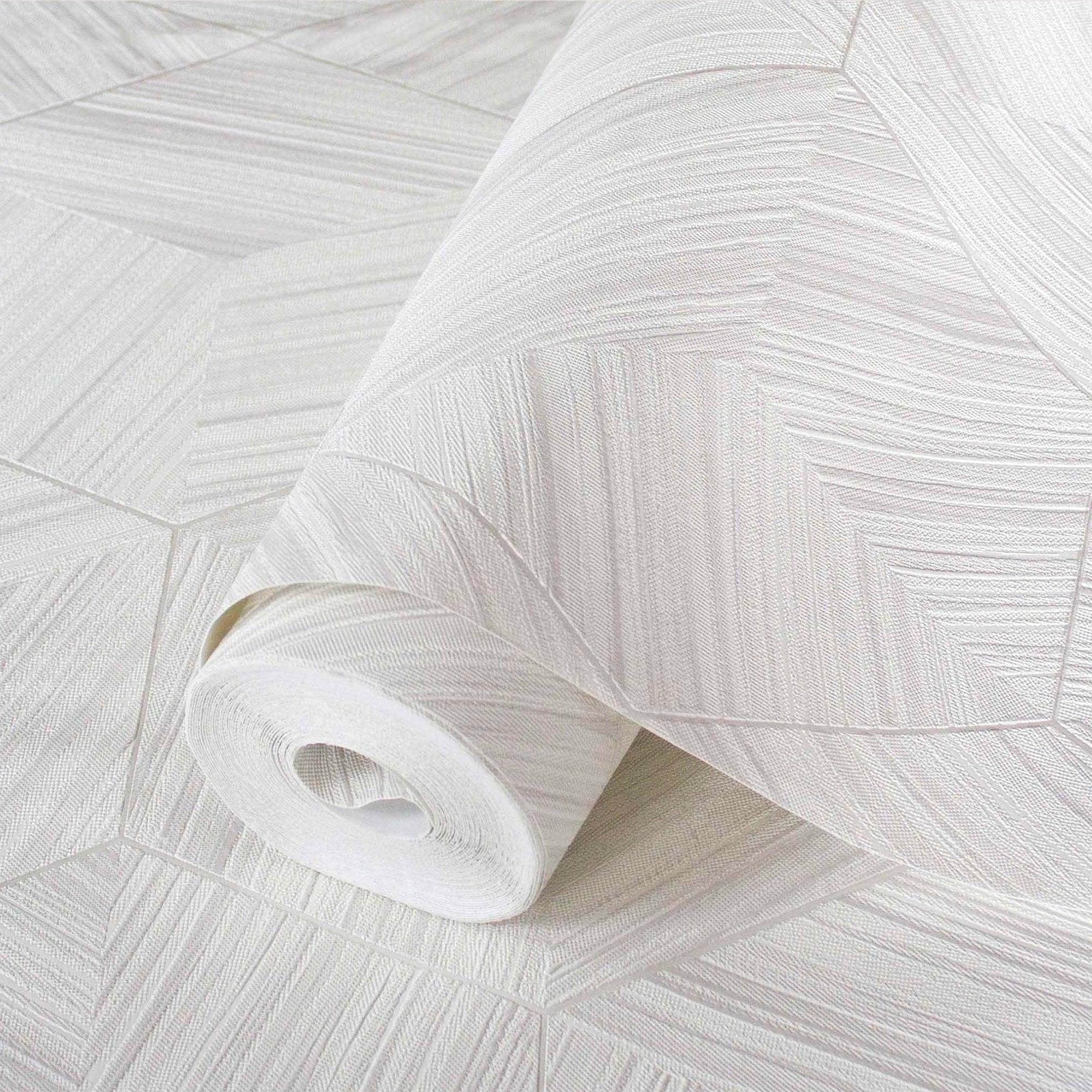 White Large Hexagon Embossed Wallpaer, Elegant Geometric Shapes Honeycomb Wallcovering