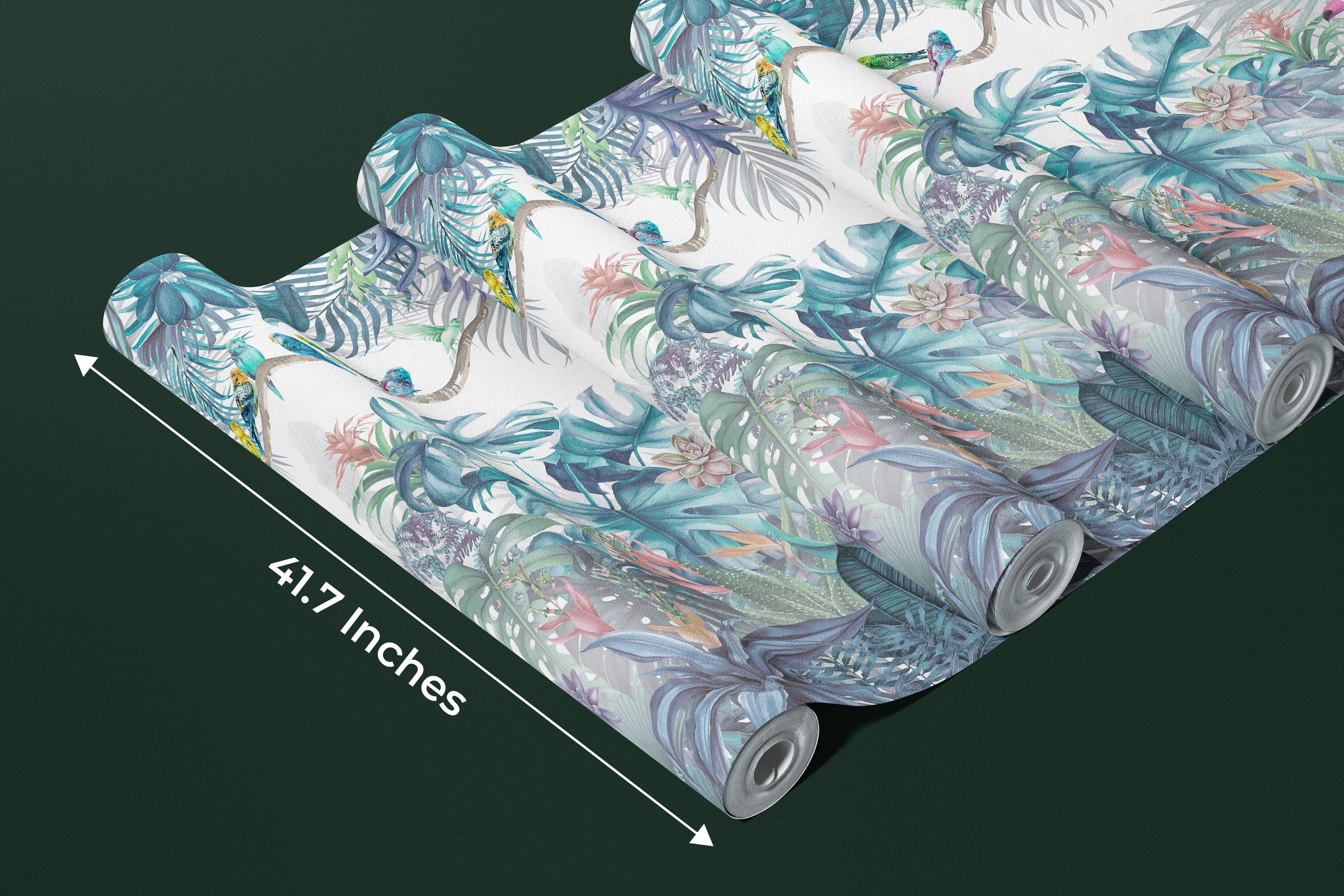 Tropic Jungle Scene Wallpaper, Parrots Mural, Oversized Custom Size Wall Art, Non-Woven, Non-Adhesive, Modern Wall Paper, Removable