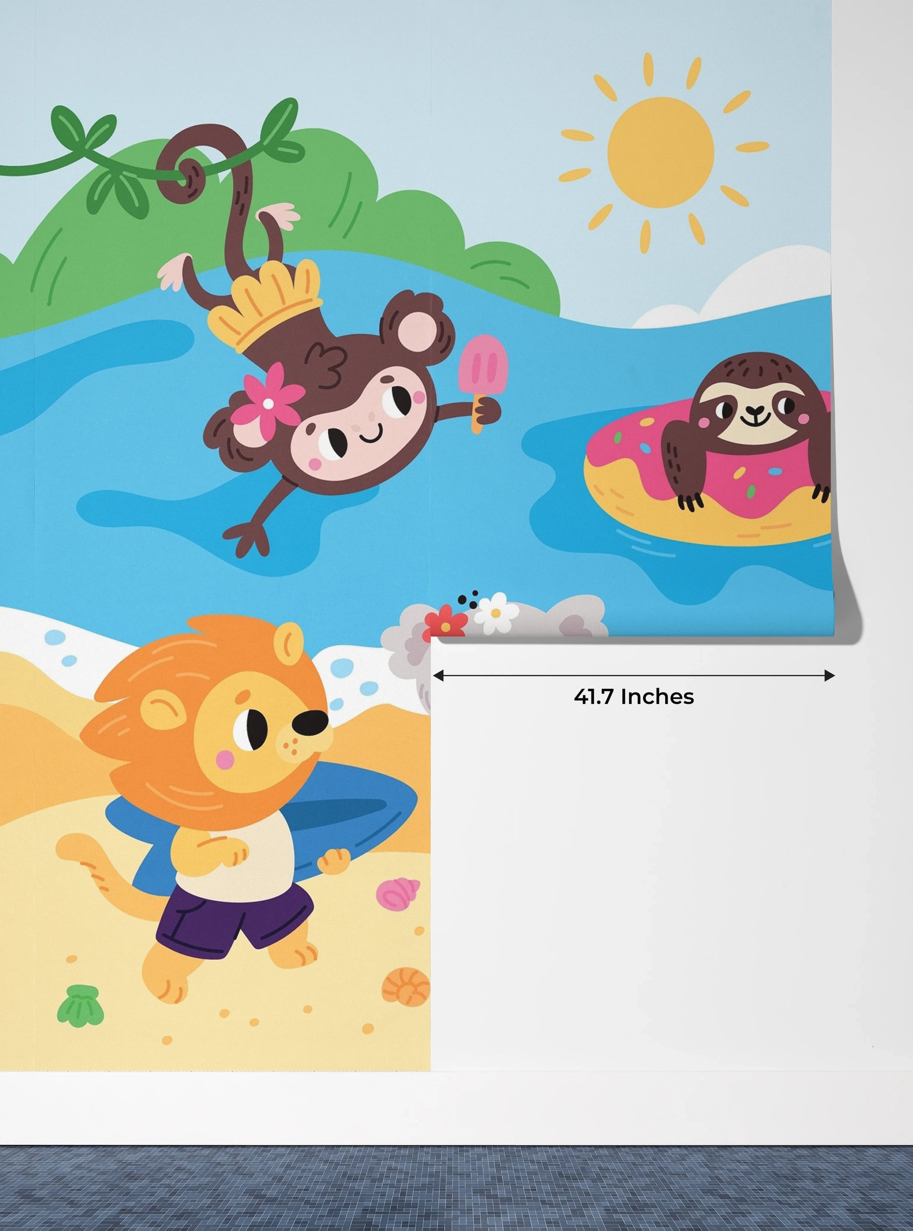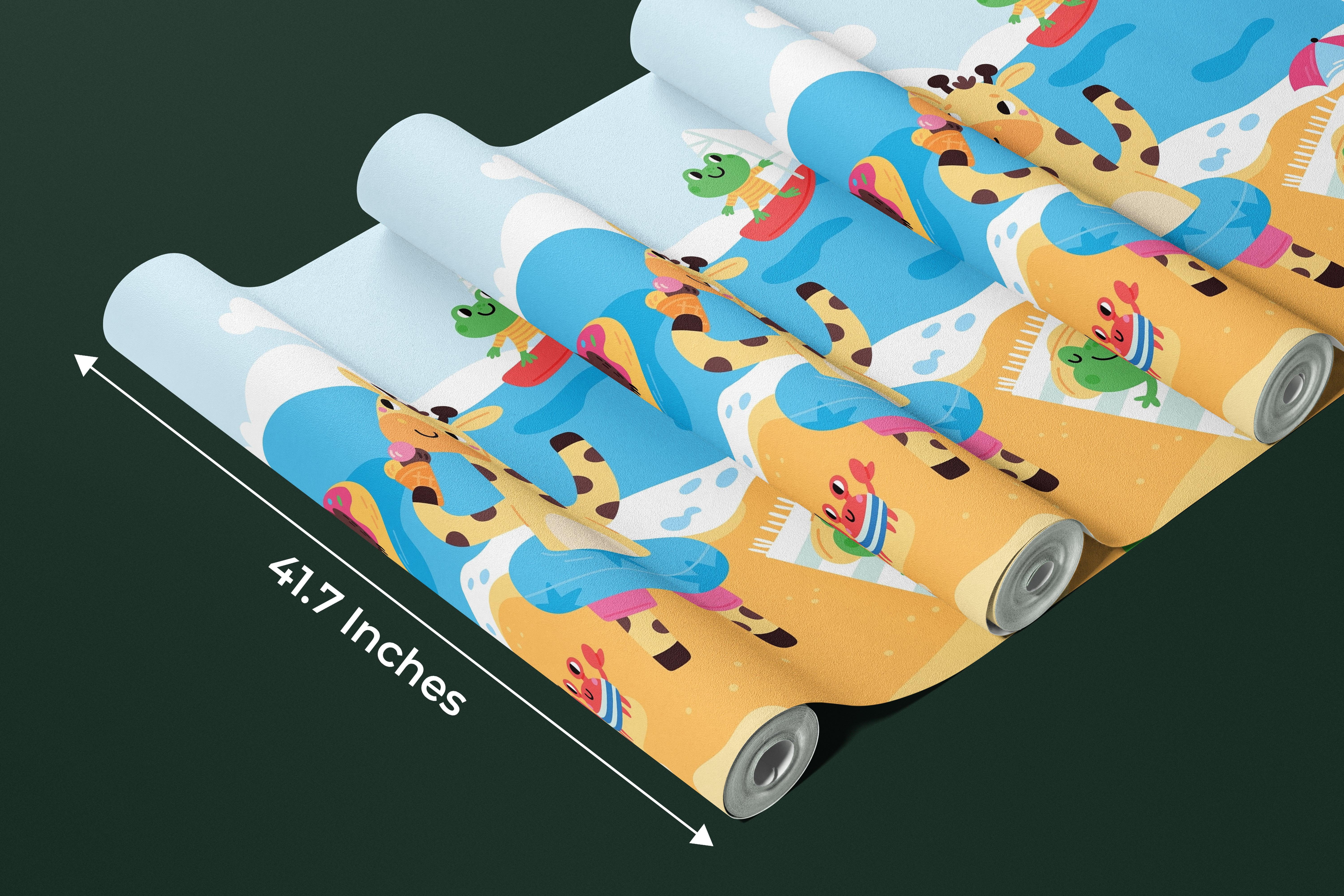 Happy Little Animals Wallpaper, Tropical Beach Mural, Oversized Custom Size Wall Art, Non-Woven, Non-Adhesive, Modern Wall Paper, Removable