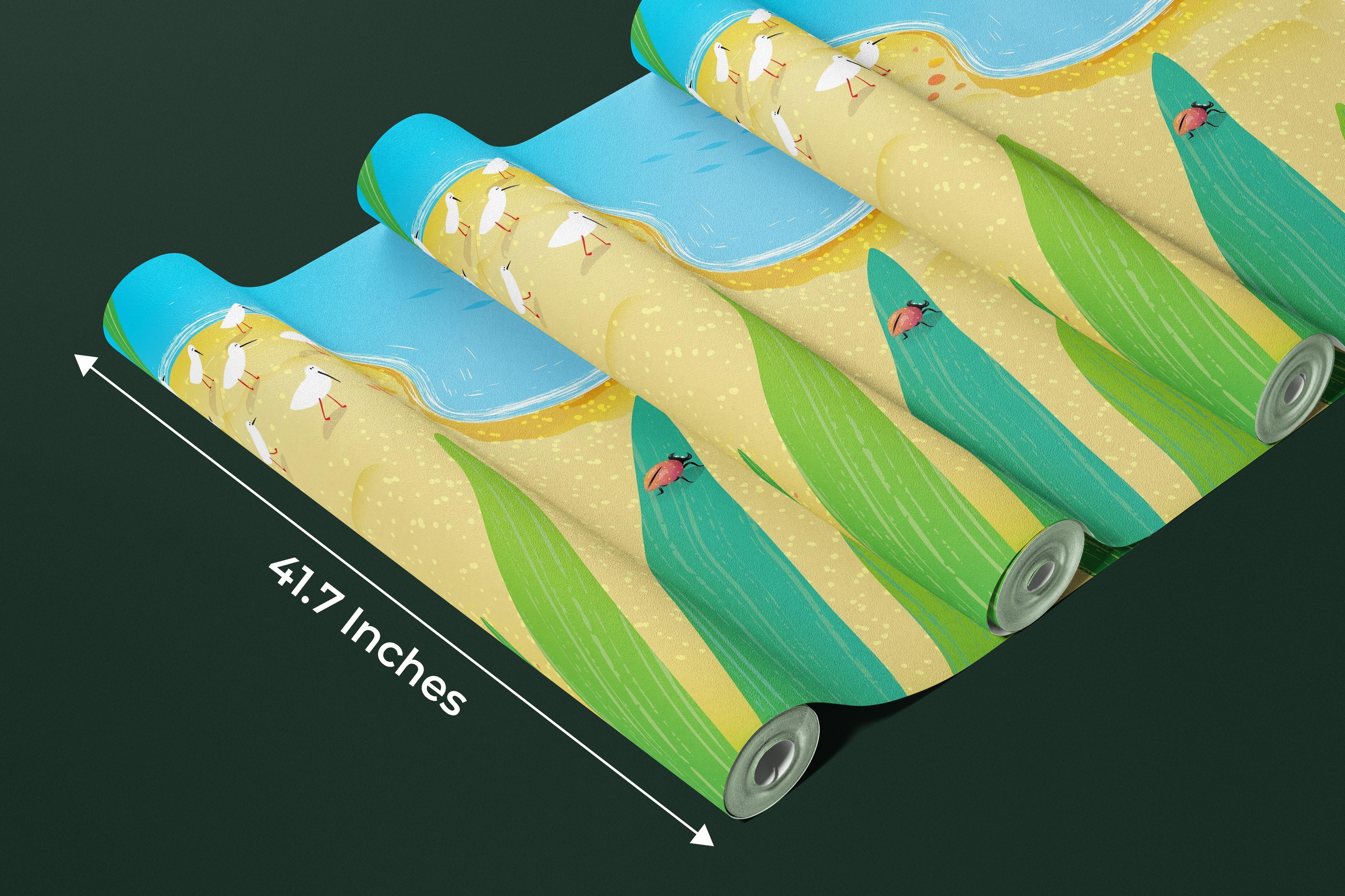Cute Crab Wallpaper, Tropical Beach Mural, Oversized Custom Size Wall Art, Non-Woven, Non-Adhesive, Modern Wall Paper, Removable