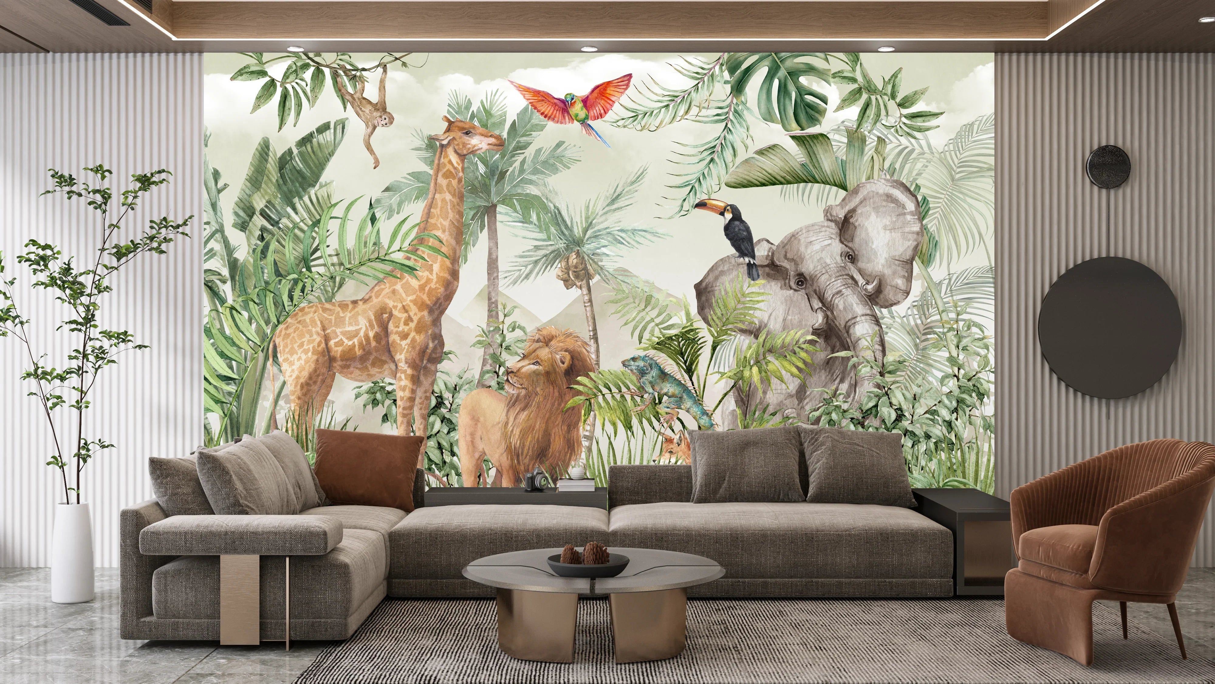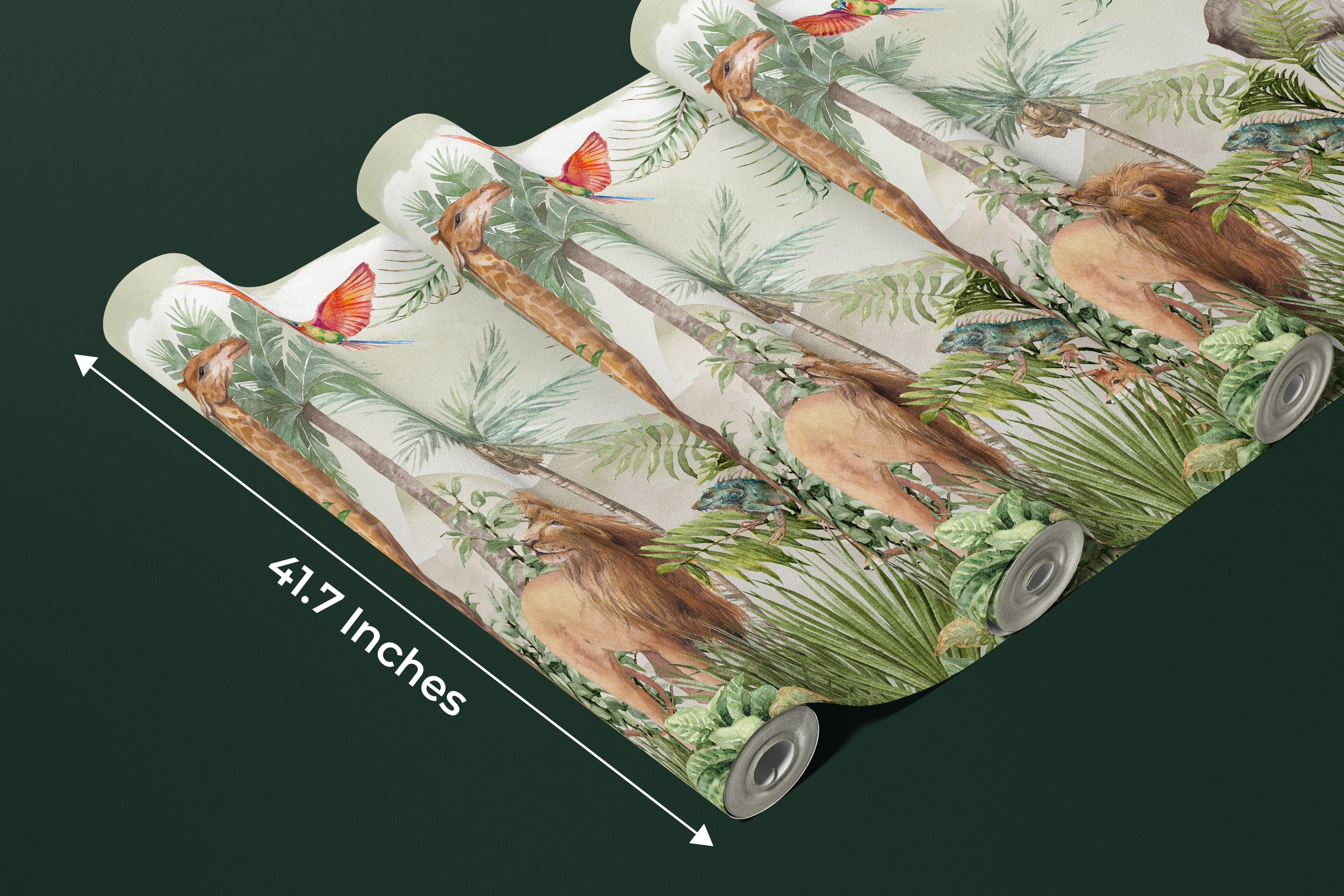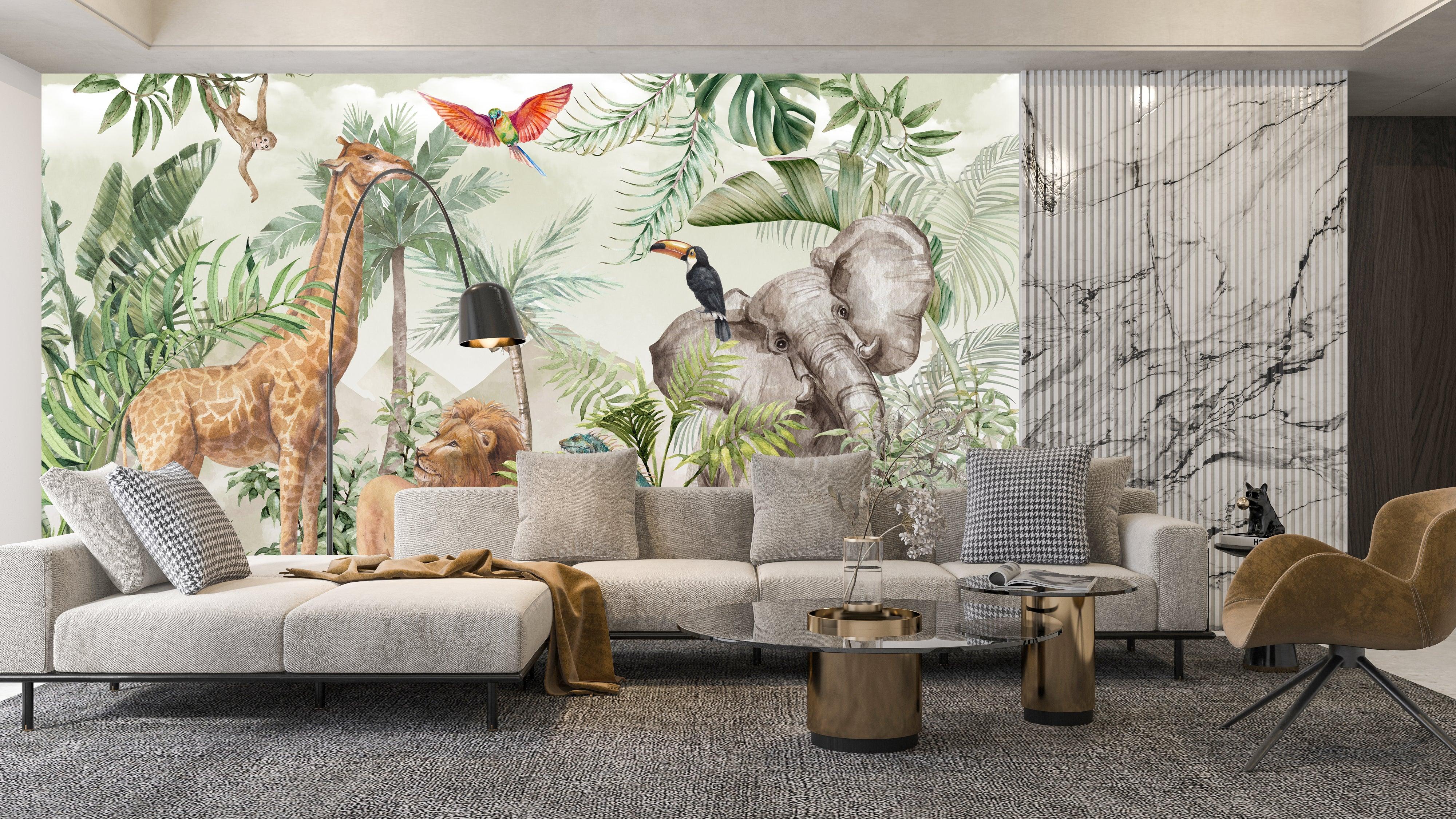 Safari Wildlife Wallpaper, Tropical Animals Mural, Oversized Custom Size Wall Art, Non-Woven, Non-Adhesive, Modern Wall Paper, Removable