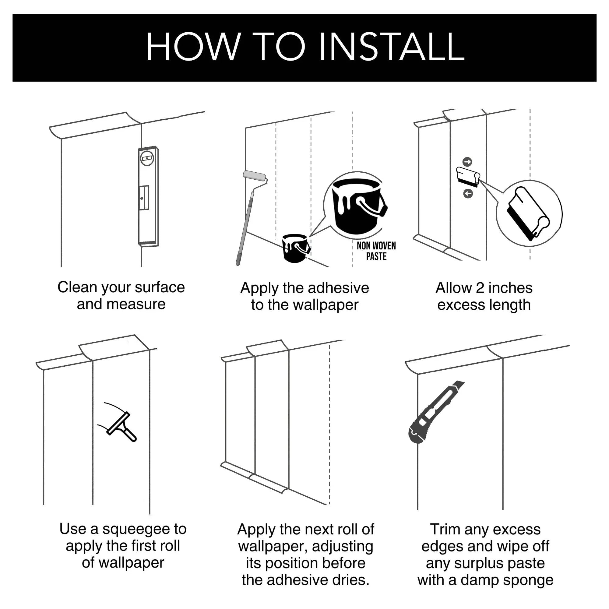 Unlike peel and stick wallpapers, our 3D embossed and textured wallpapers feature a non-paste backing, which requires the use of wall adhesive for installation. We highly recommend you to buy a high-quality wall adhesive from reputable home improvement stores. It is crucial to choose a reliable adhesive to guarantee a secure and long-lasting installation of our luxury wallpaper.