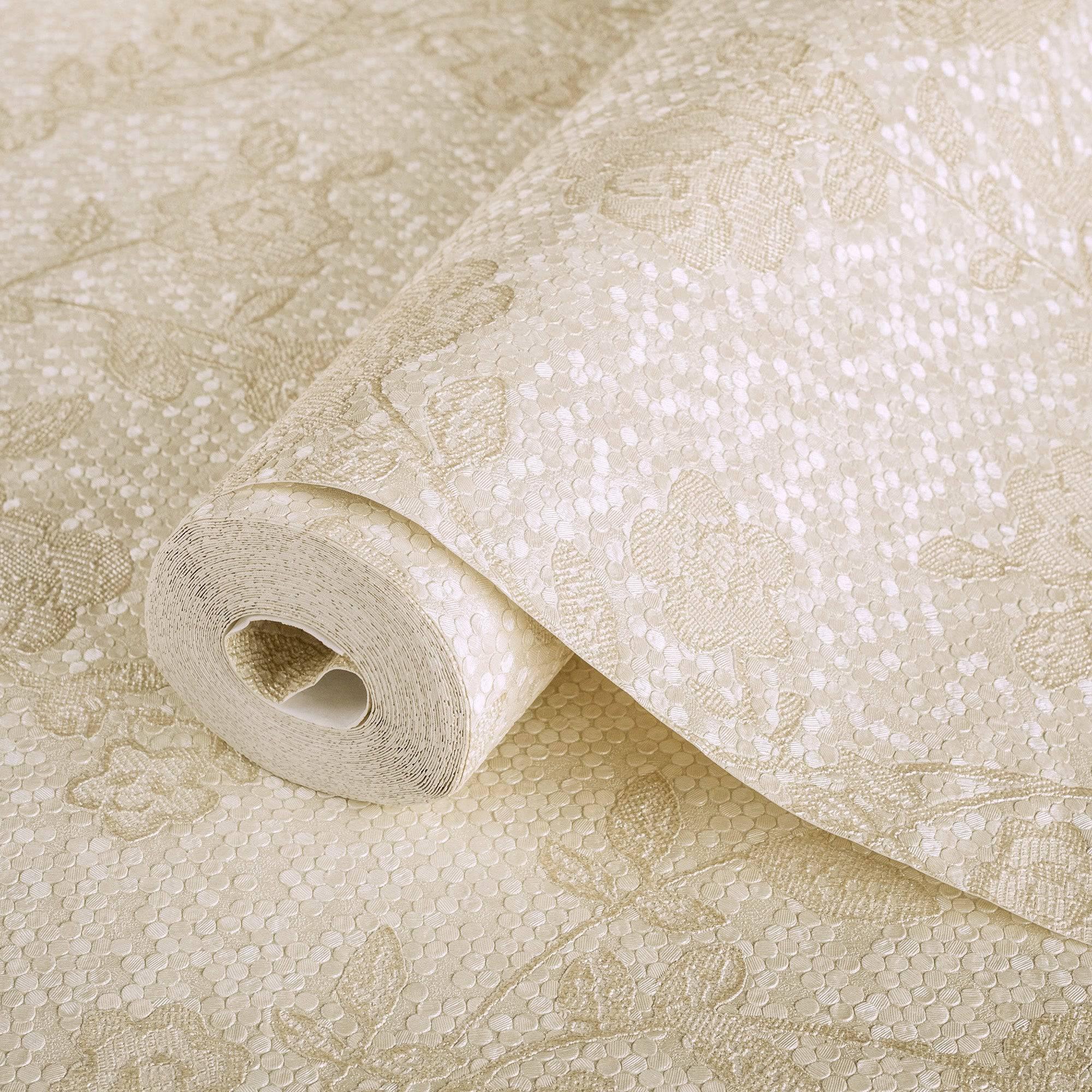 Circle Deep Embossed Vanilla Flowered Embossed Wallpaper, Home Wall Decor, Aesthetic Wallpaper, Textured Wallcovering Non-Adhesive