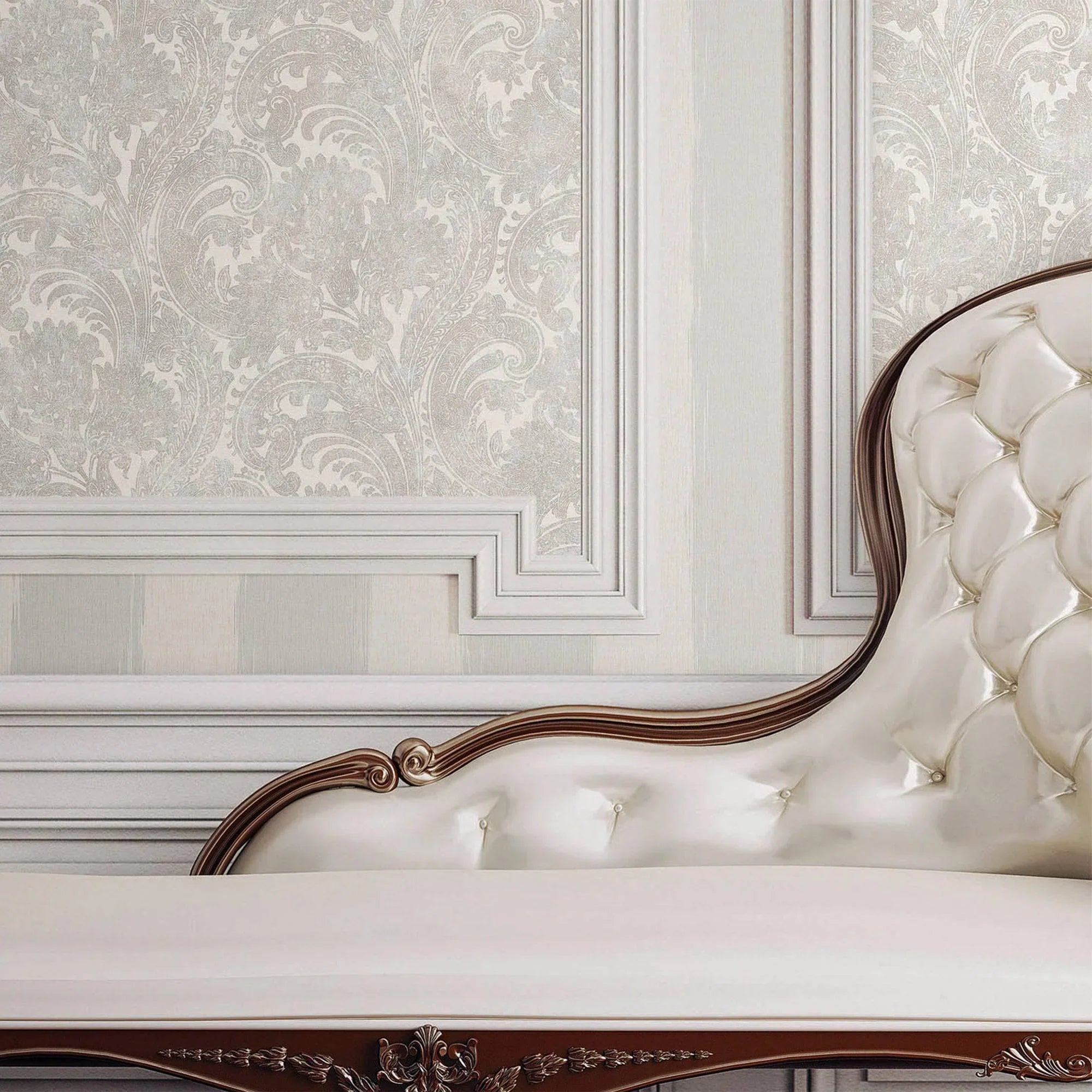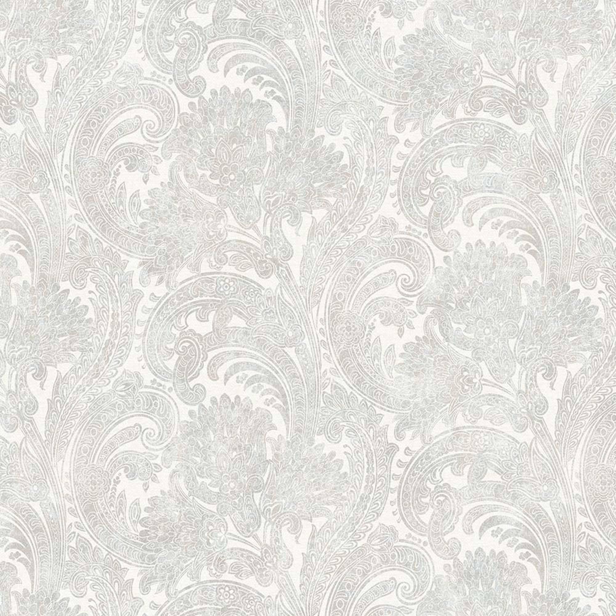 Luxury Paisley Wallpaper, Rich Textured Wallcovering, Traditional, Extra Large 114 sq ft Roll, Washable, Home Decor, White