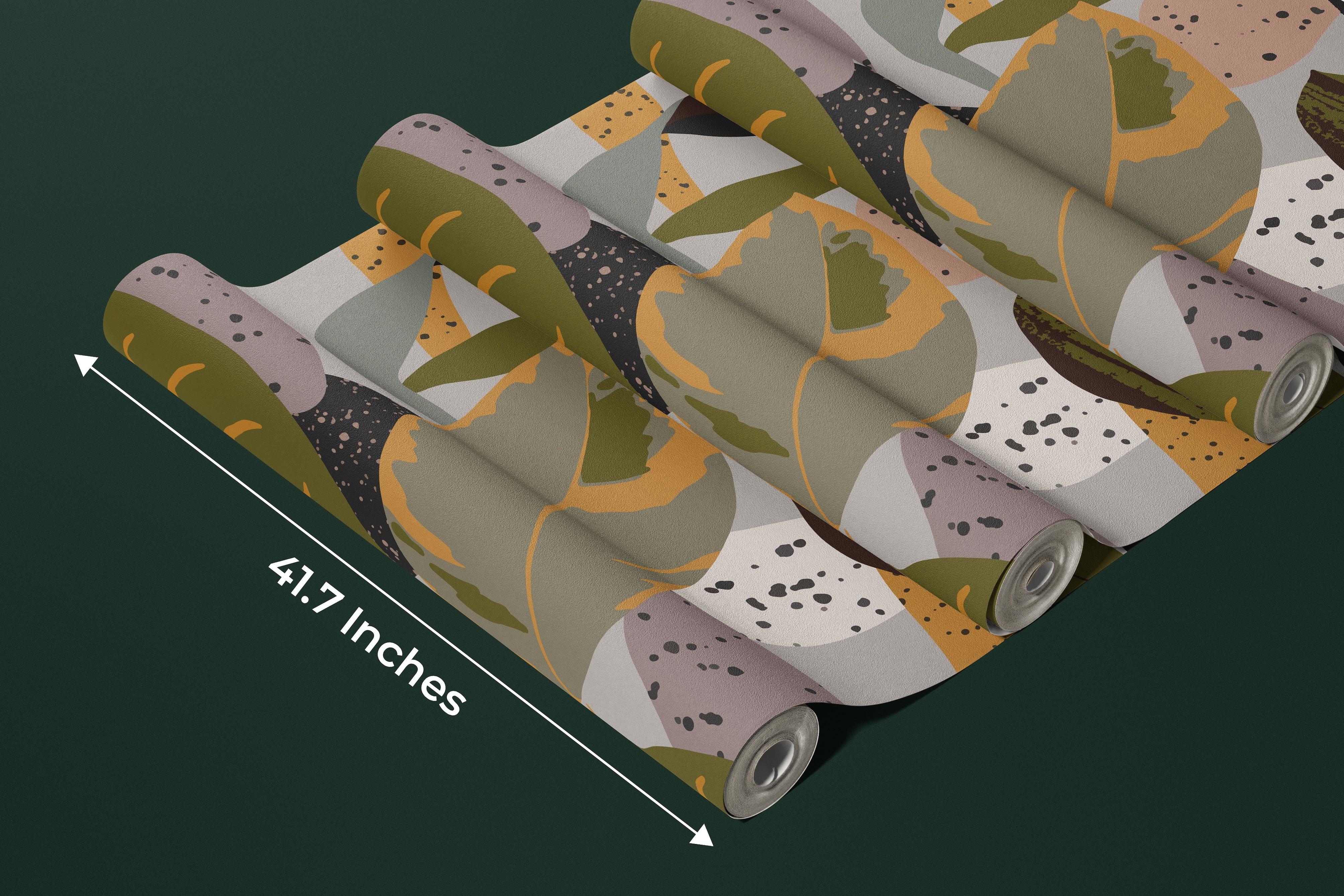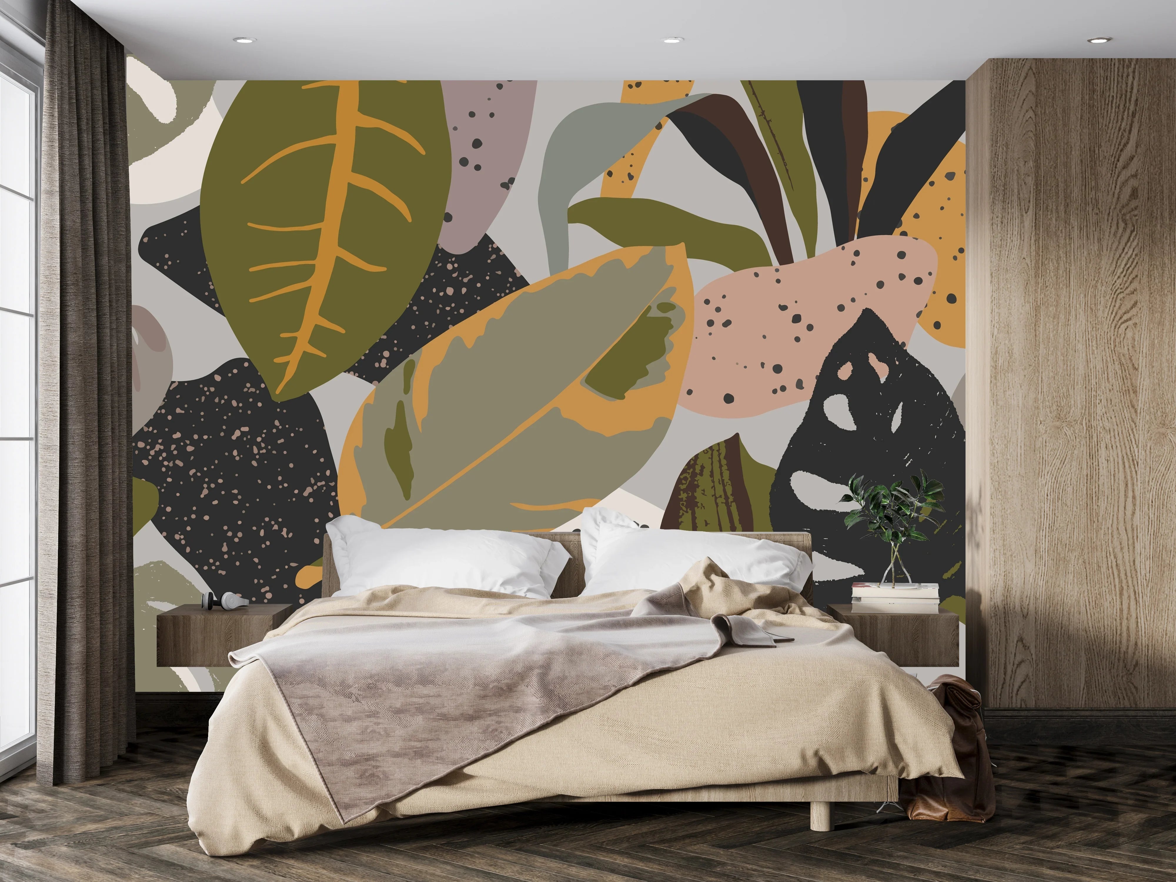 Abstract Botanical Wallpaper, Seamless Pattern Mural, Oversized Custom Size Wall Art, Non-Woven, Non-Adhesive, Modern Wall Paper, Removable