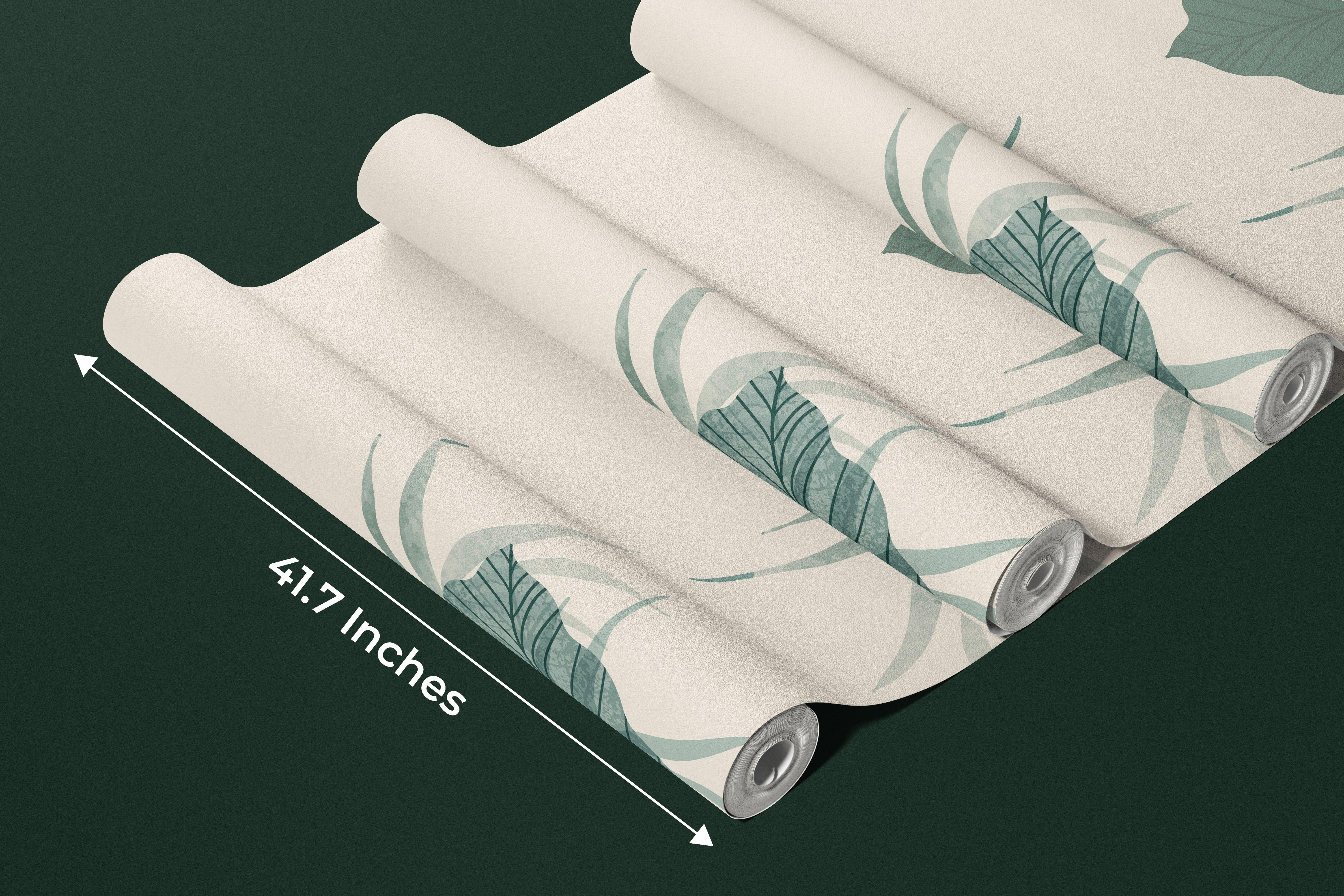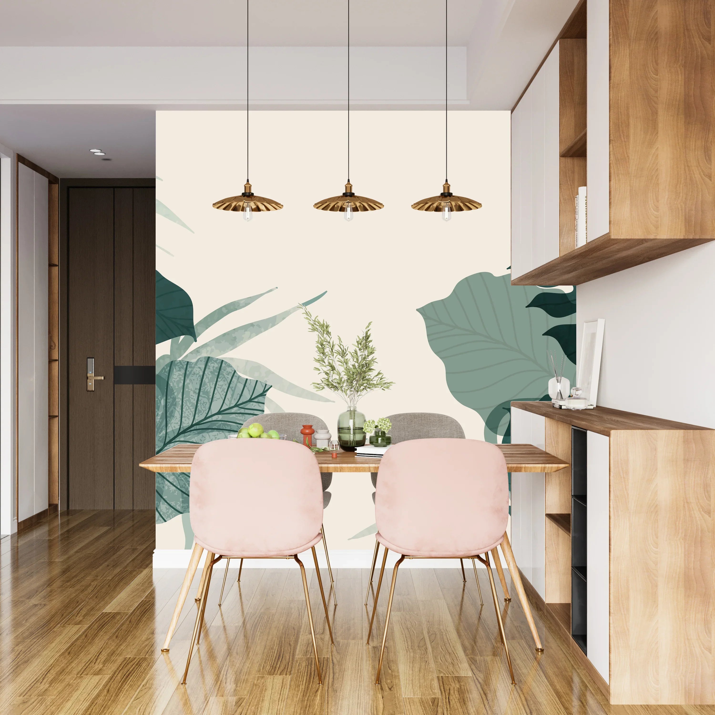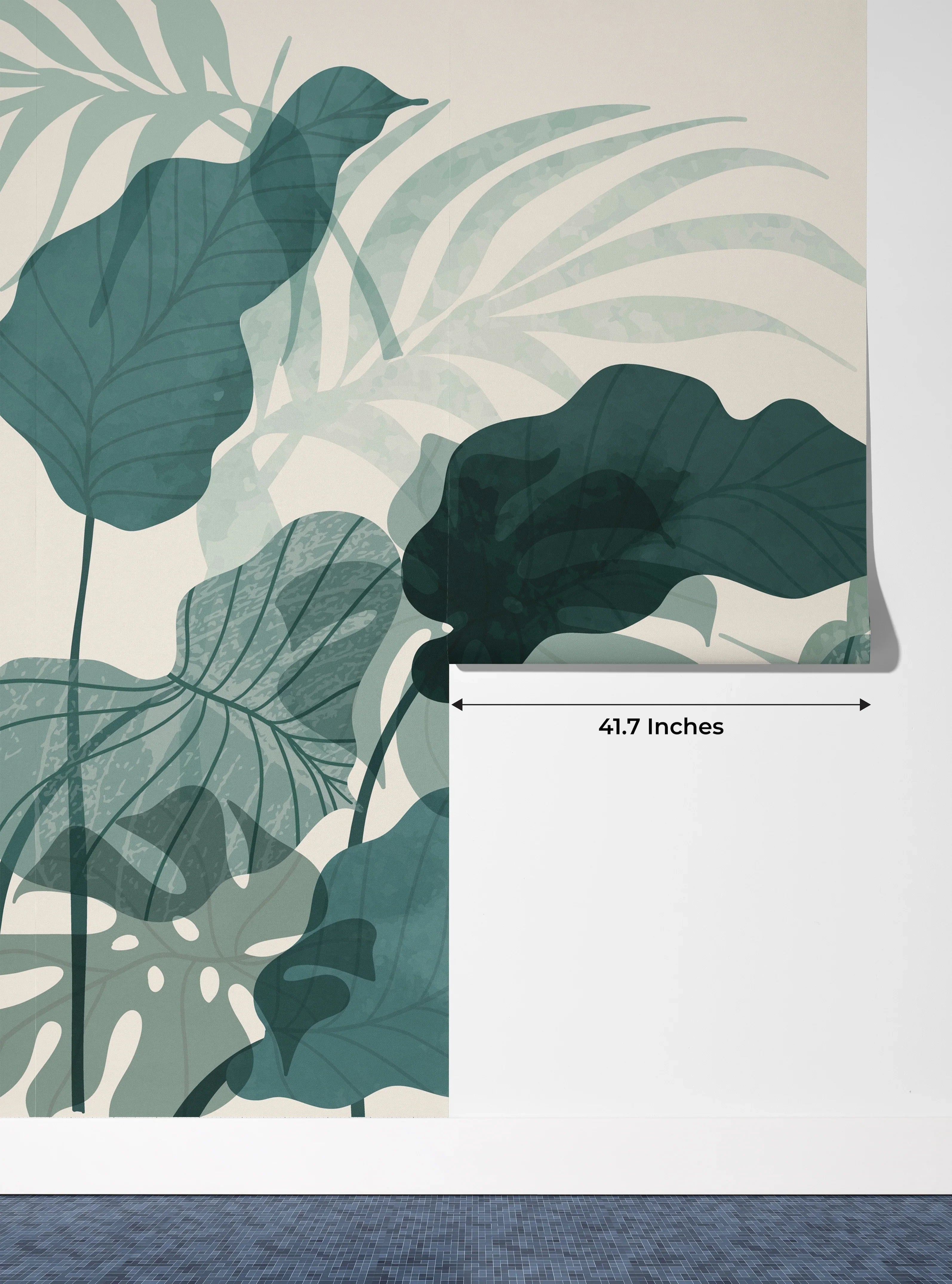 Abstract Botanical Wallpaper, Big Leaves Mural, Oversized Custom Size Wall Art, Non-Woven, Non-Adhesive, Modern Wall Paper, Removable