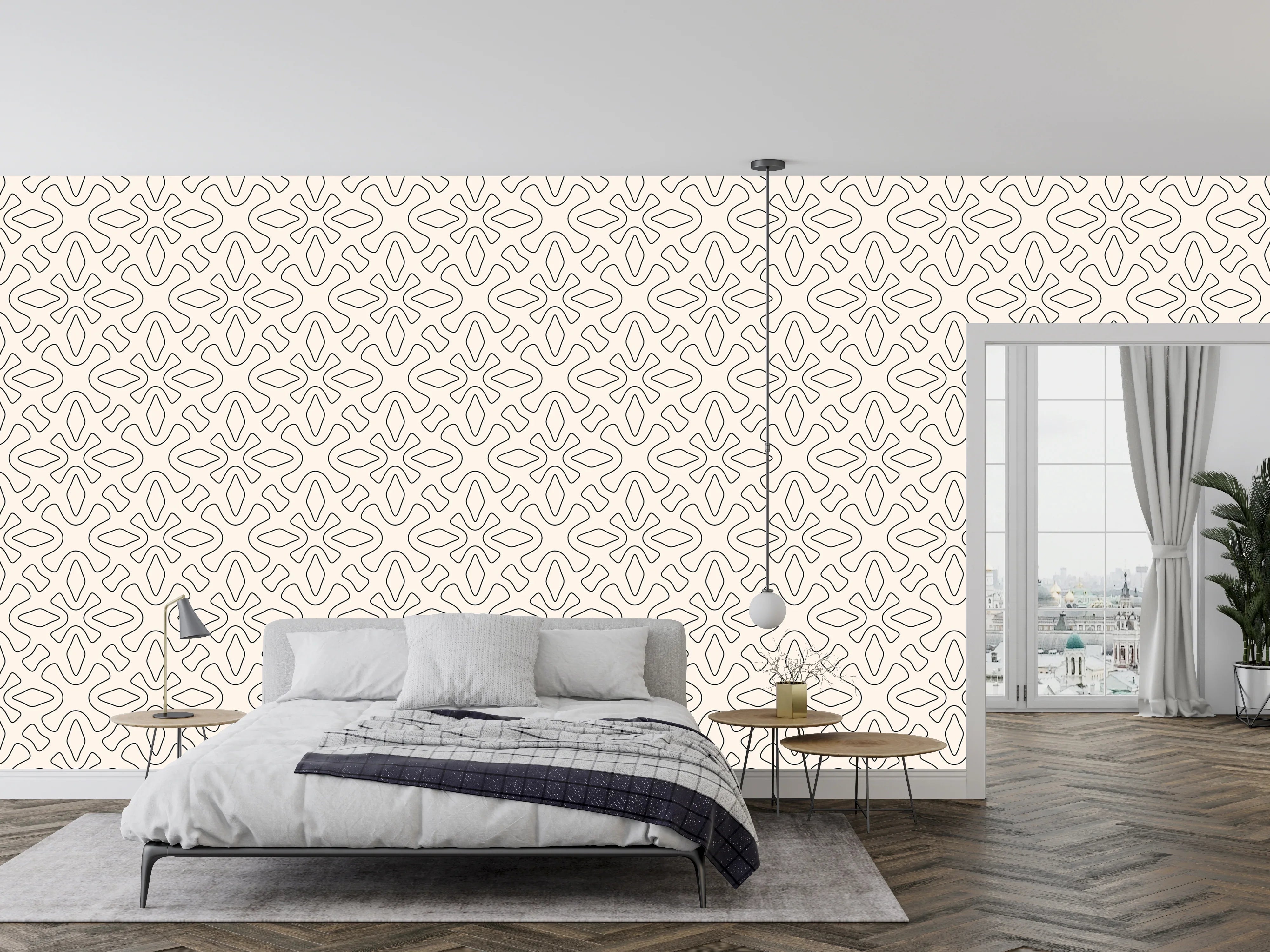 Linear Geometric Wallpaper, Seamless Pattern Mural, Oversized Custom Size Wall Art, Non-Woven, Non-Adhesive, Modern Wall Paper, Removable