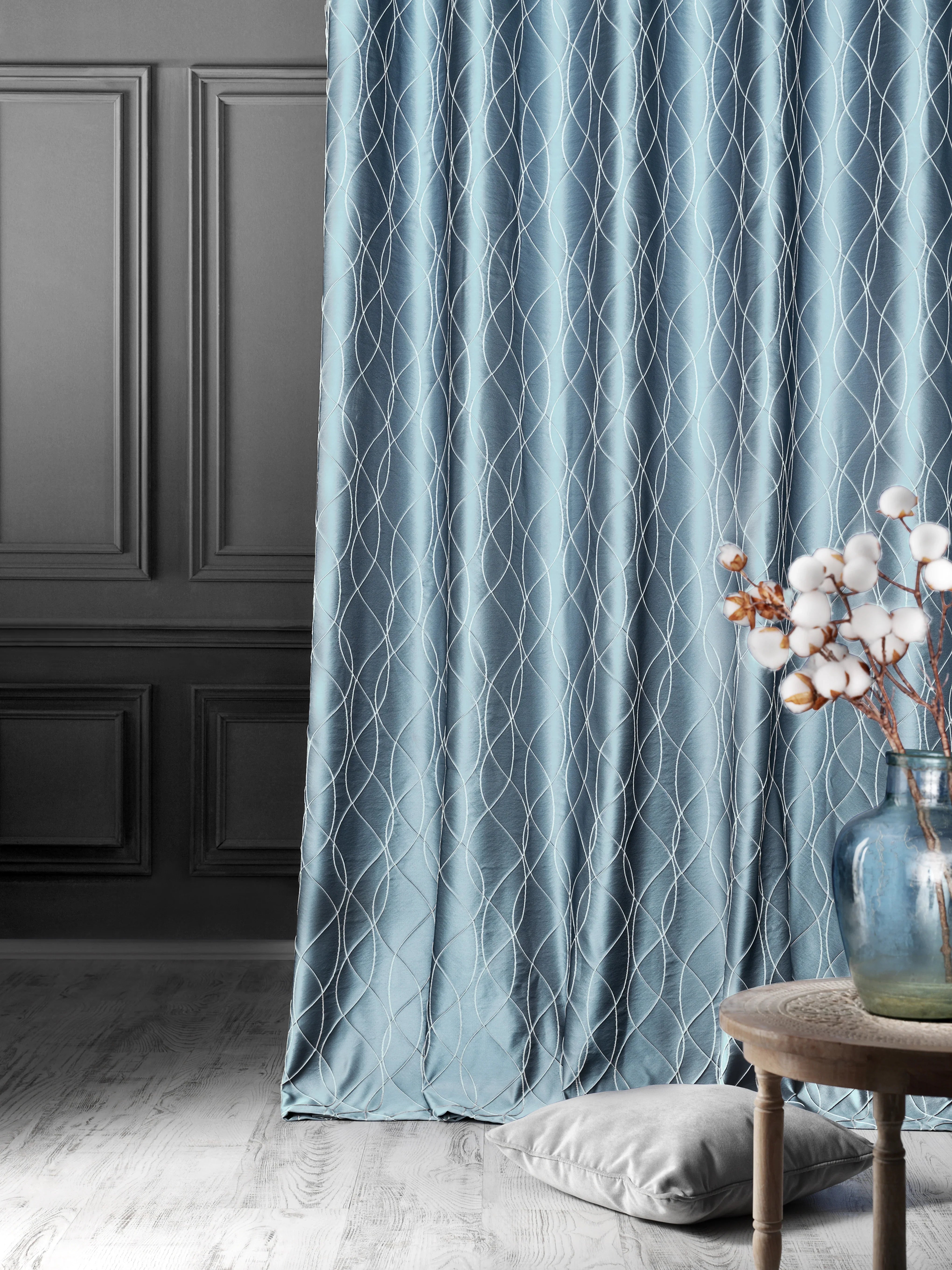 • Natural fiber fabrics may experience slight variations over time due to humidity and temperature changes—this is normal. If this is a concern, consider ordering a length with a slight puddle.