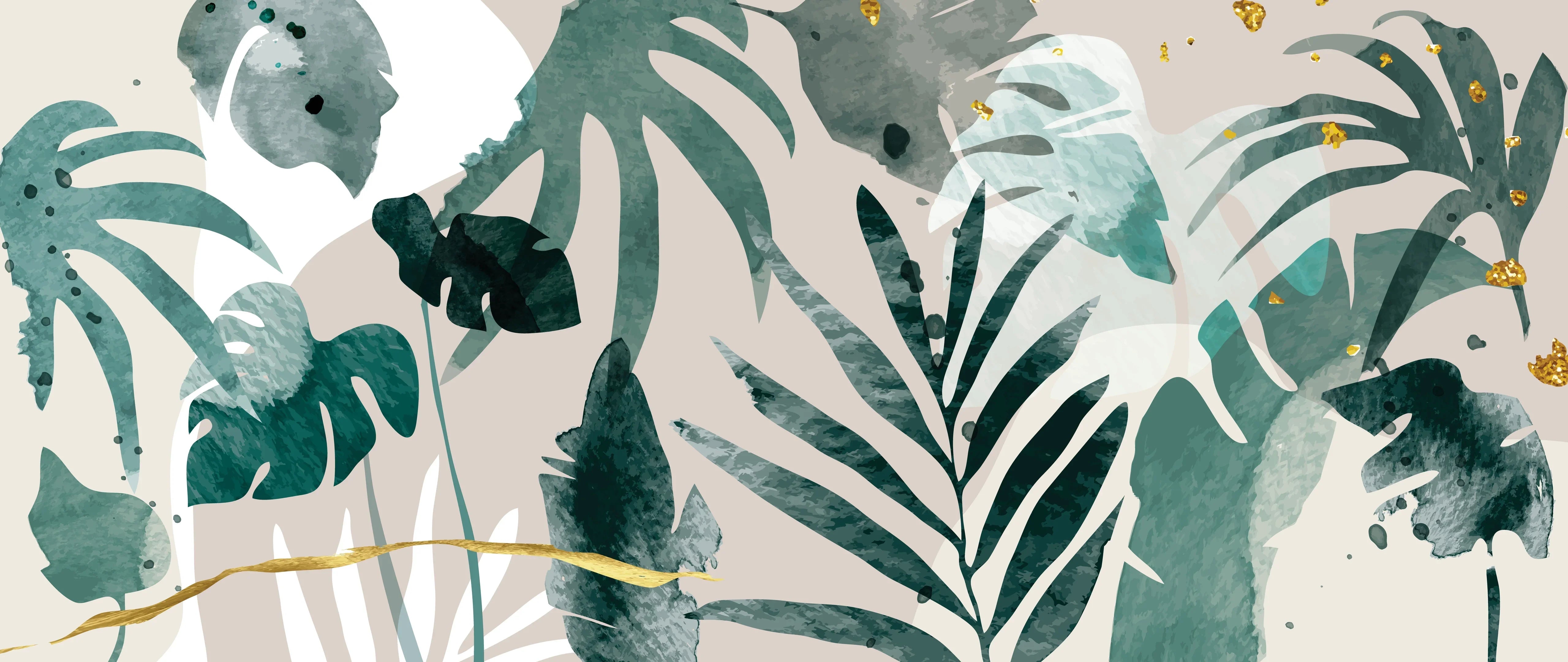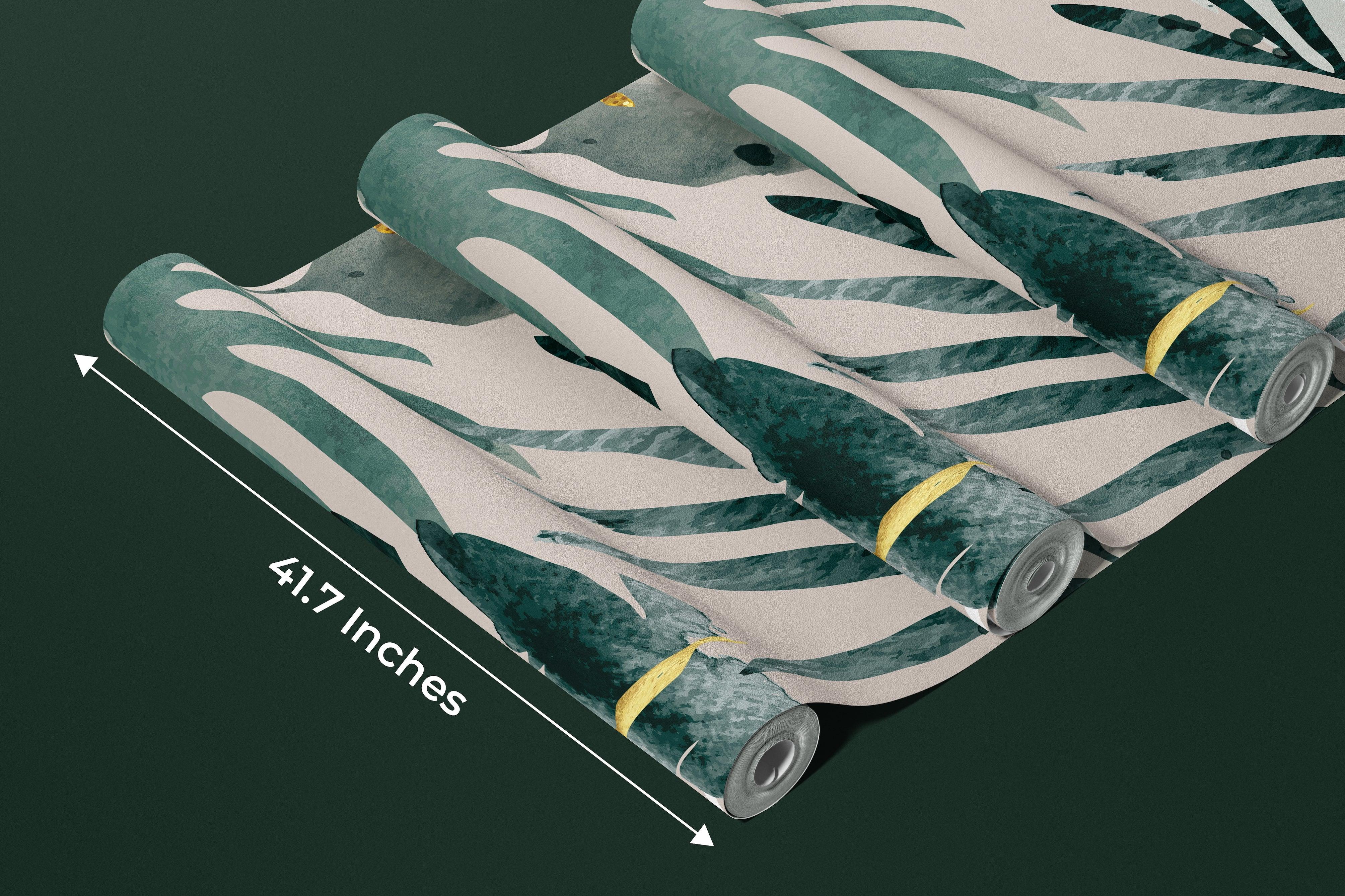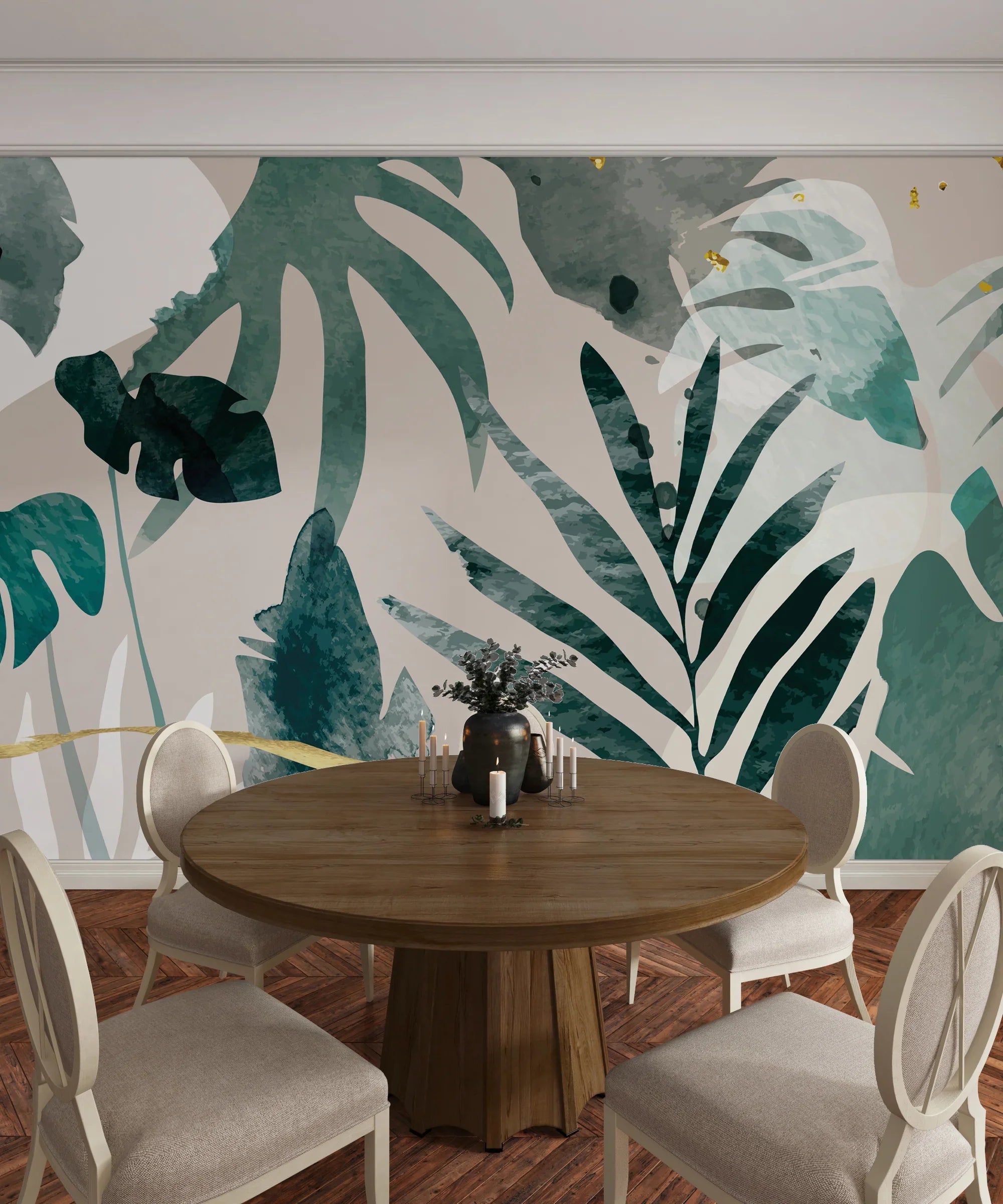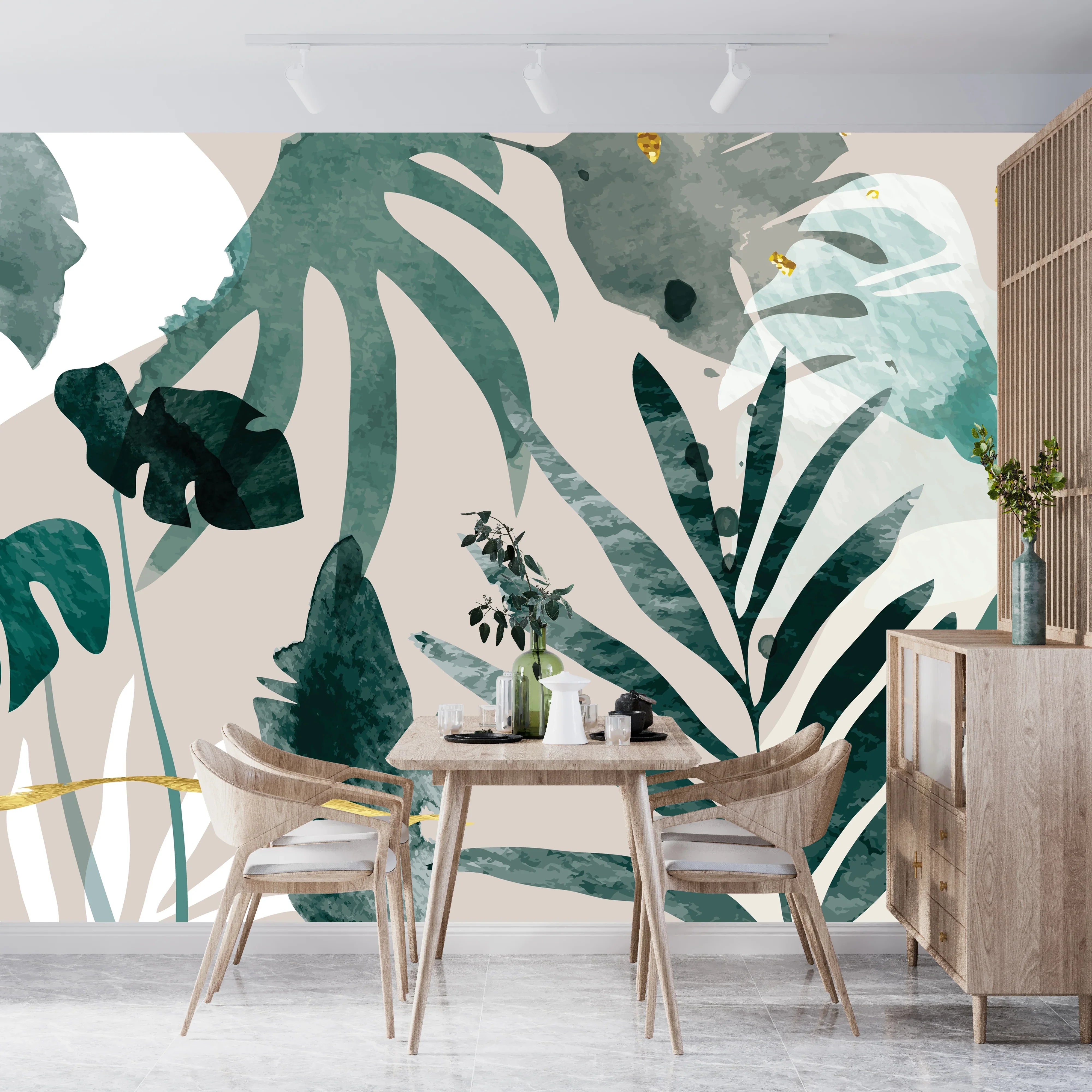 Abstract Art Gold Wallpaper, Tropical Leaves Mural, Oversized Custom Size Wall Art, Non-Woven, Non-Adhesive, Modern Wall Paper, Removable