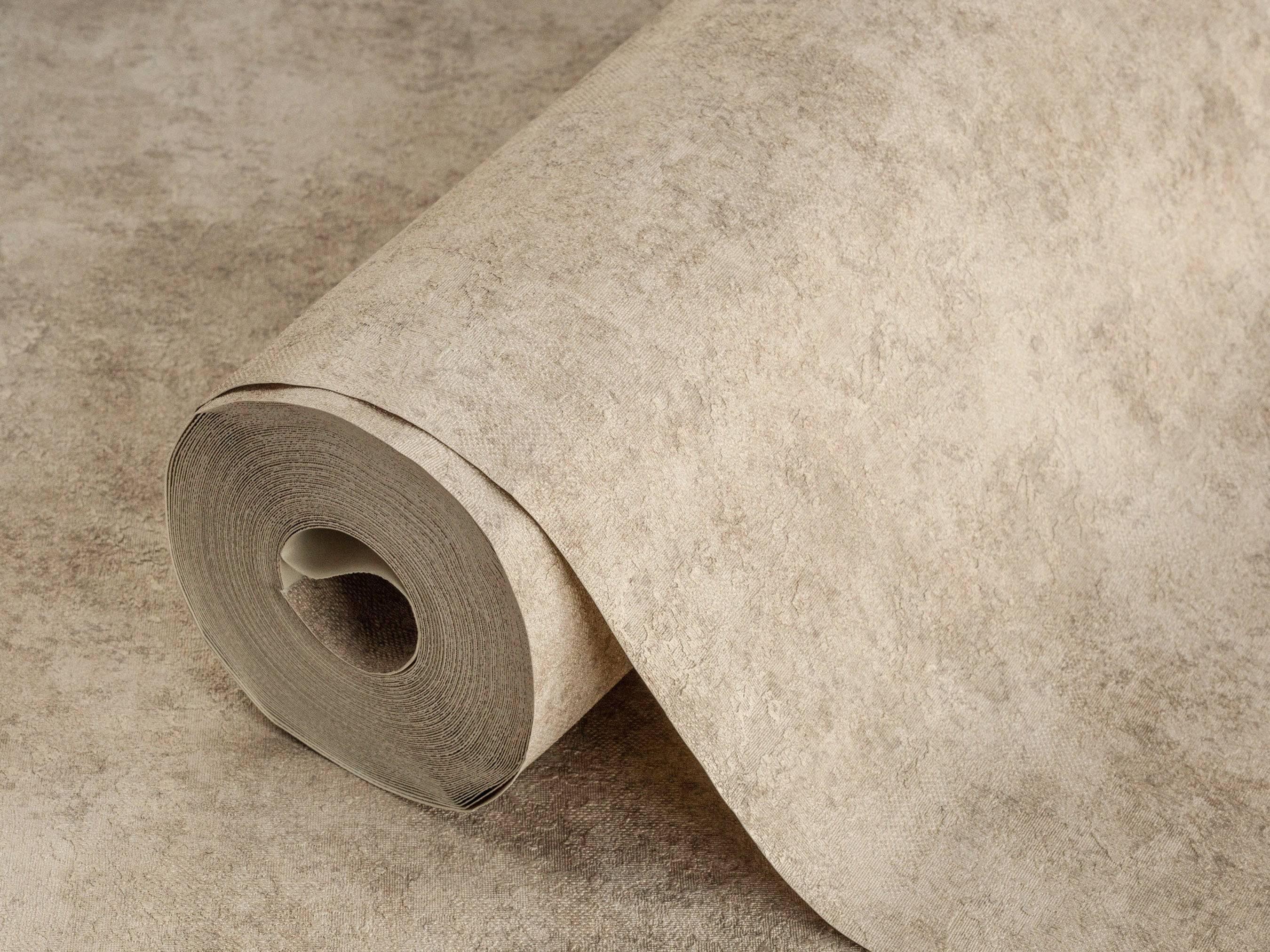Beige Industrial Metallic Rustic Wallpaper, 3D Embossed Modern Worn-Out Style Distressed Weathered