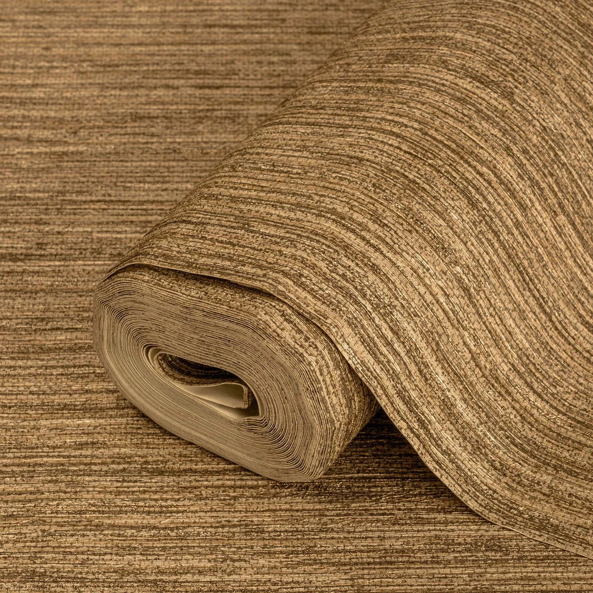 Brown Striped Embossed Wallpaper, Jute Natural Color Linen Textured Wallcovering