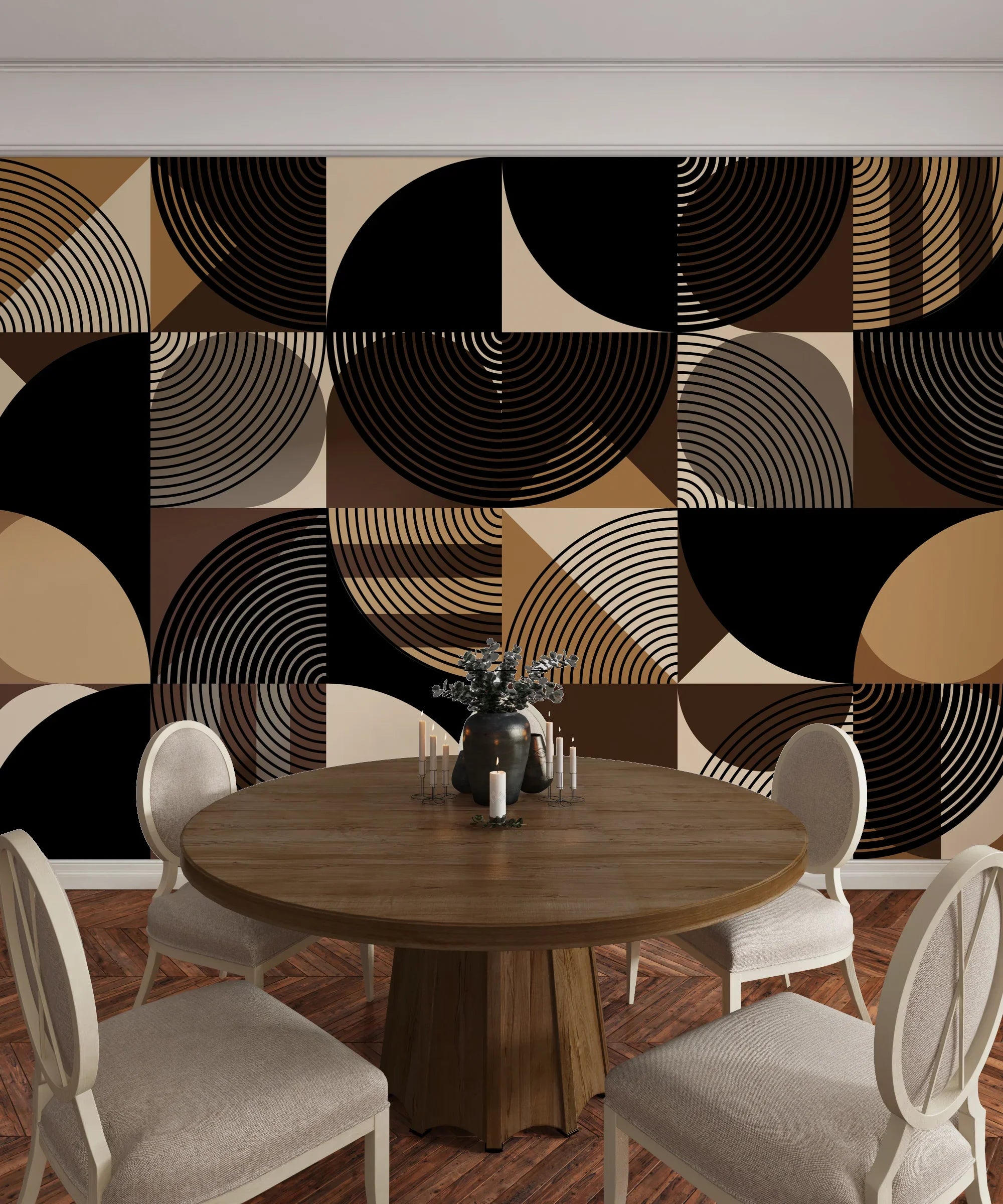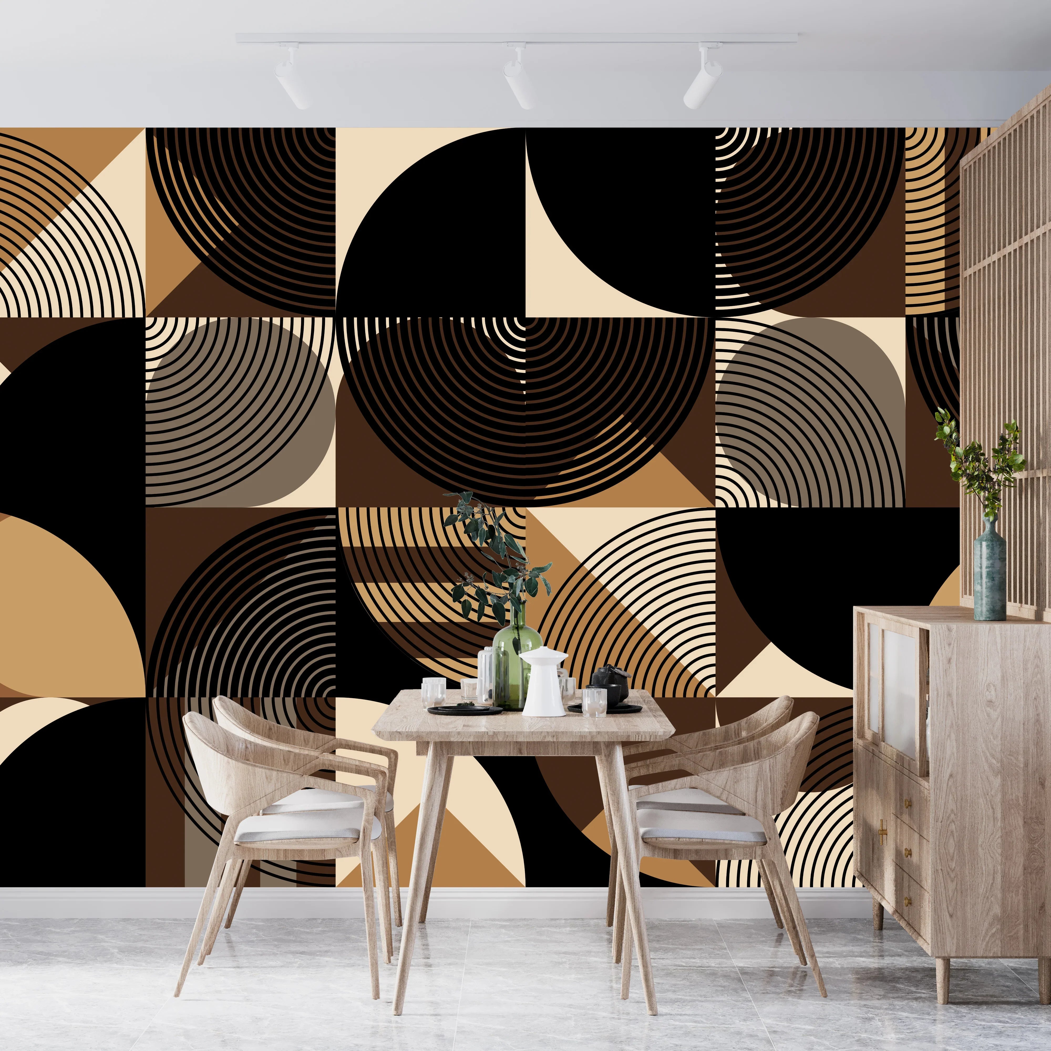Black and Brown Wallpaper, Geometric Mural, Oversized Custom Size Wall Art, Non-Woven, Non-Adhesive, Modern Wall Paper, Removable