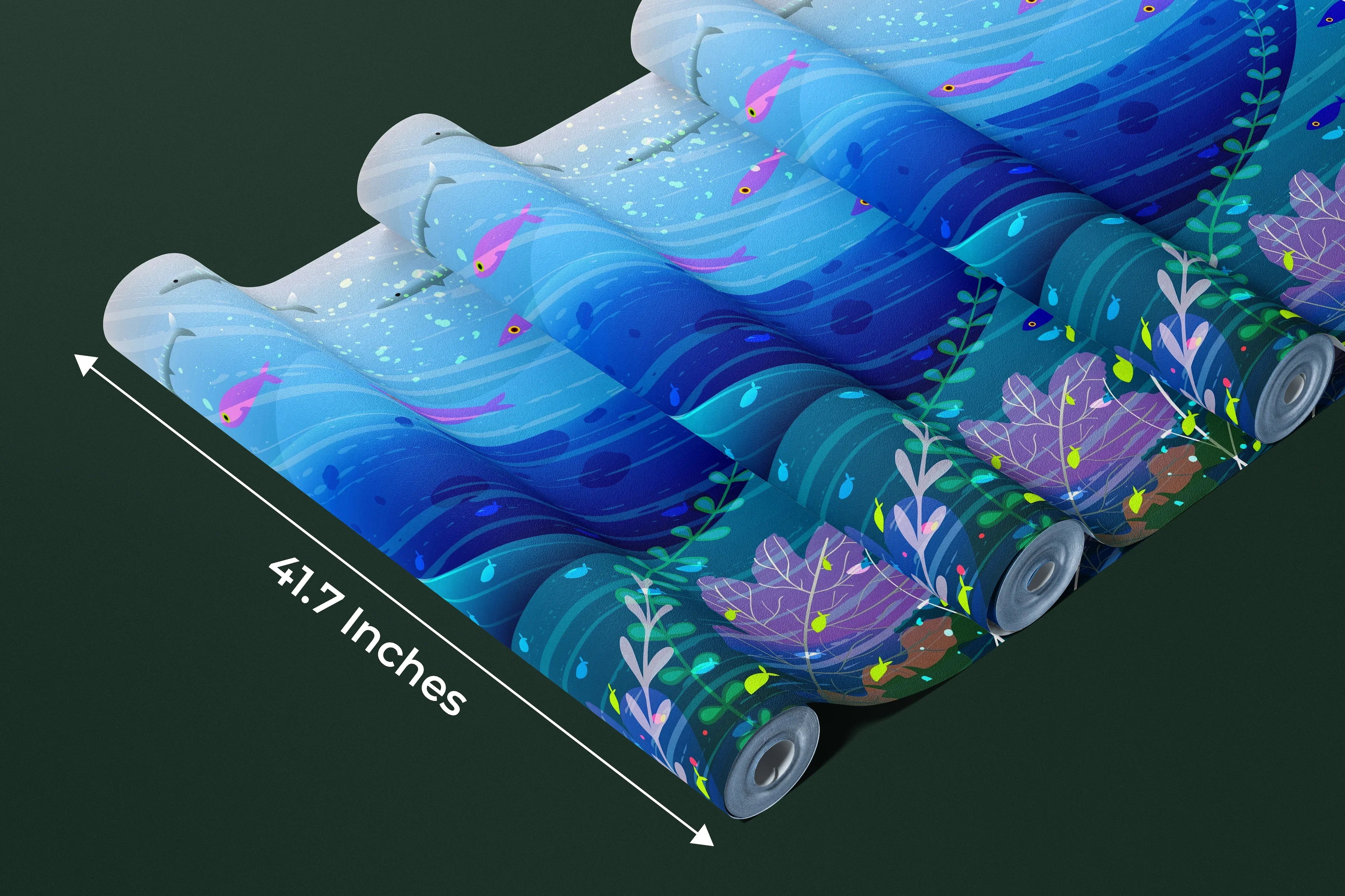 Whale and Fishes Wallpaper, Underwater Scene Mural, Oversized Custom Size Wall Art, Non-Woven, Non-Adhesive, Modern Wall Paper, Removable