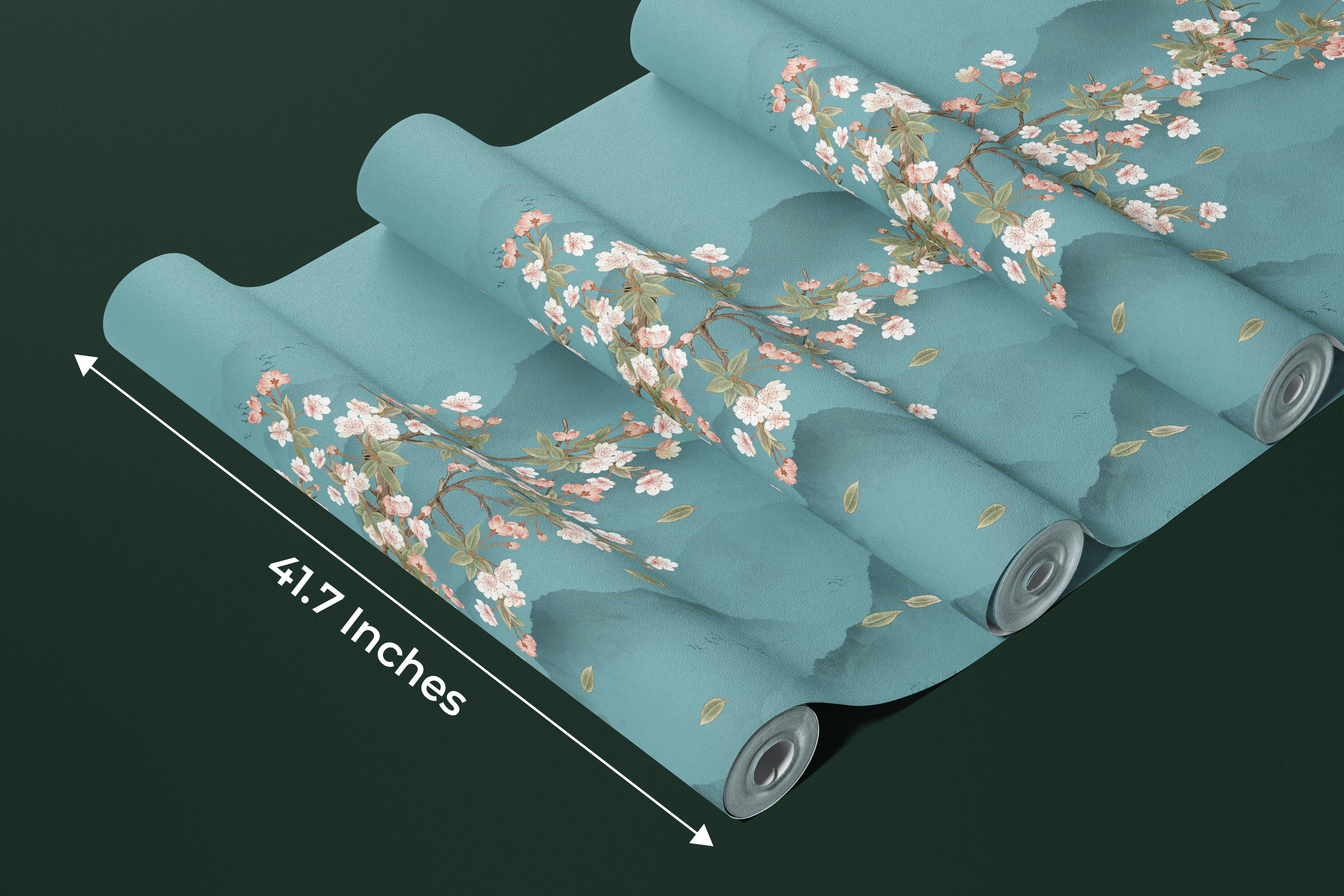 Blue Chinoiserie Wallpaper, Tree and Birds Mural, Oversized Custom Size Wall Art, Non-Woven, Non-Adhesive, Modern Wall Paper, Removable