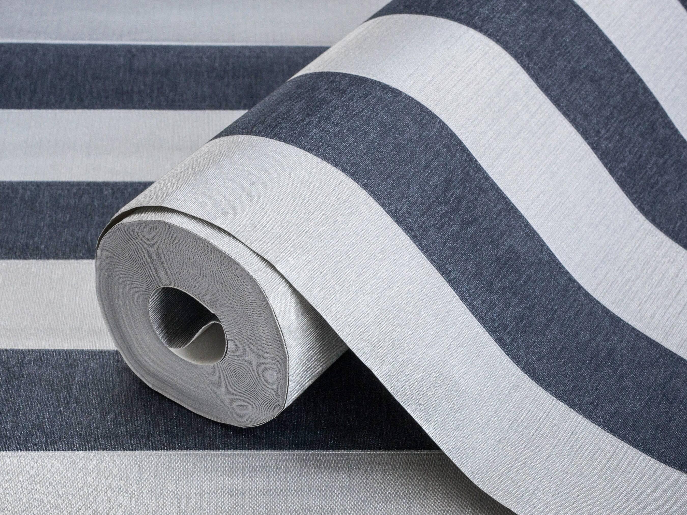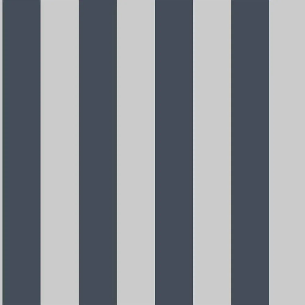 Dark Blue Timeless Bold Striped Wallpaper, Flocked Textured Velvet Feeling Thick Lines Wallcovering