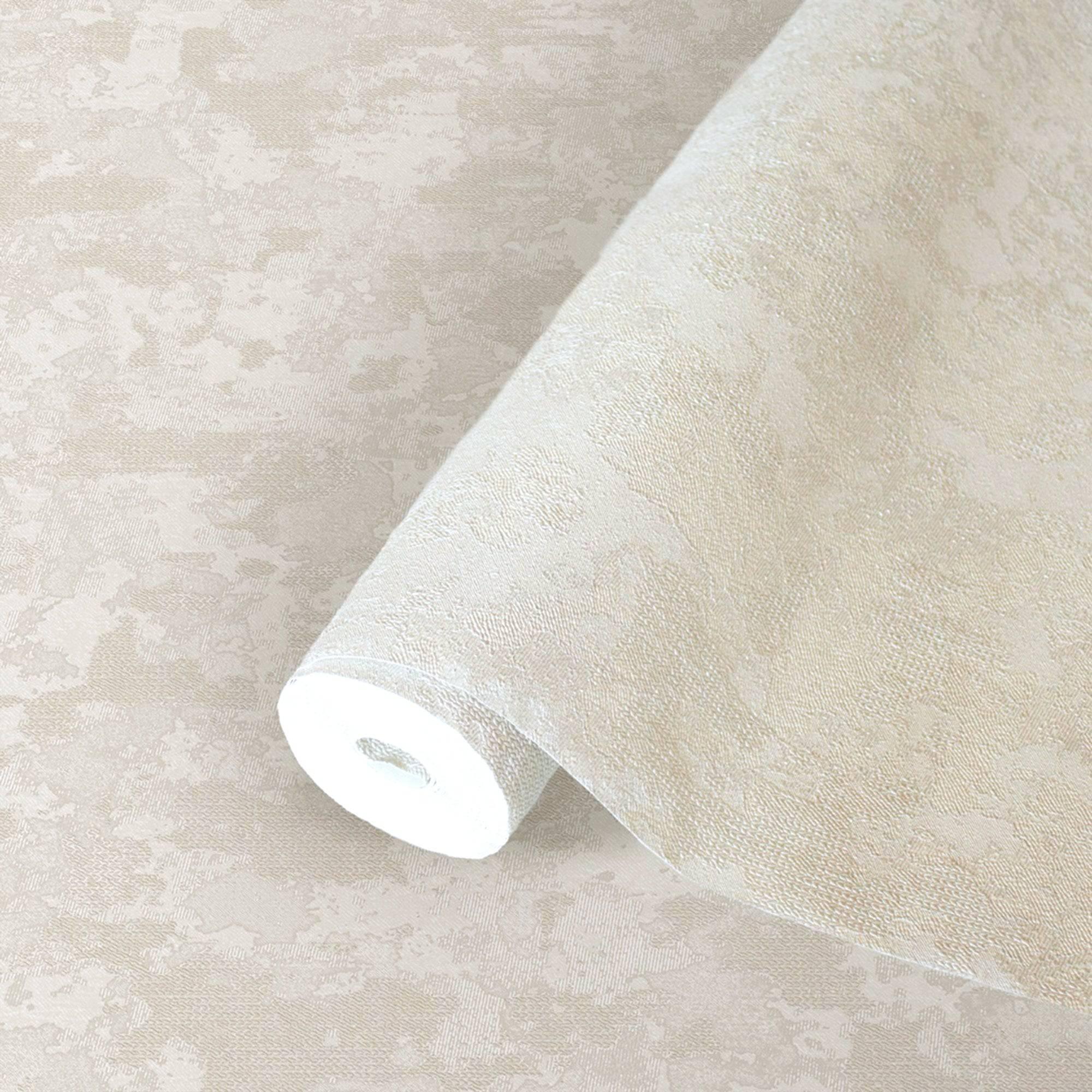 Ivory Distressed Solid Color Wallpaper, 3D Embossed Shiny Wallcovering, Weathered Effect