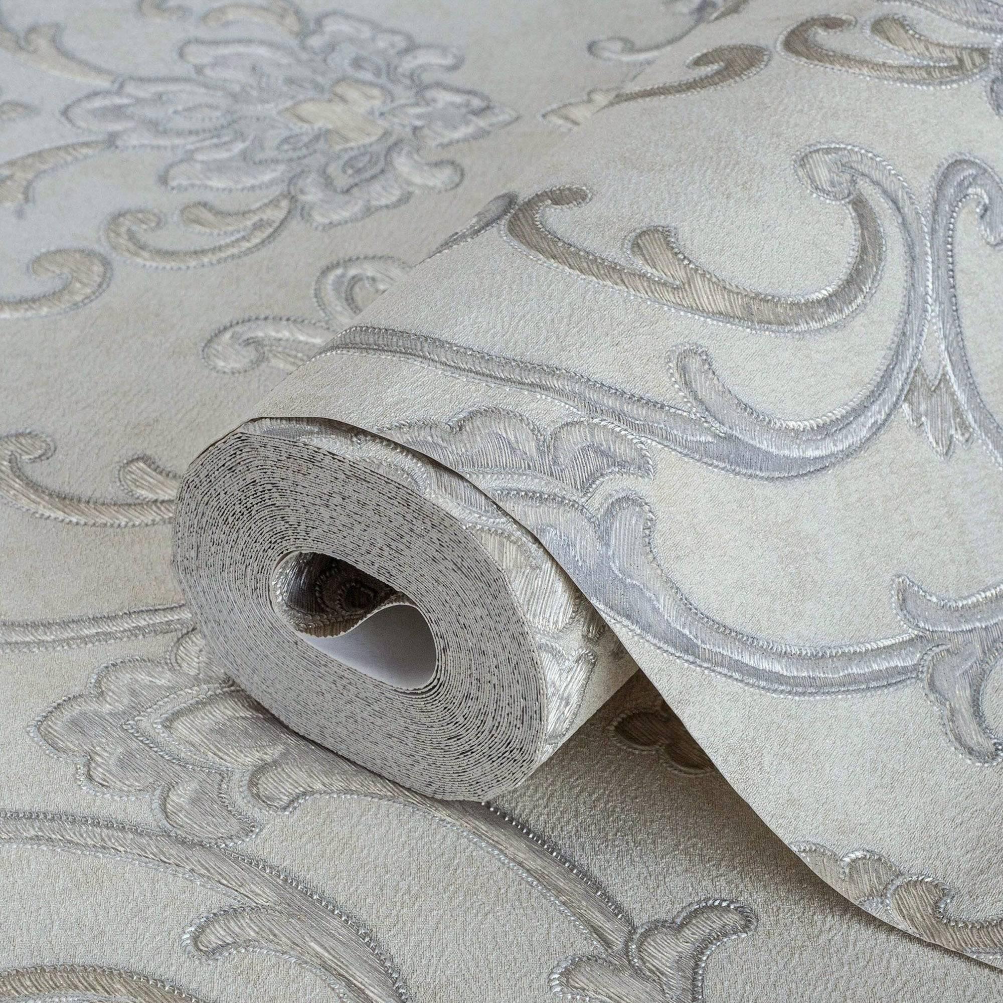 Elegant Damask Embossed Wallpaper, 3D Textured Wallcovering, Light Color Traditional, Extra Large 114 sq ft Roll, Luxury Wallpaper, Washable