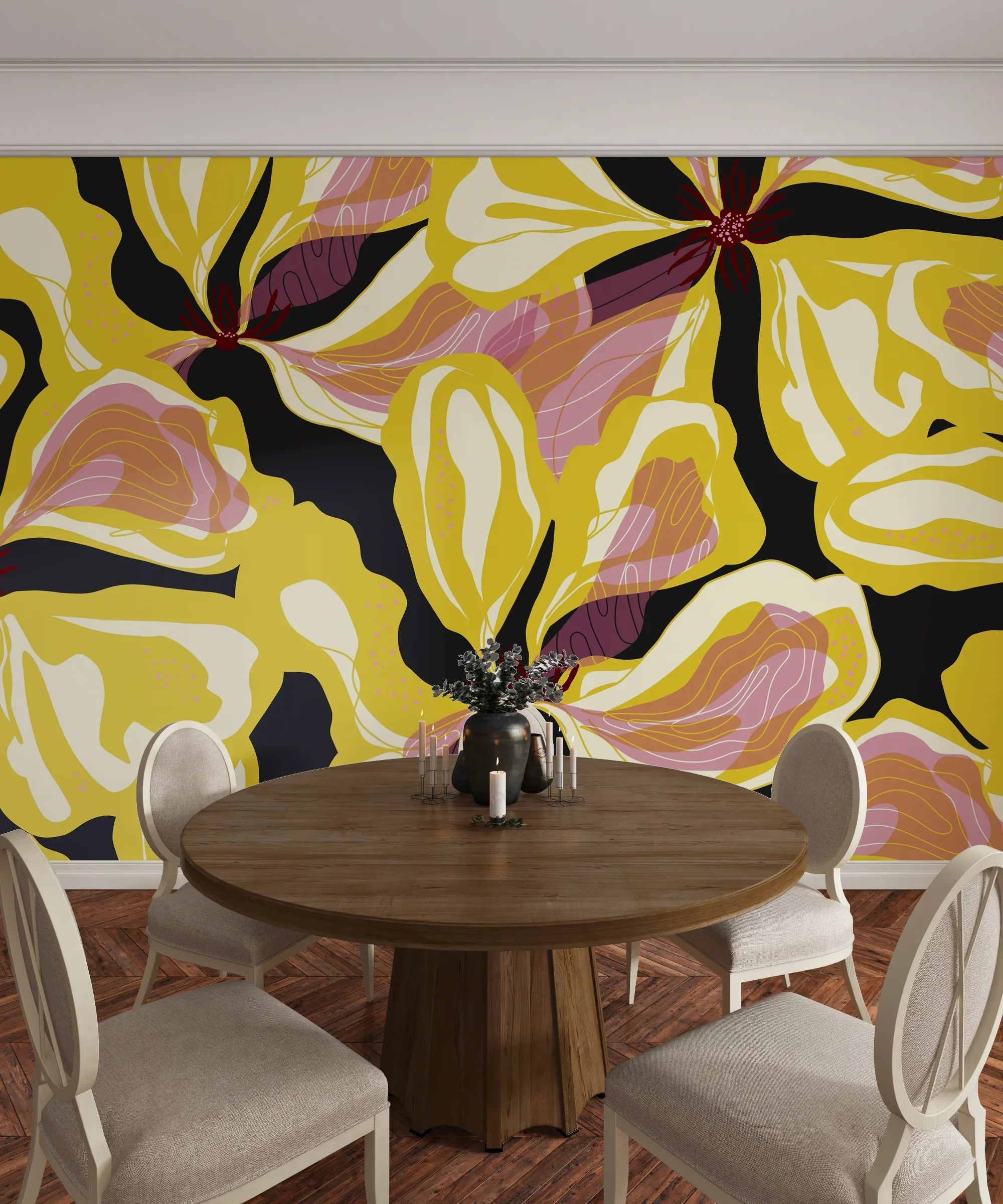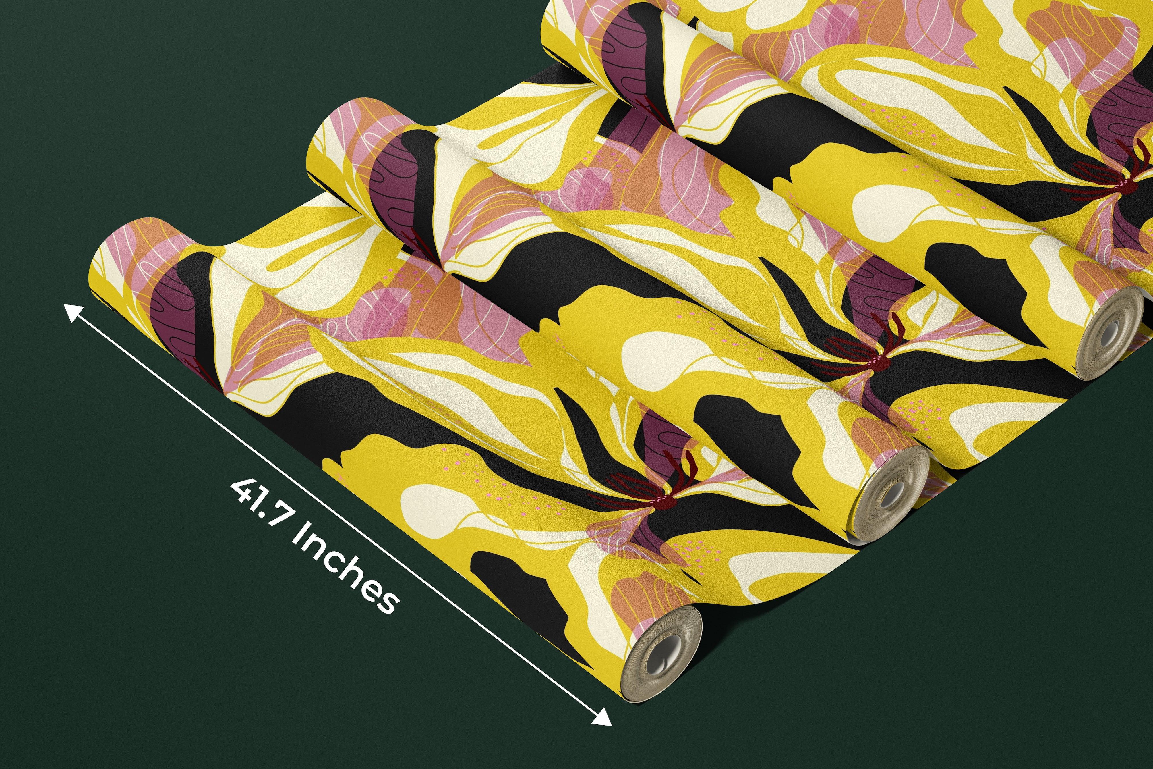 Abstract Yellow Flowers Wallpaper, Seamless Pattern Mural, Oversized Custom Size Wall Art, Non-Woven, Non-Adhesive, Modern Wall Paper, Removable