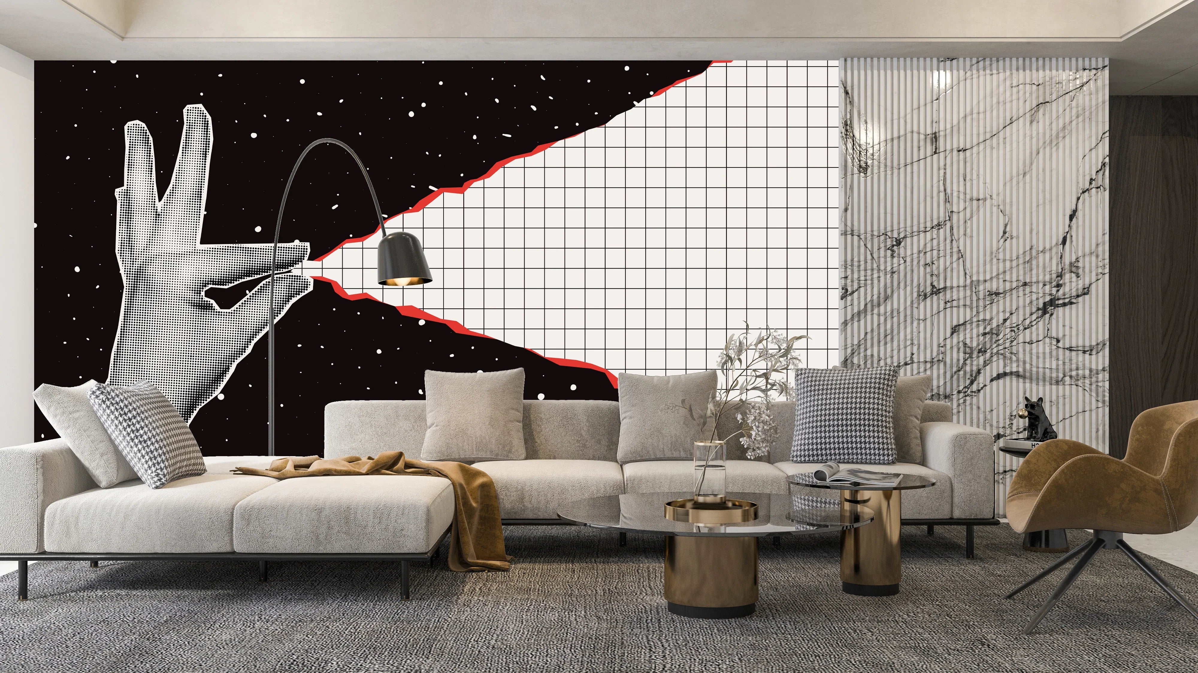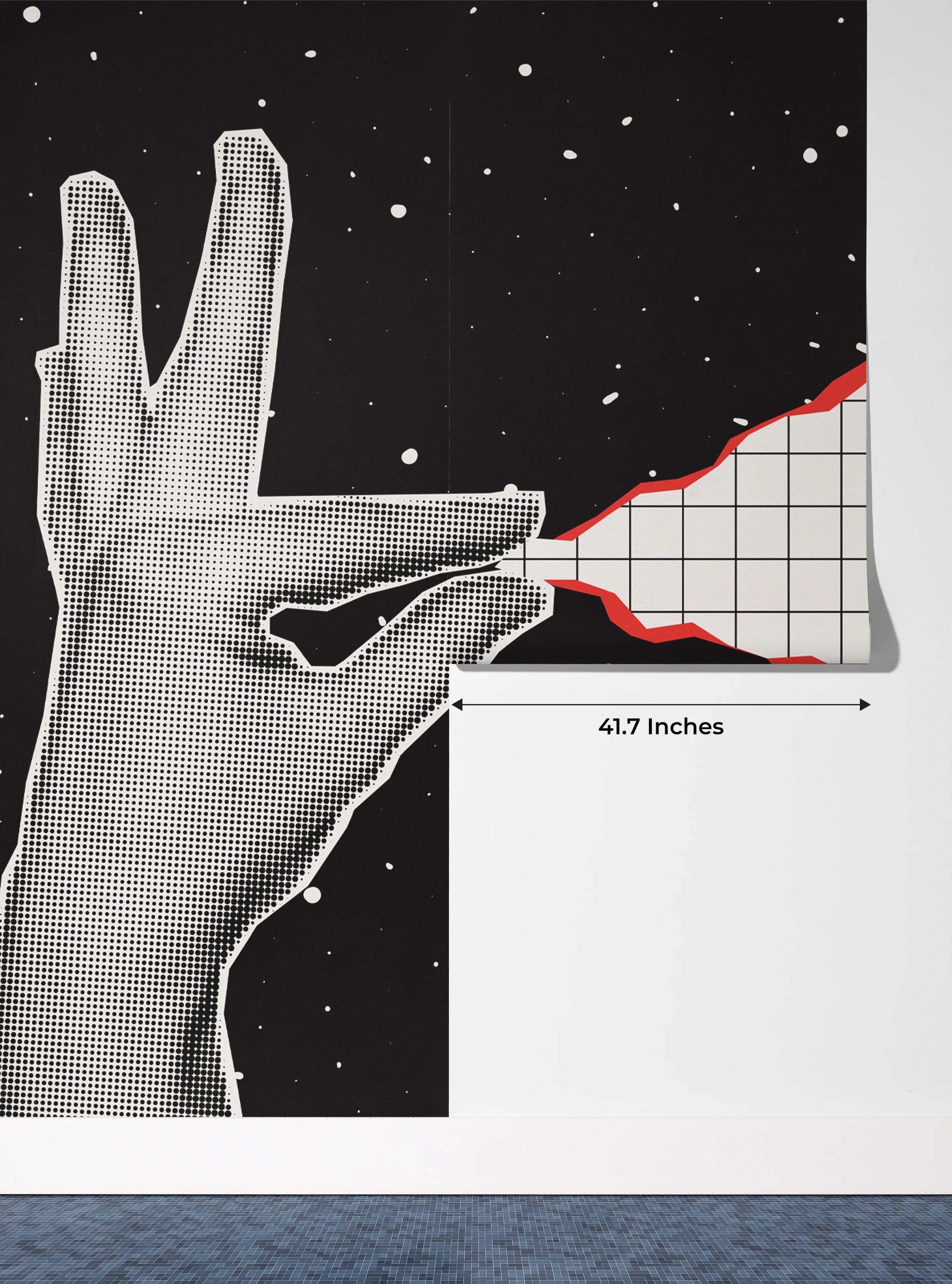 Hand Pulls a Sheet of Checkered Paper Wallpaper, Outer Space Background Mural, Oversized Custom Size Wall Art, Non-Woven, Non-Adhesive, Modern Wall Paper, Removable