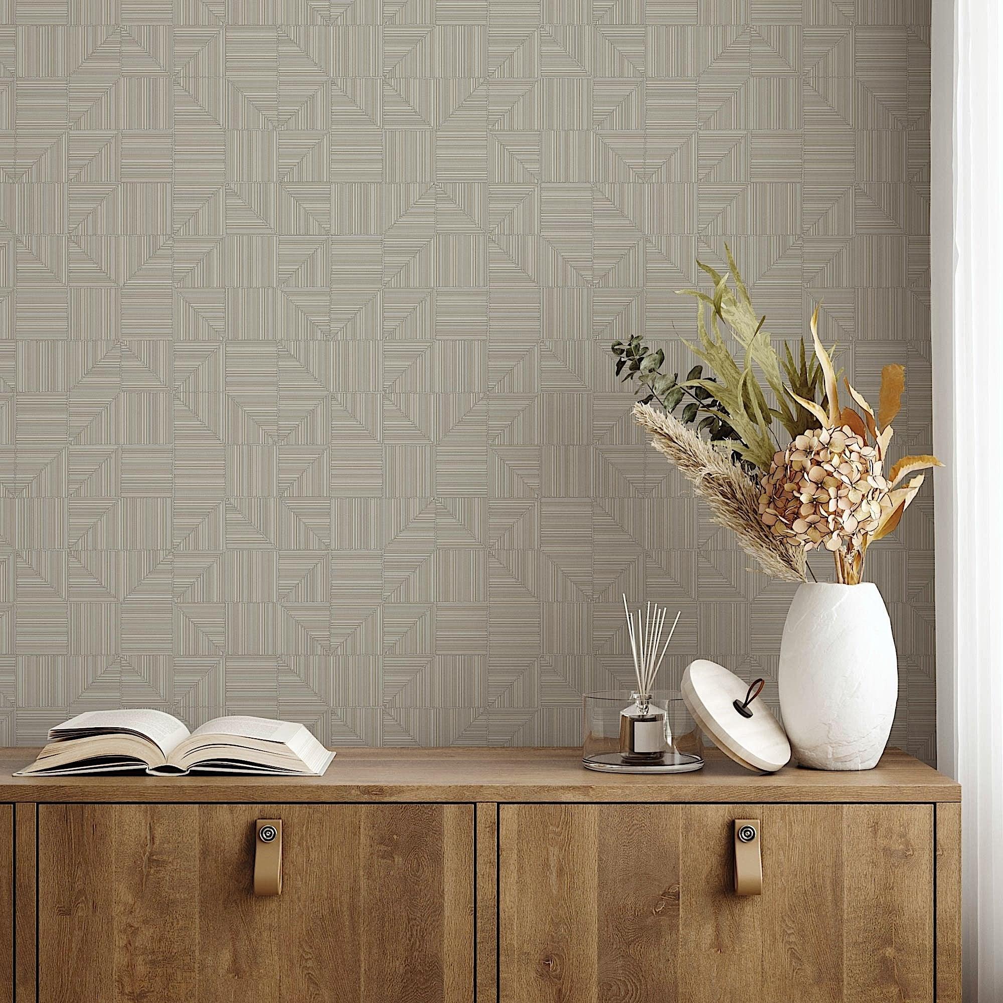 Introduce an aura of contemporary elegance into your space with our non-woven, non-pasted geometric wallpaper collection. Adorn your walls with the captivating allure of geometric lines and abstract linear patterns that redefine modern interior design. Each roll features intricate designs and embossed textures, adding depth and dimension to your walls. Our geometric wallpaper boasts a sophisticated palette, including serene hues like off white, cream, and ivory, alongside bolder tones such as green, gray, and brown. Transform your living or work area into a realm of artistic expression and refined style with our versatile geometric wallpaper selection.