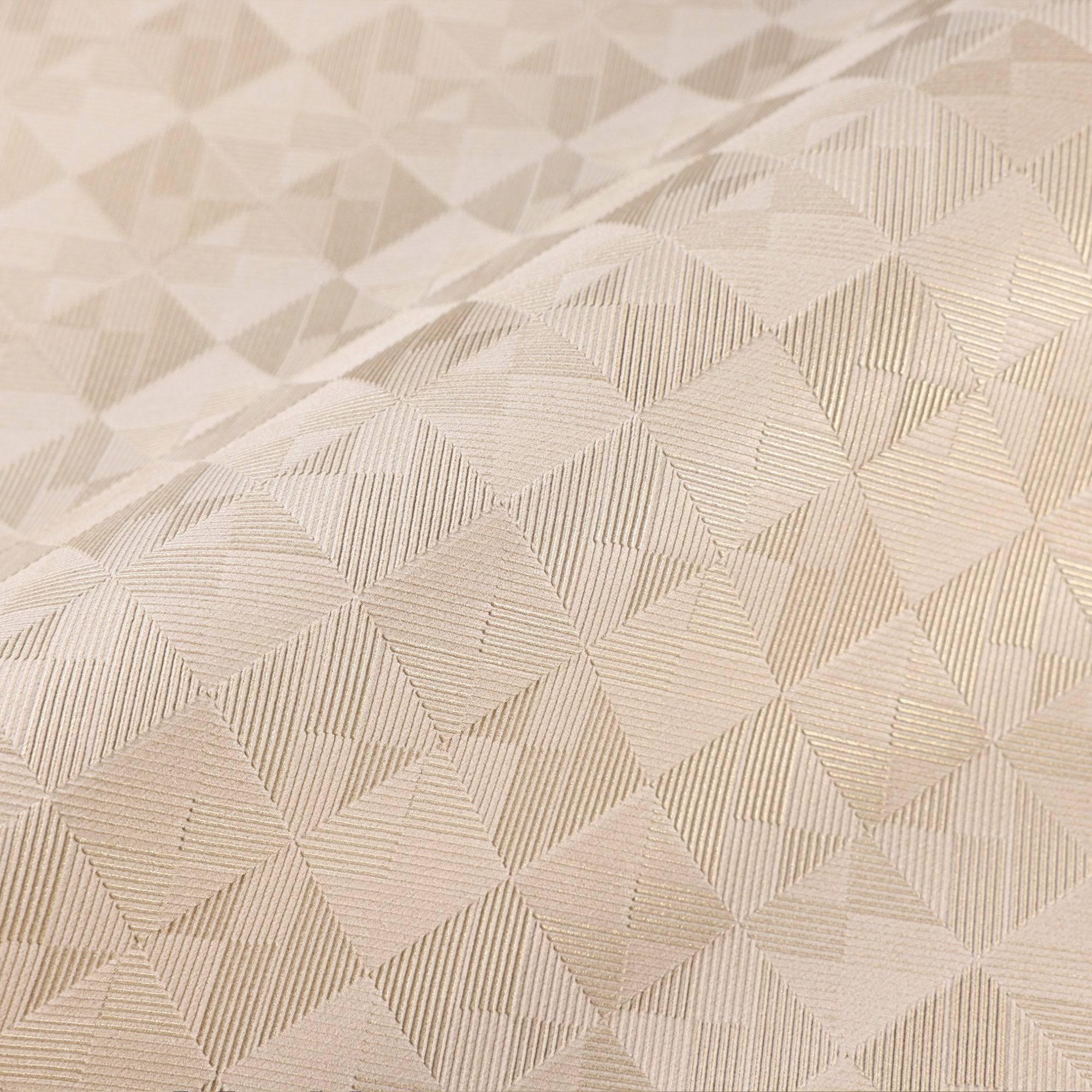 Light Beige Solid Color Square Pattern Wallpaper, 3D Embossed Glossy Sleek Checkered Geometric Wall Paper