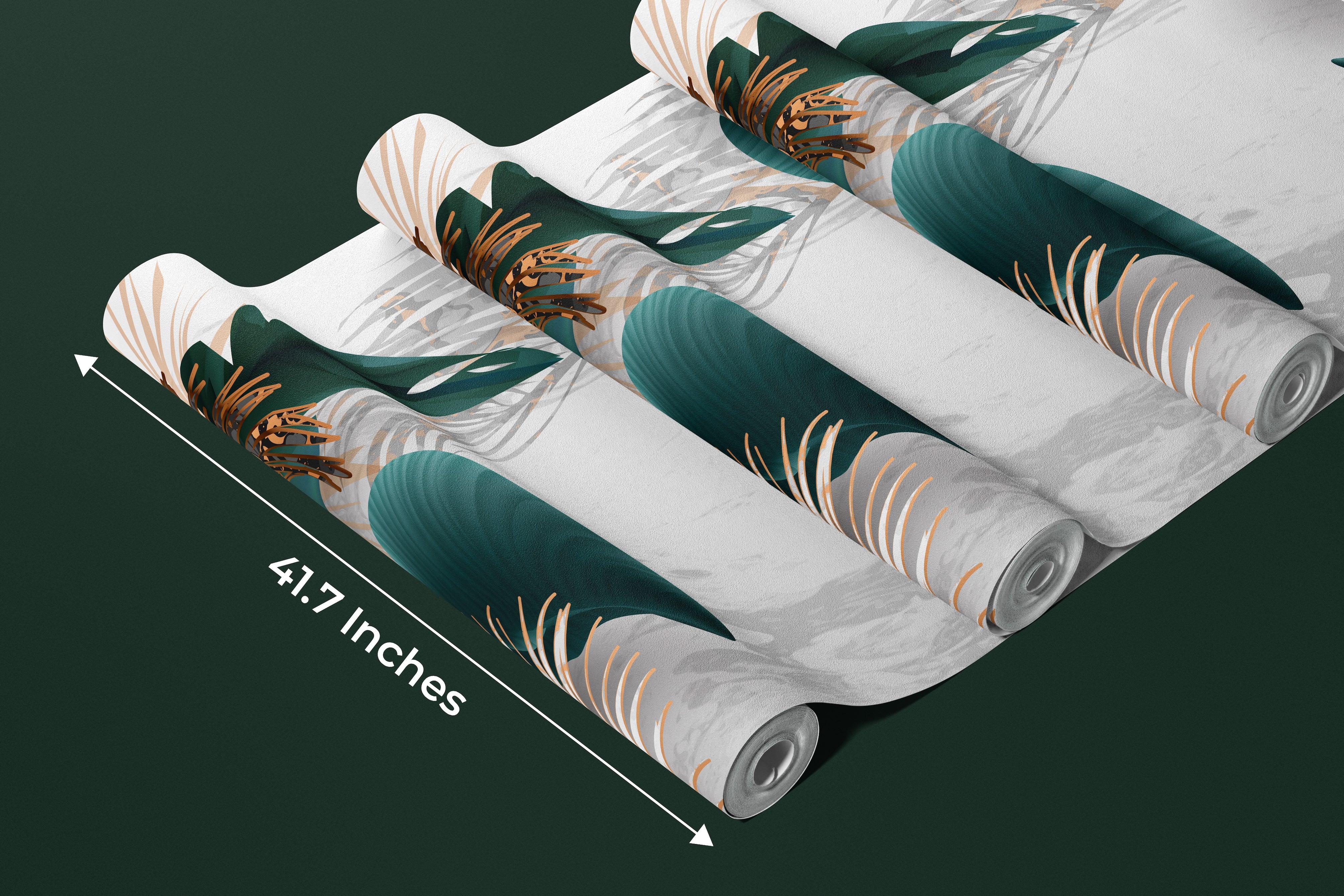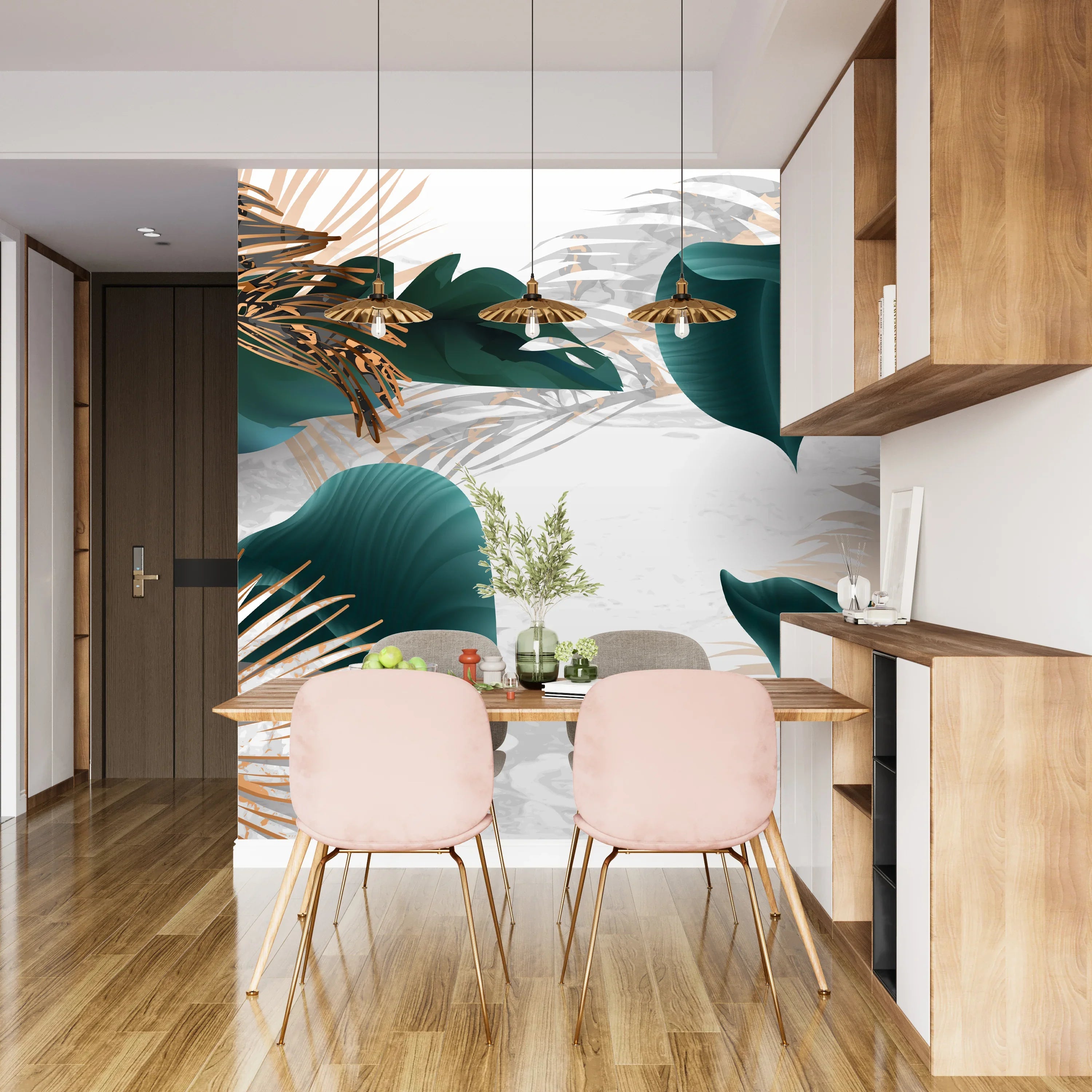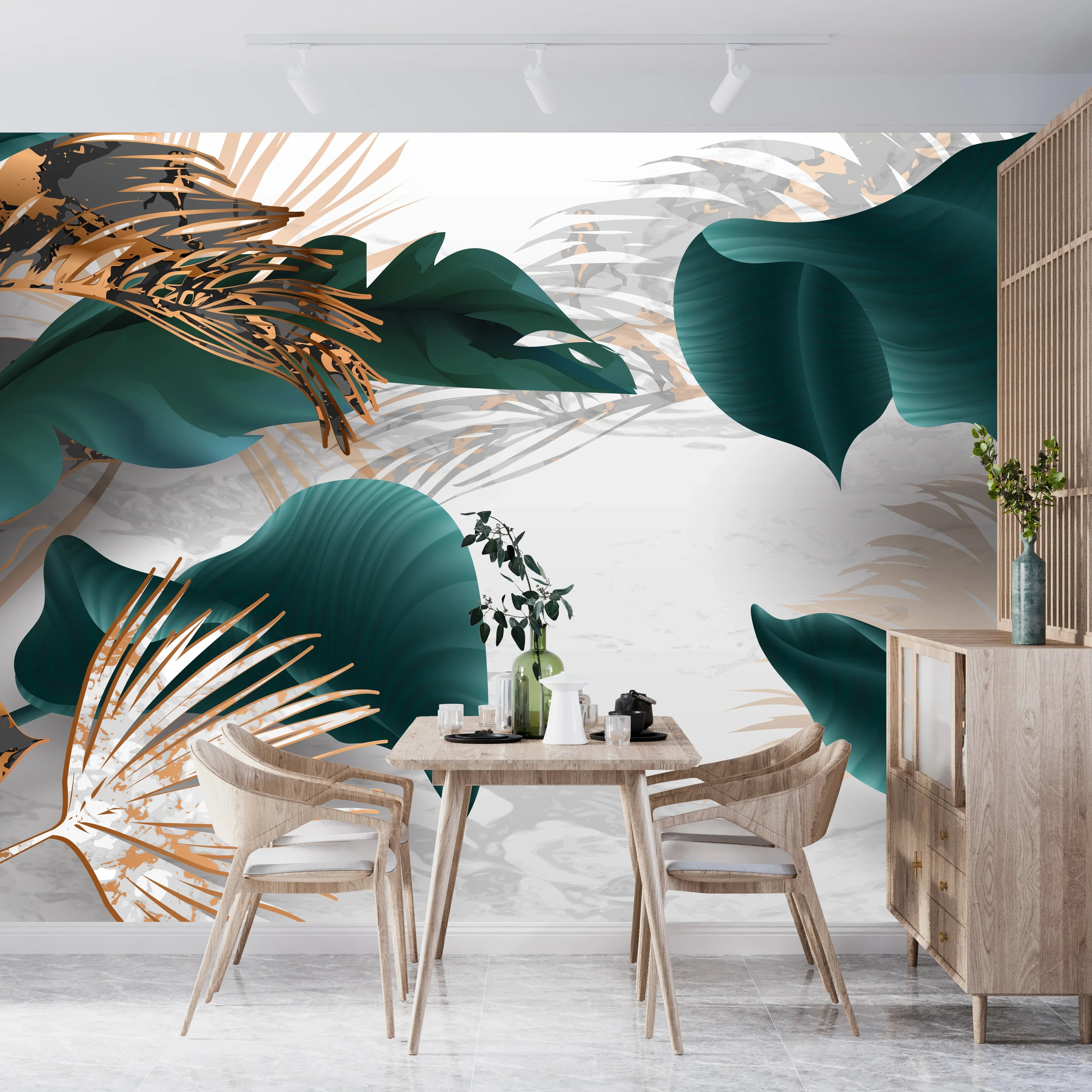Palm Leaves Wallpaper, Gold, Marble Mural, Oversized Custom Size Wall Art, Non-Woven, Non-Adhesive, Modern Wall Paper, Removable
