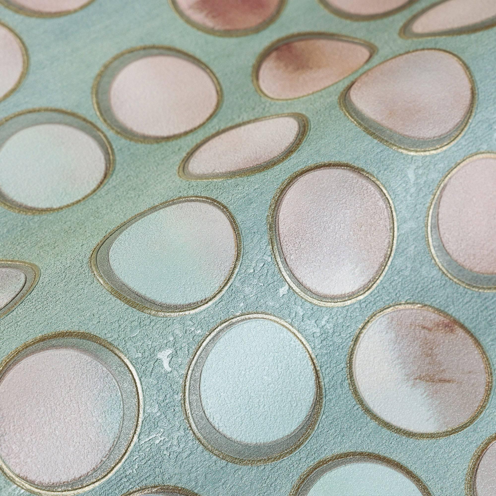 Modern Circles Geometric Wallpaper, Rich Textured Embossed Wallcovering, Traditional, Green Luxury Wallpaper, Extra Large 114 sq ft Roll