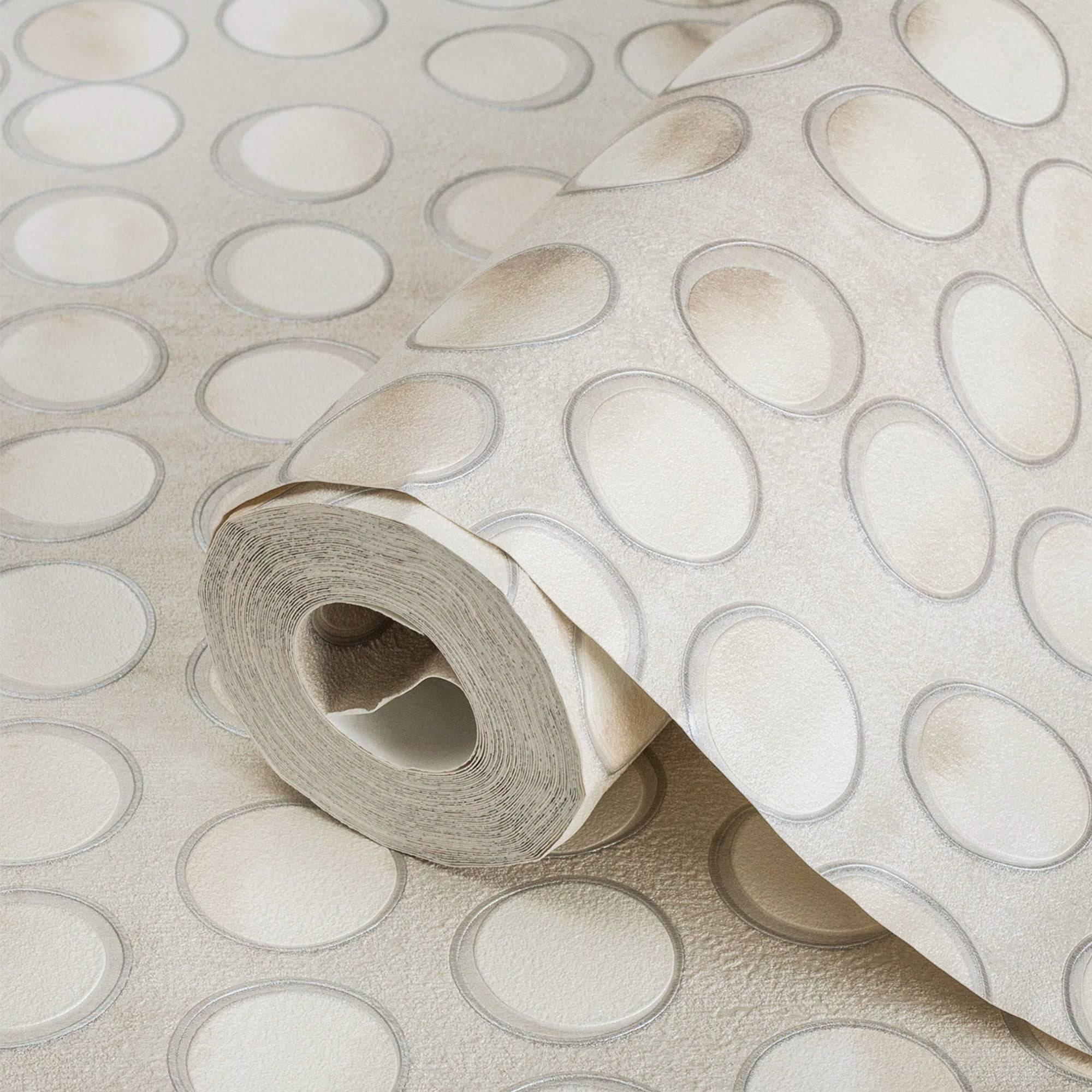 Modern Circles Geometric Wallpaper, Rich Textured Embossed Wallcovering, Traditional, Luxury Wallpaper, Extra Large 114 sq ft Roll, Washable