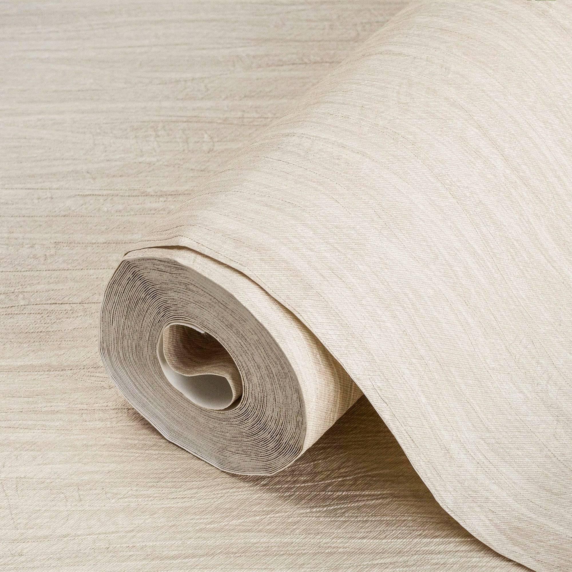 Modern Cream Embossed Wallpaper, Ivory 3D Linen Textured, Wallcovering, Traditional, Extra Large 114 sq ft Roll, Fabric Feel, Beige