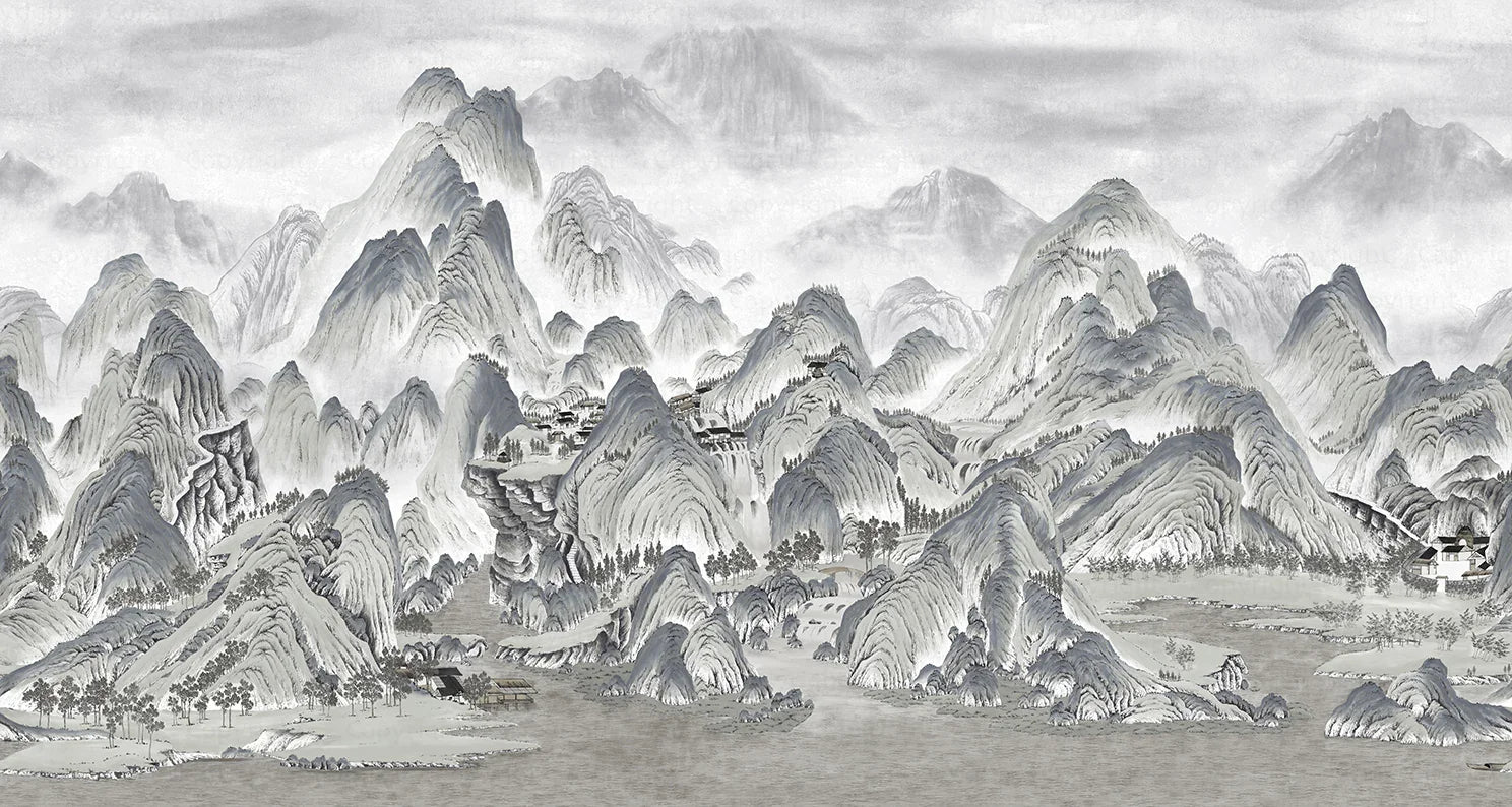 Mountains Scenic Wall Mural, White Landscape Wallpaper, Modern Custom Size Wall Covering, Non-Woven, Non-Pasted, Washable, Removable, Extra Large Wall Covering