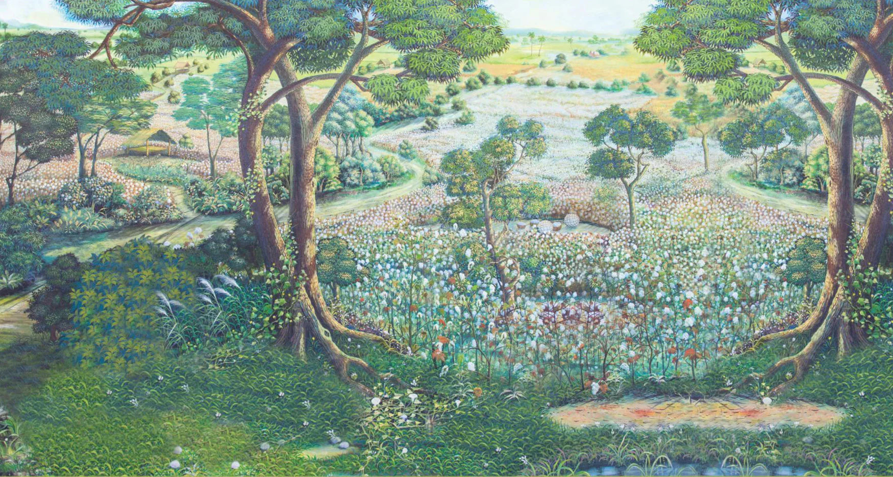Nature Landscape Wall Mural, Green Trees Scene Wallpaper, Flowers Extra Large Custom Size Wall Art, Non-Woven, Non-Pasted, Removable, Washable