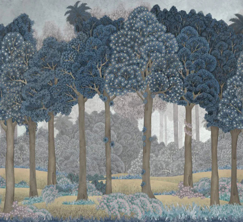 Nature Scene Trees Wall Mural, Blue Forest Wallpaper, Large Landscape Custom Size Wall Covering, Non-Woven, Non-Pasted, Removable, Washable, Art