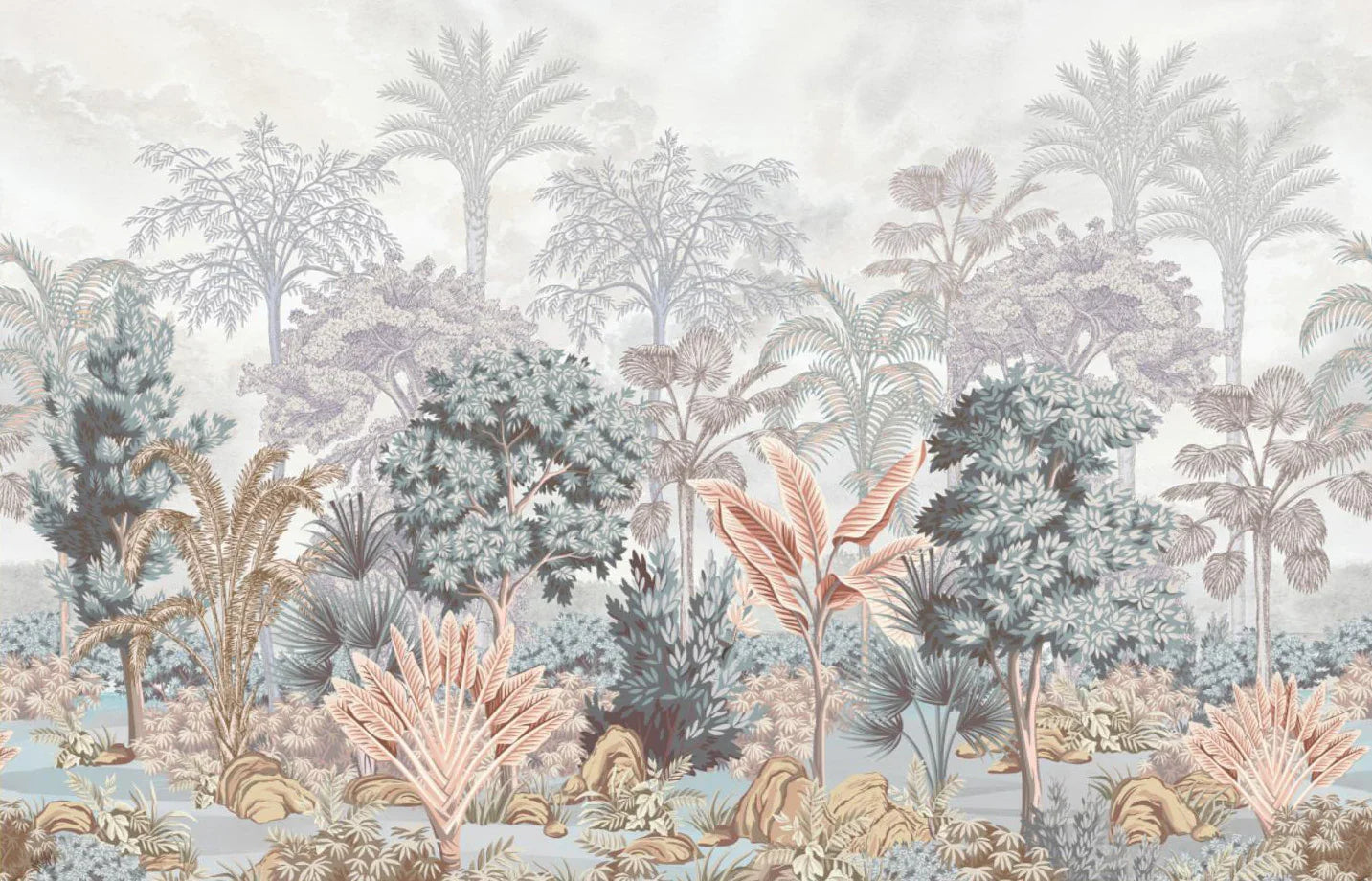 Nature Tropical Wallpaper, Green Forest Wall Mural, Custom Size Trees Wall Art, Non-Woven, Non-Pasted, Removable, Washable, Oversized Wall Paper